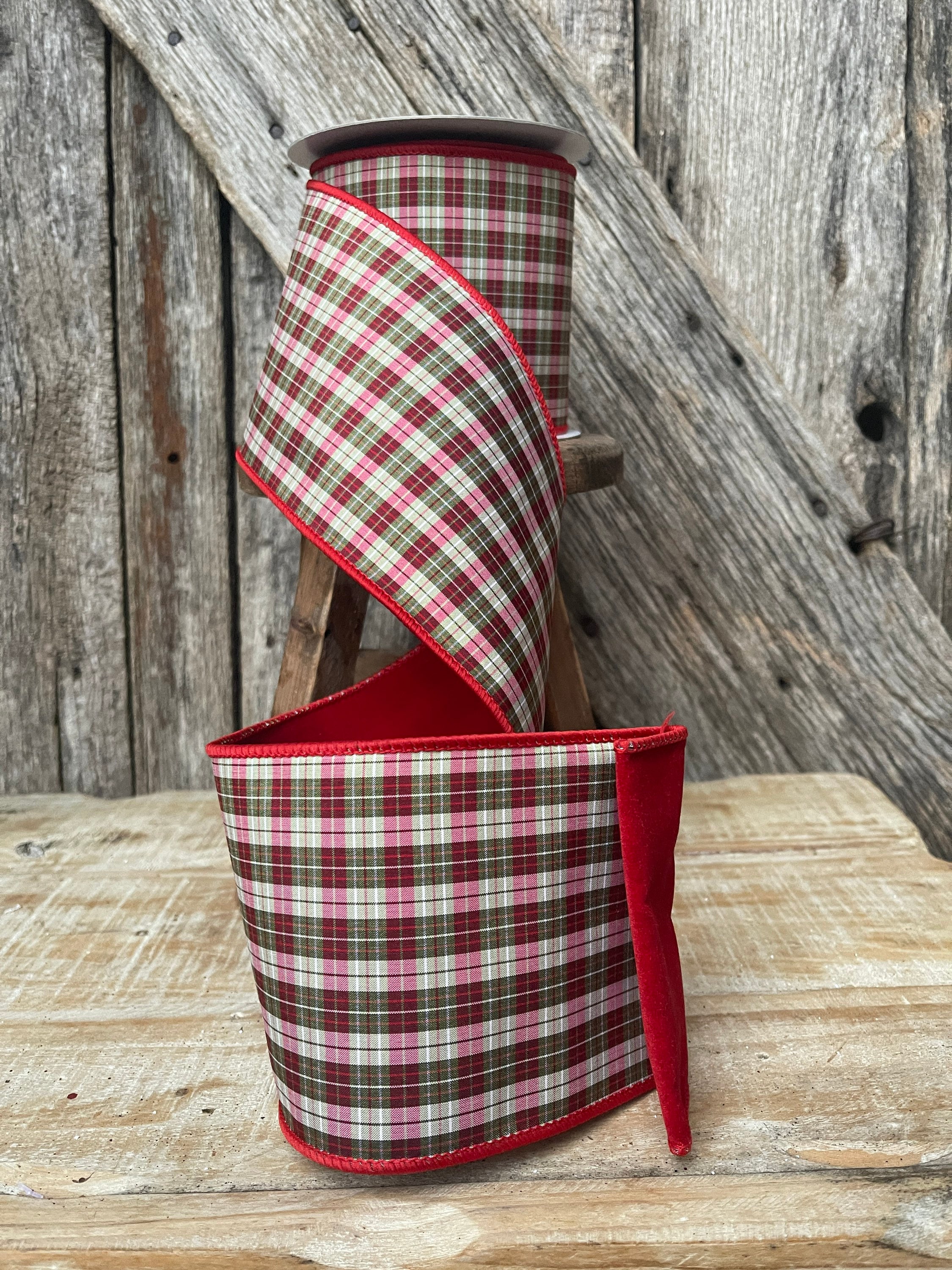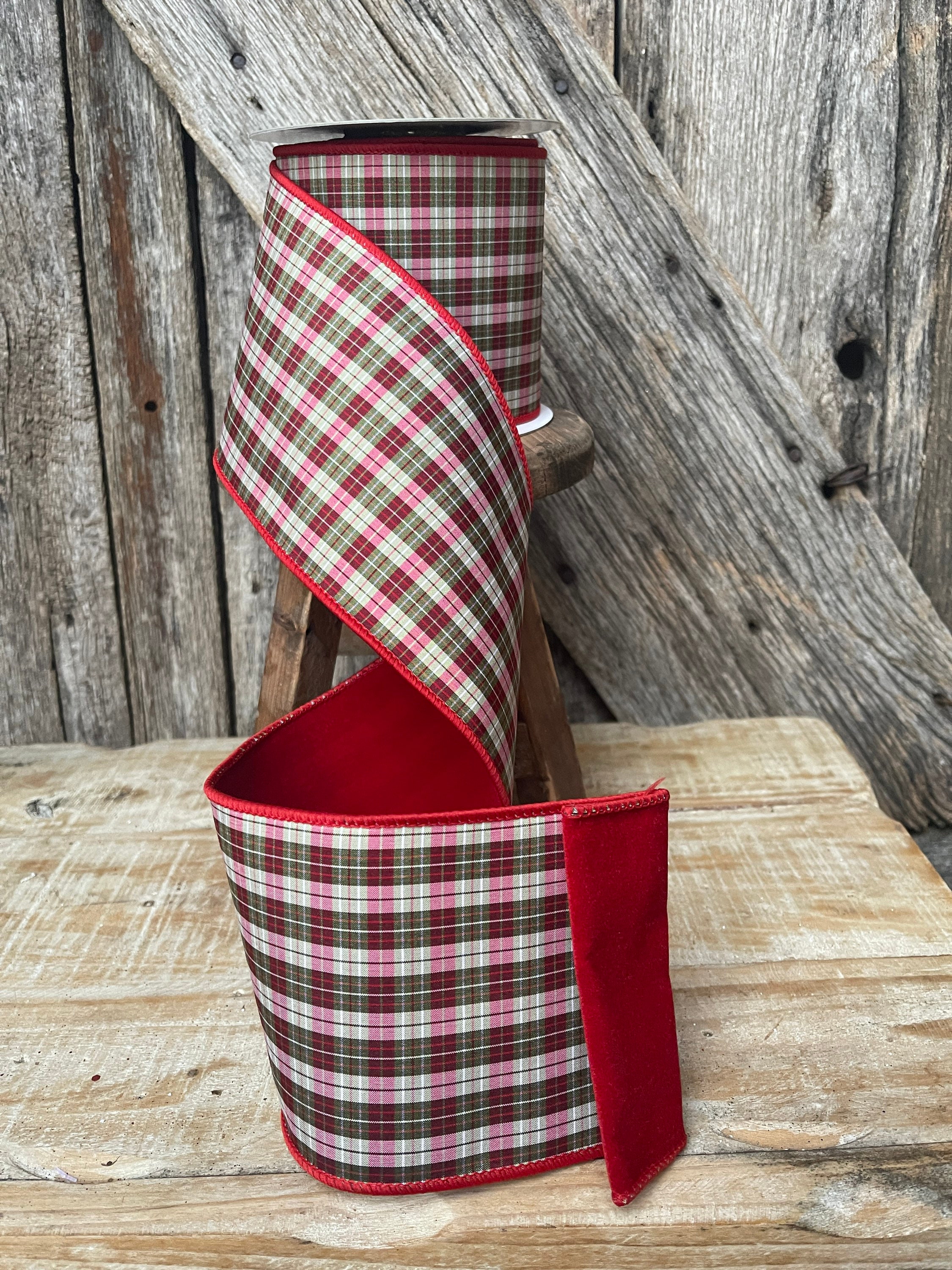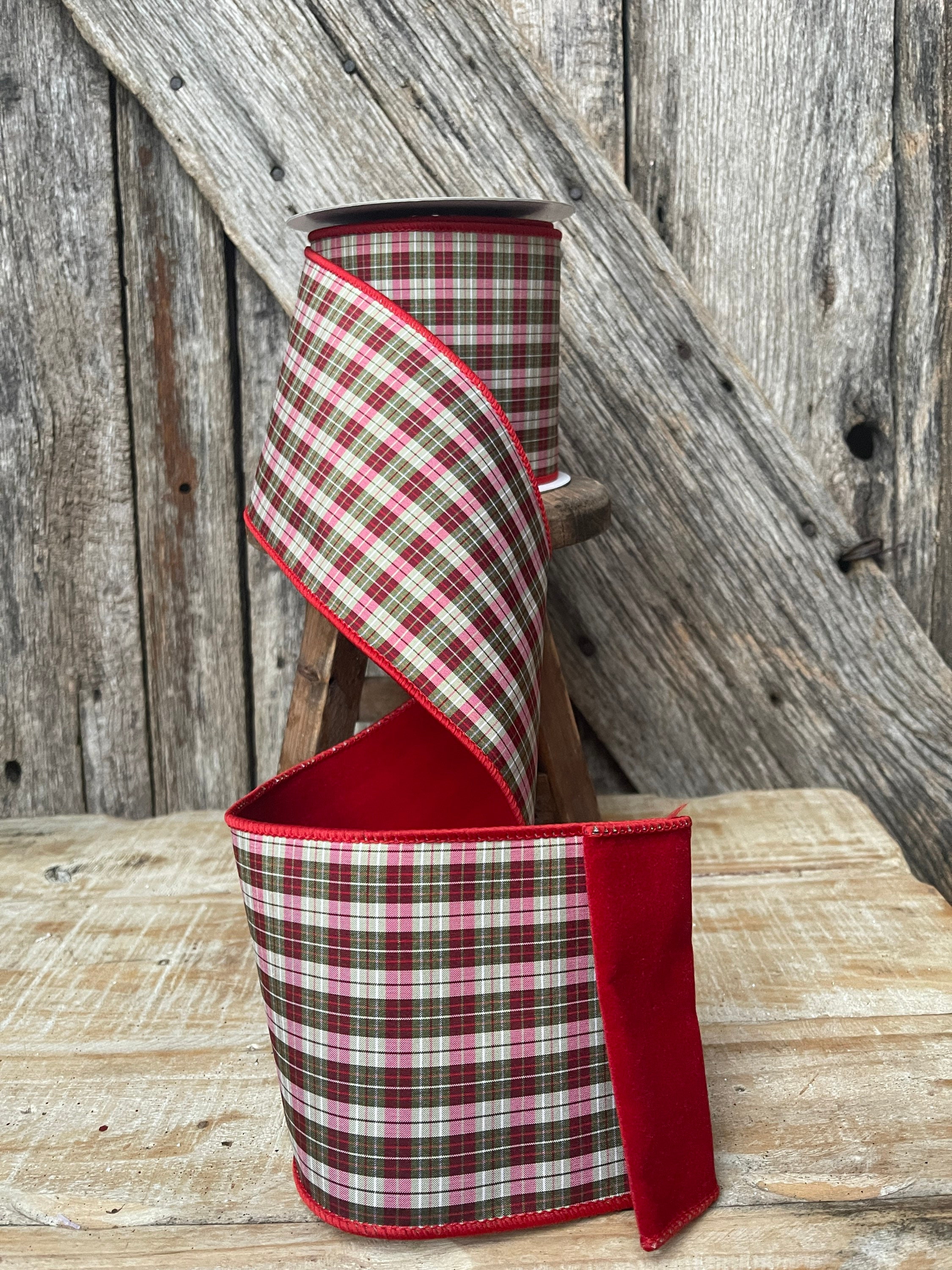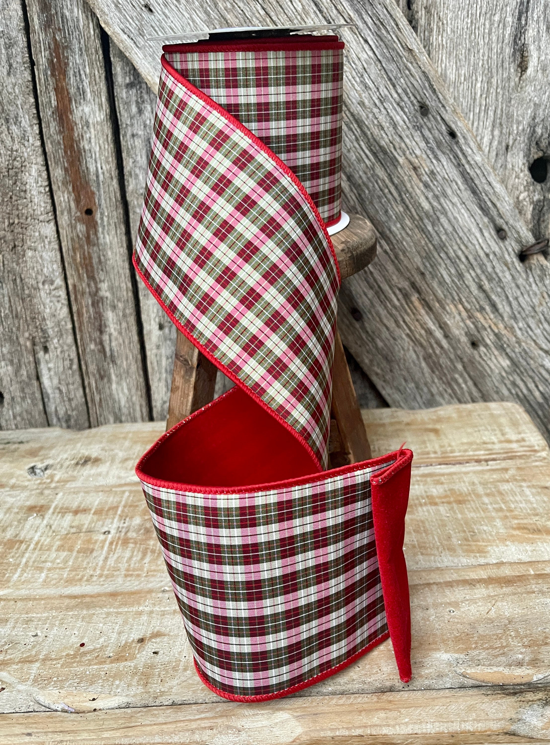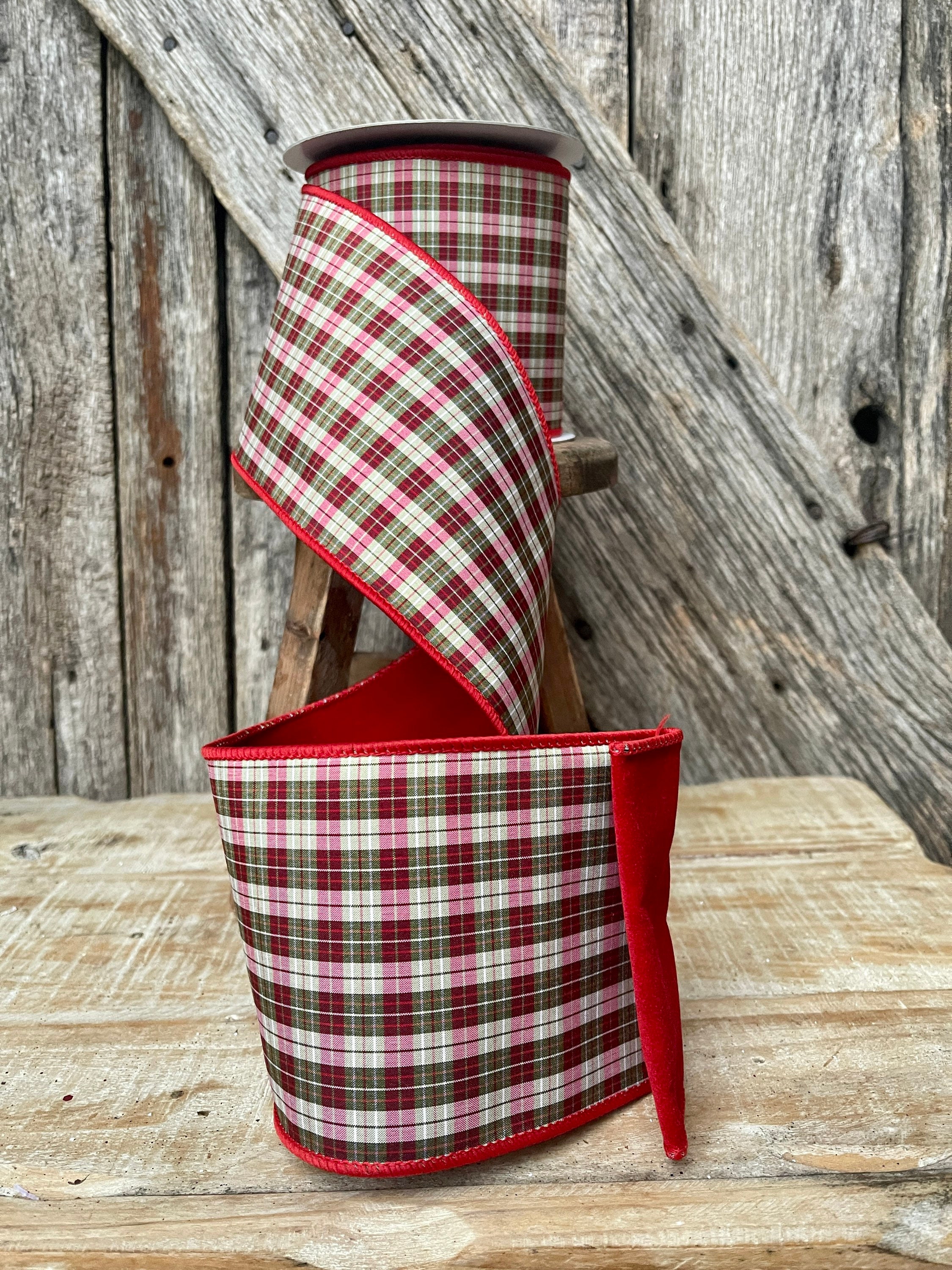 Christmas ribbon, Christmas tree ribbon, red plaid ribbon, luxury ribbon, 4 inch ribbon, Christmas plaid ribbon, Christmas tree plaid