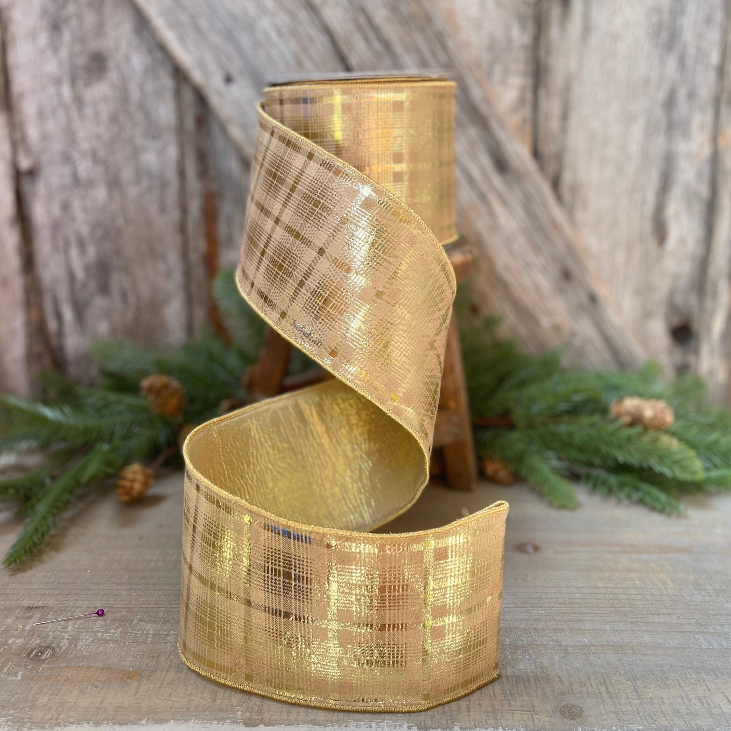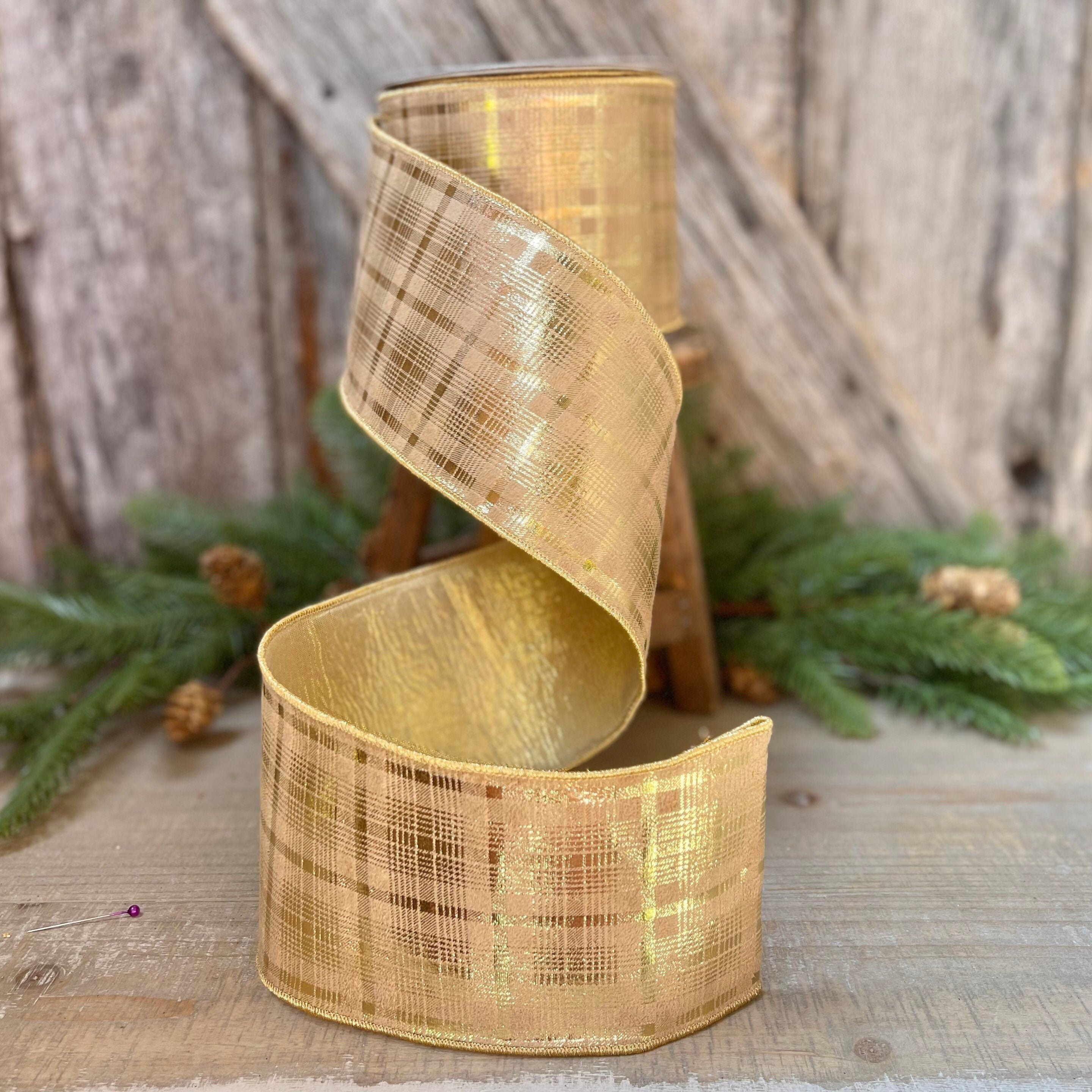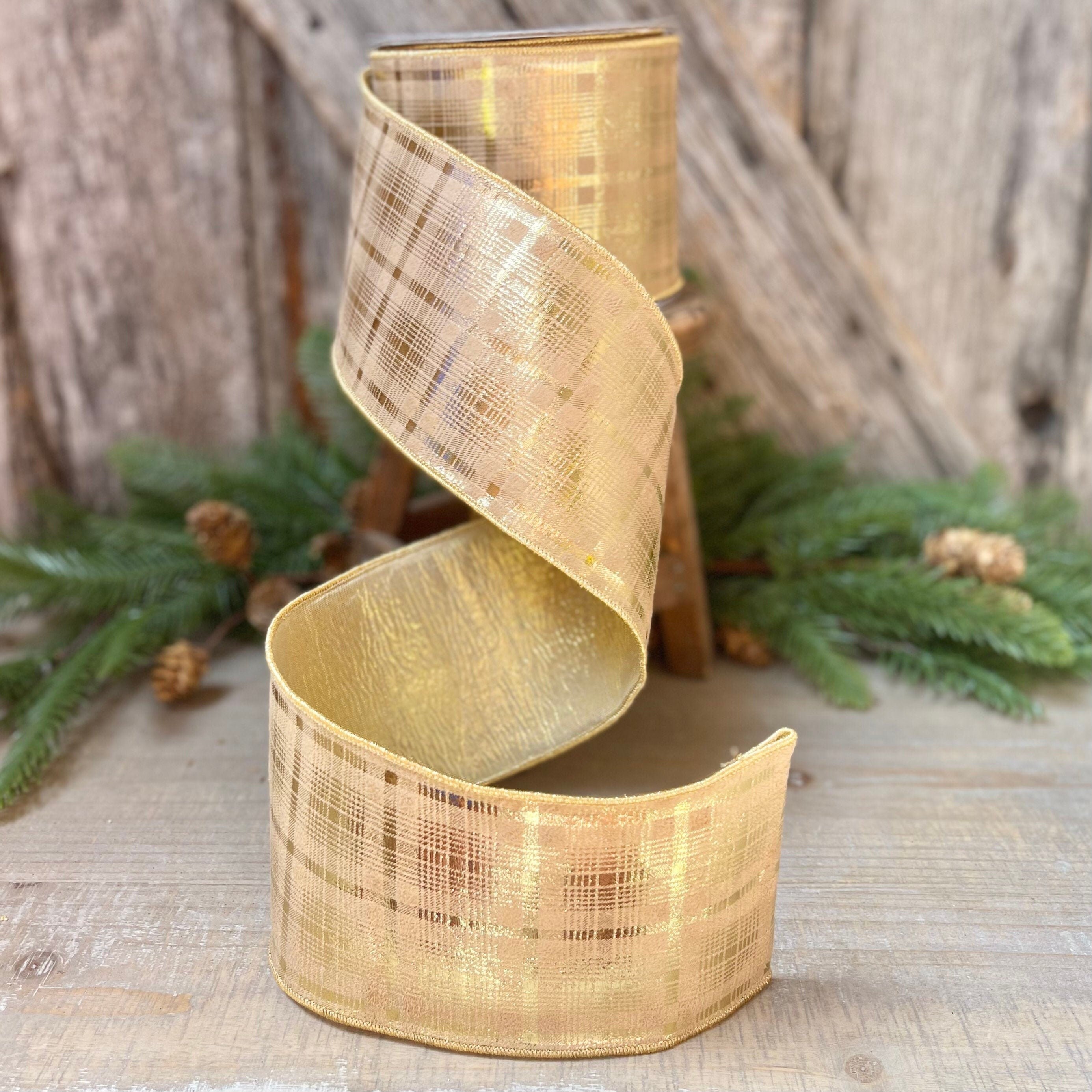 4" Farrisilk Flashy Gold Plaid Wired Ribbon, Christmas Tree Ribbon, Metallic Gold Ribbon, Champagne Gold Ribbon, Wired Ribbon, Christmas