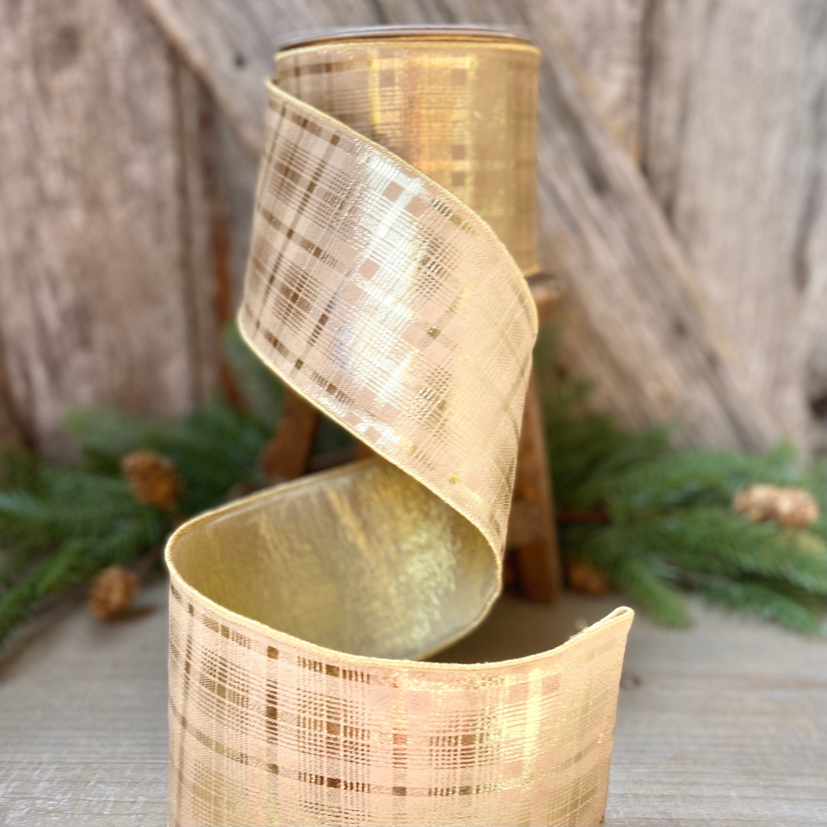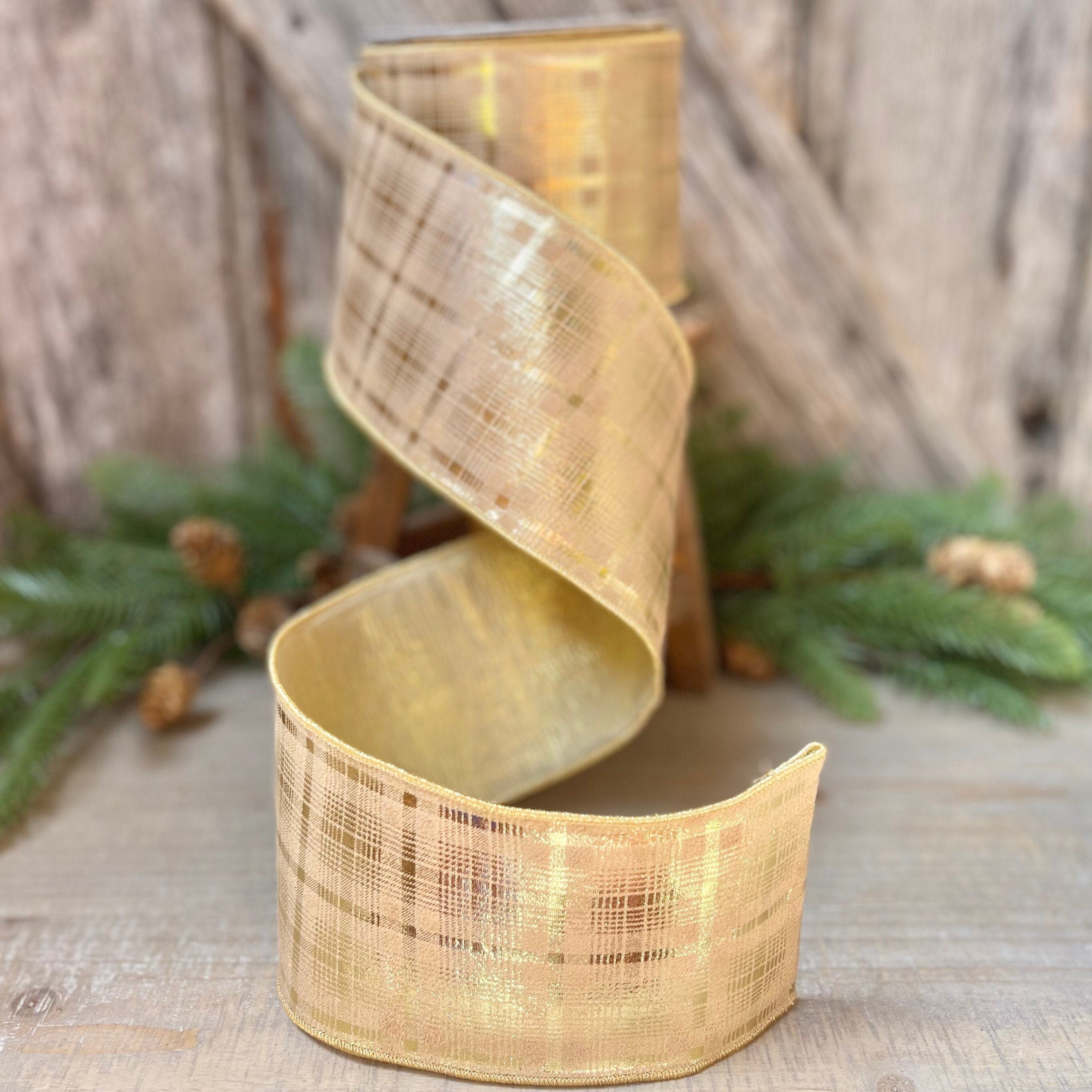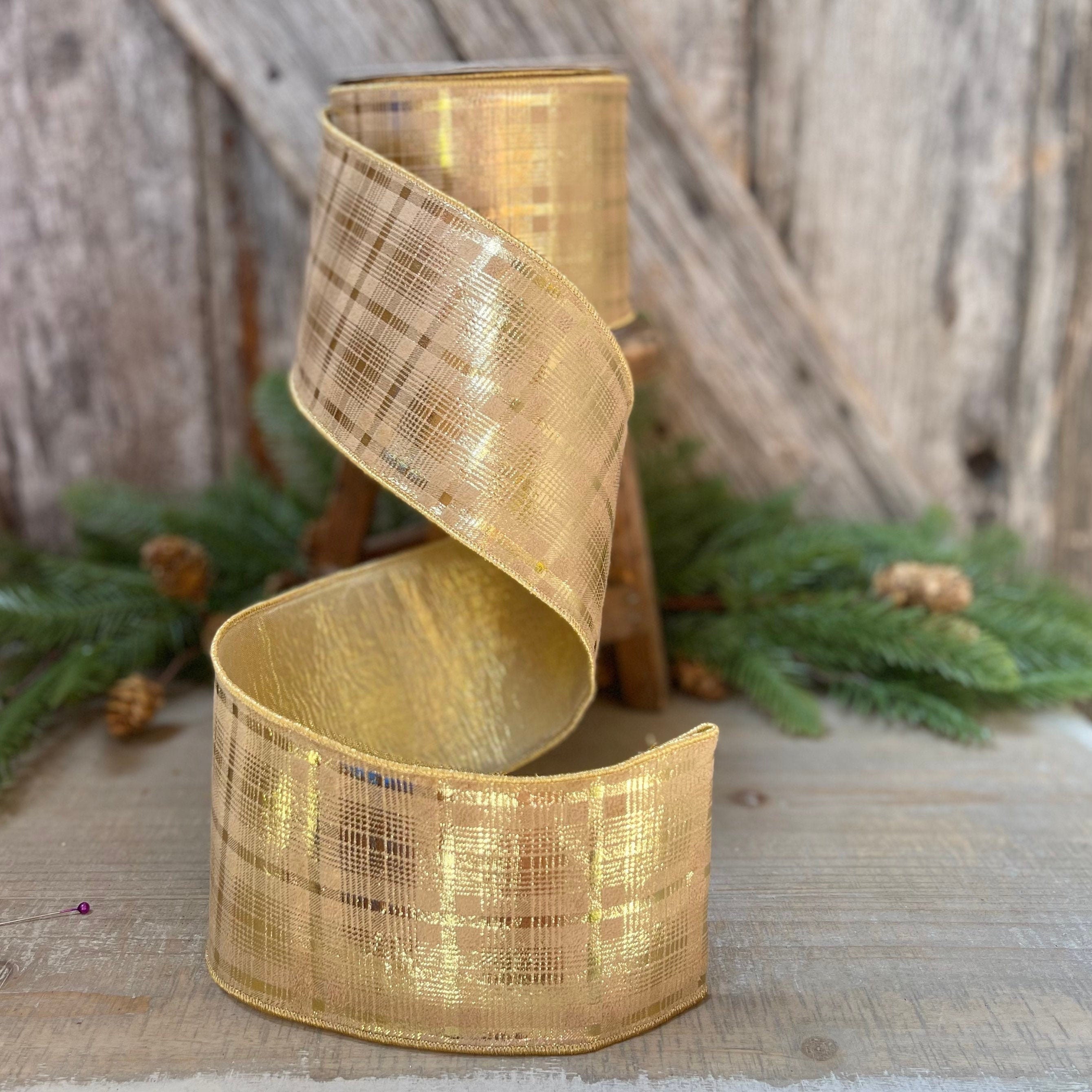 4" Farrisilk Flashy Gold Plaid Wired Ribbon, Christmas Tree Ribbon, Metallic Gold Ribbon, Champagne Gold Ribbon, Wired Ribbon, Christmas