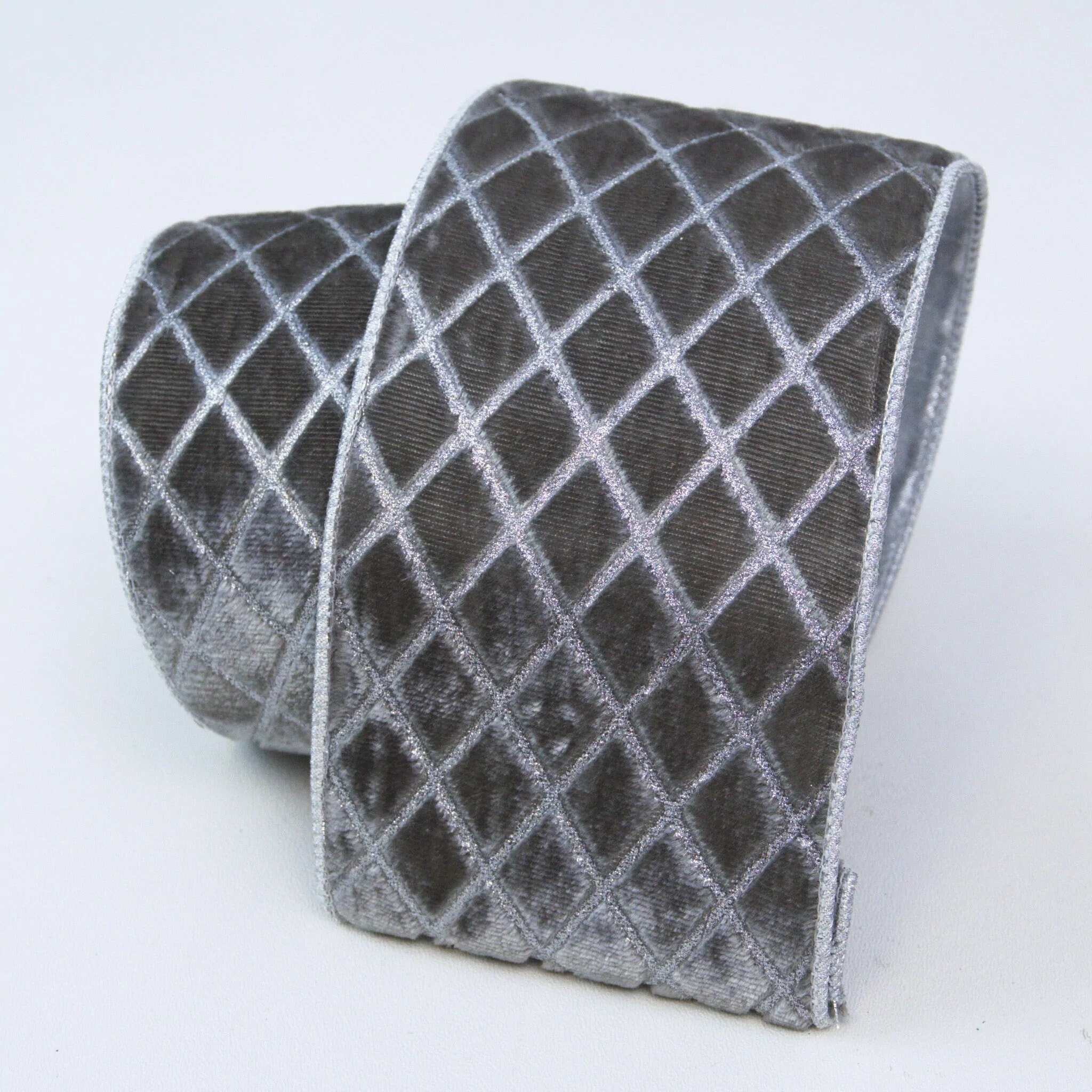 4" Slate Grey Metallic Diamonds Velvet Ribbon, Farrisilk Ribbon, Grey Velvet, Christmas Tree Ribbon, Wired Ribbon, 4 inch ribbon