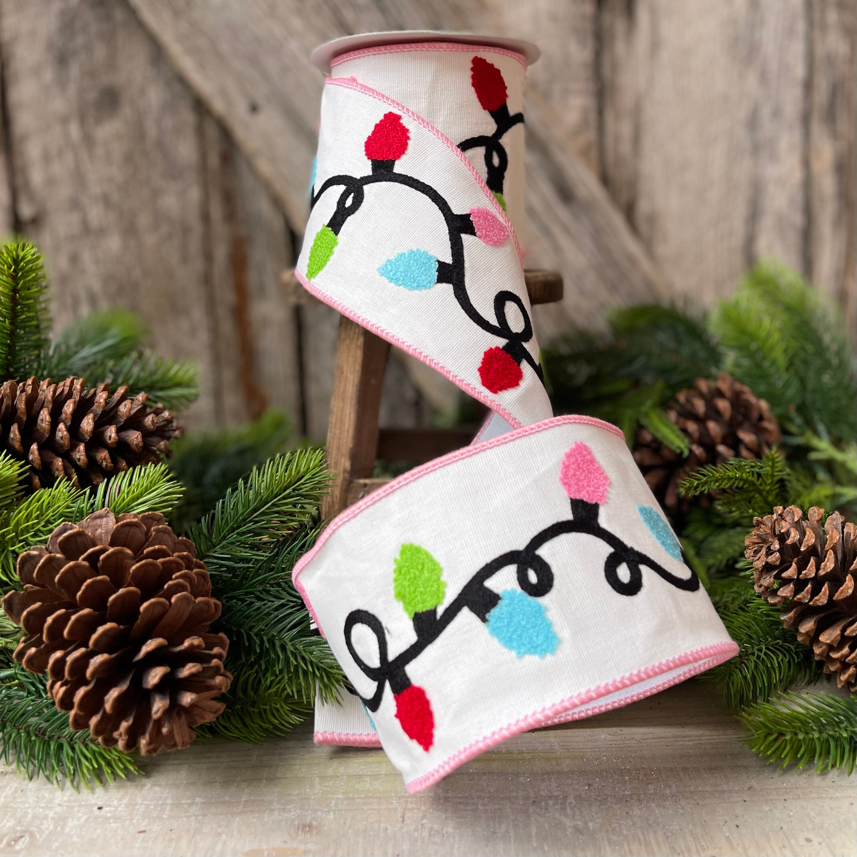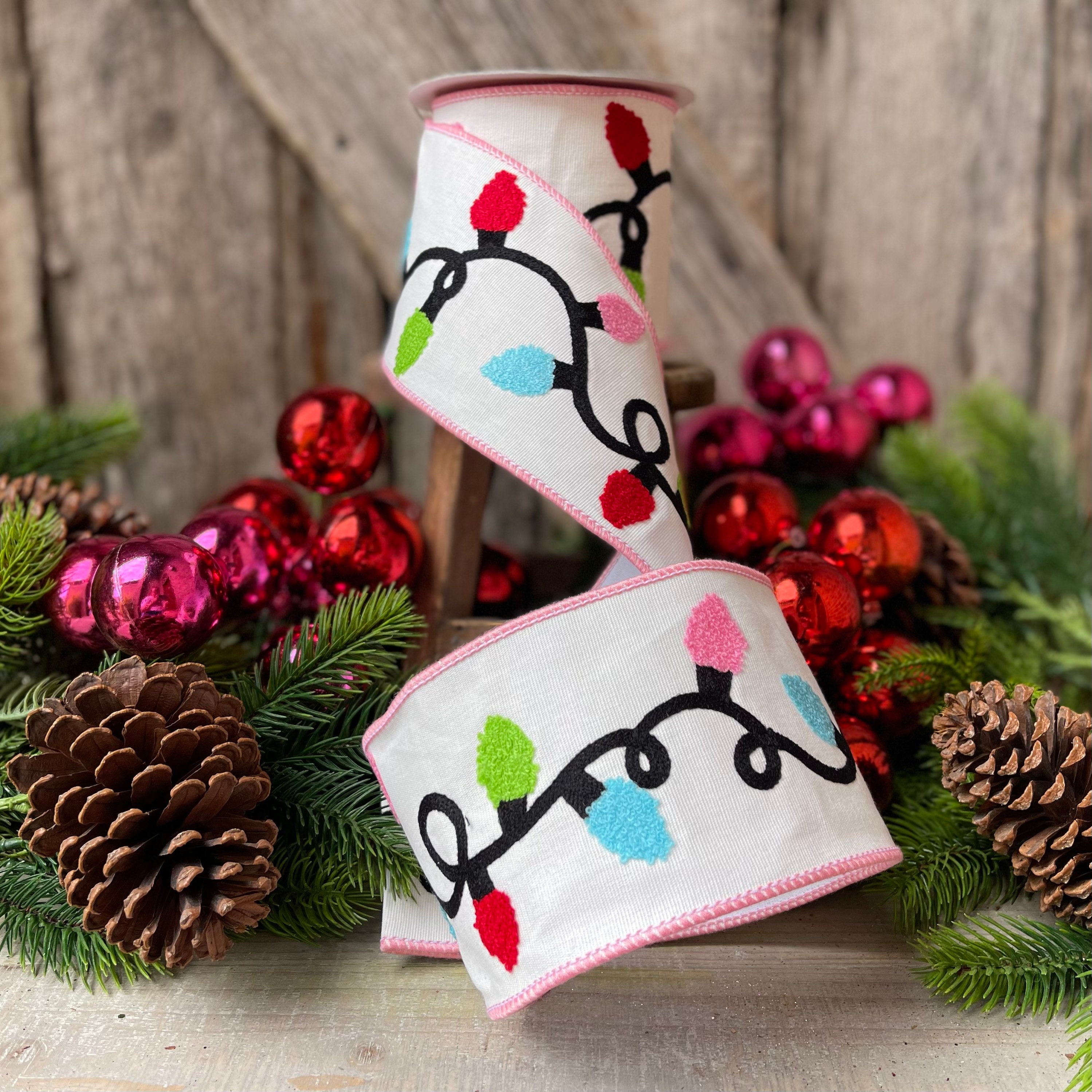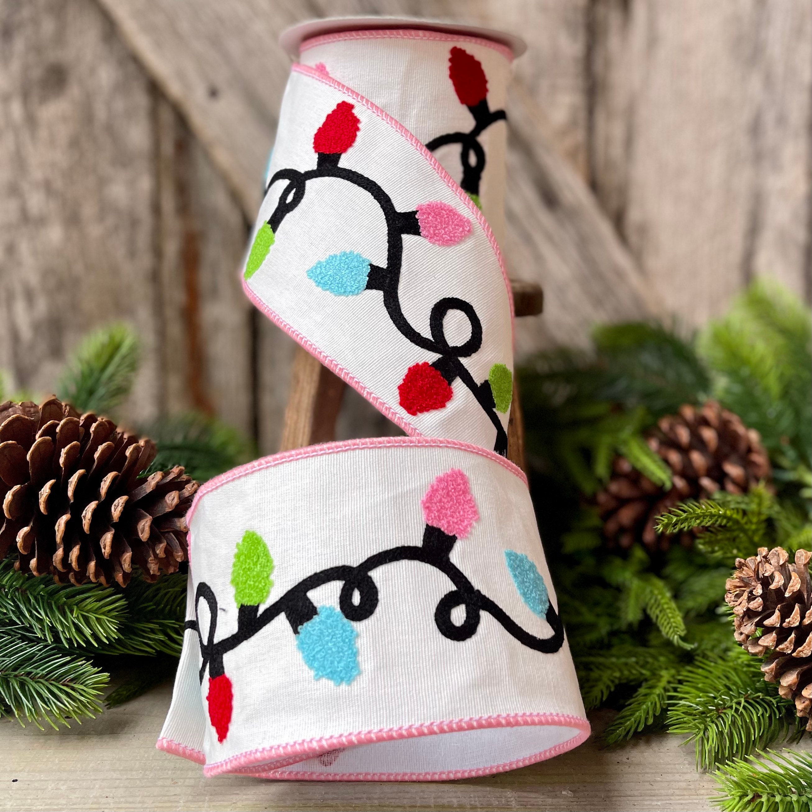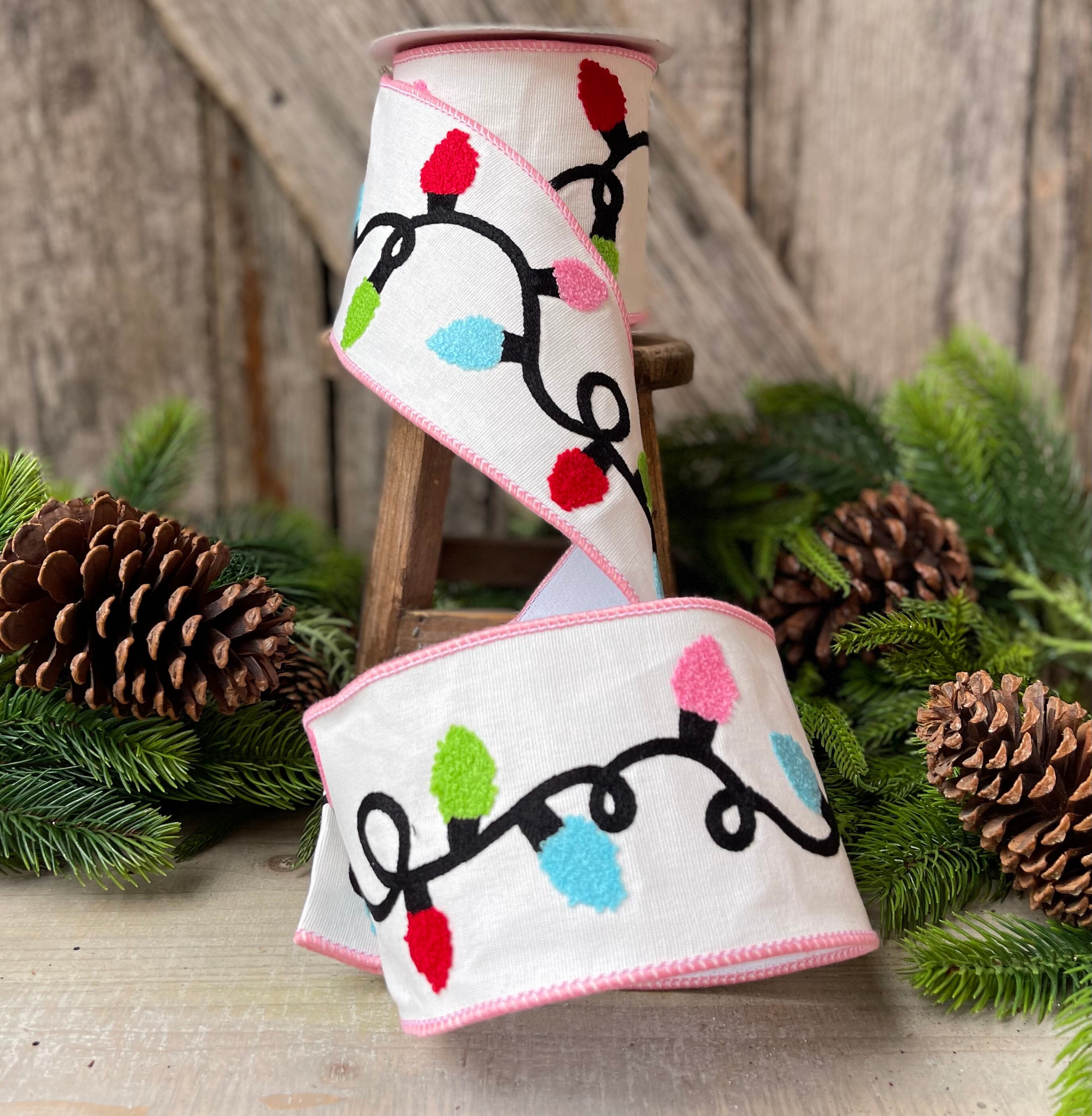 4" Christmas Ribbon, Christmas Lights Ribbon, Christmas wired ribbon, Christmas tree ribbon, christmas light decor, 4 inch ribbon