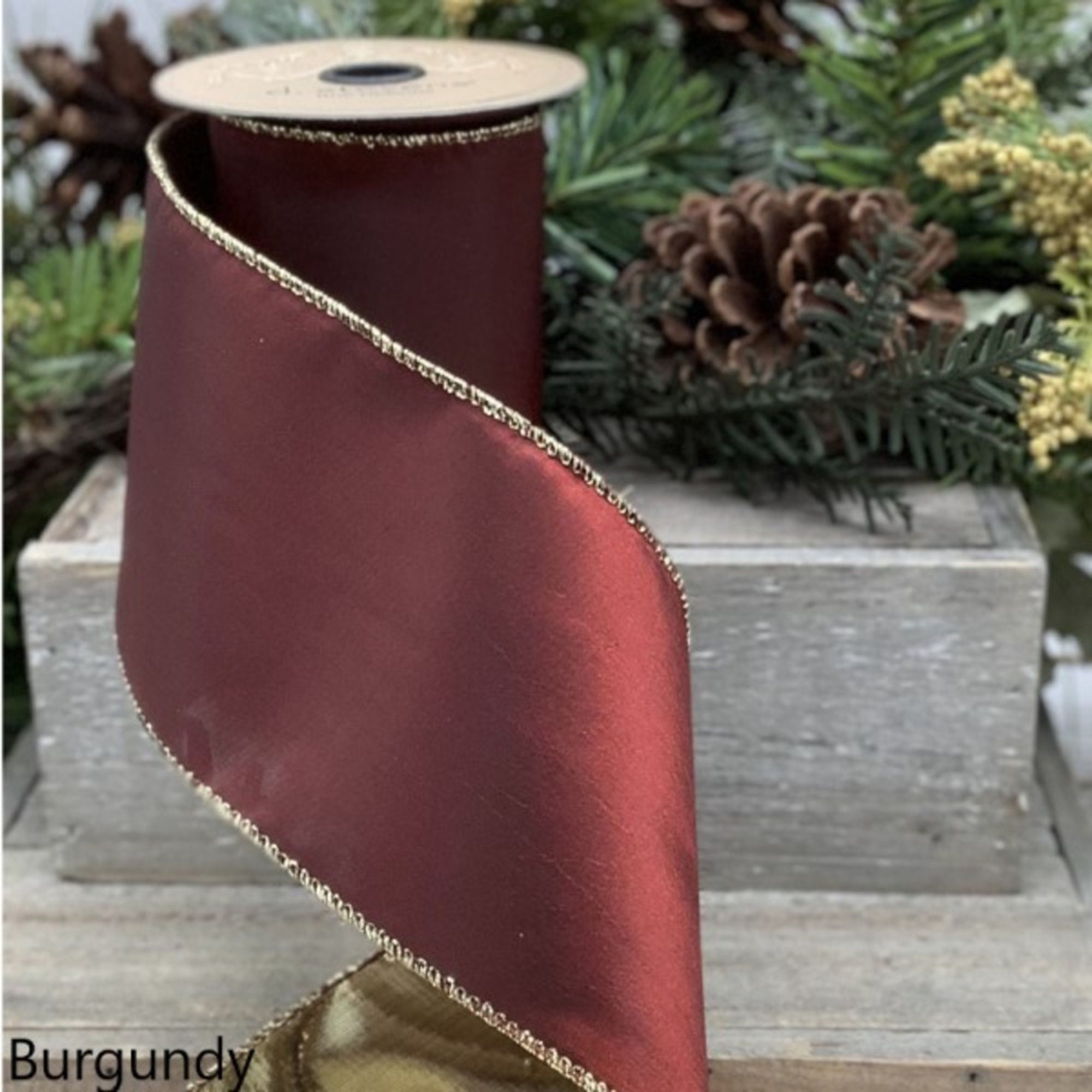 4" Burgundy and Gold Taffeta Wired Ribbon, D Stevens Ribbon, Burgundy Ribbon, Burgundy and Gold Ribbon, Burgundy Wired Ribbon