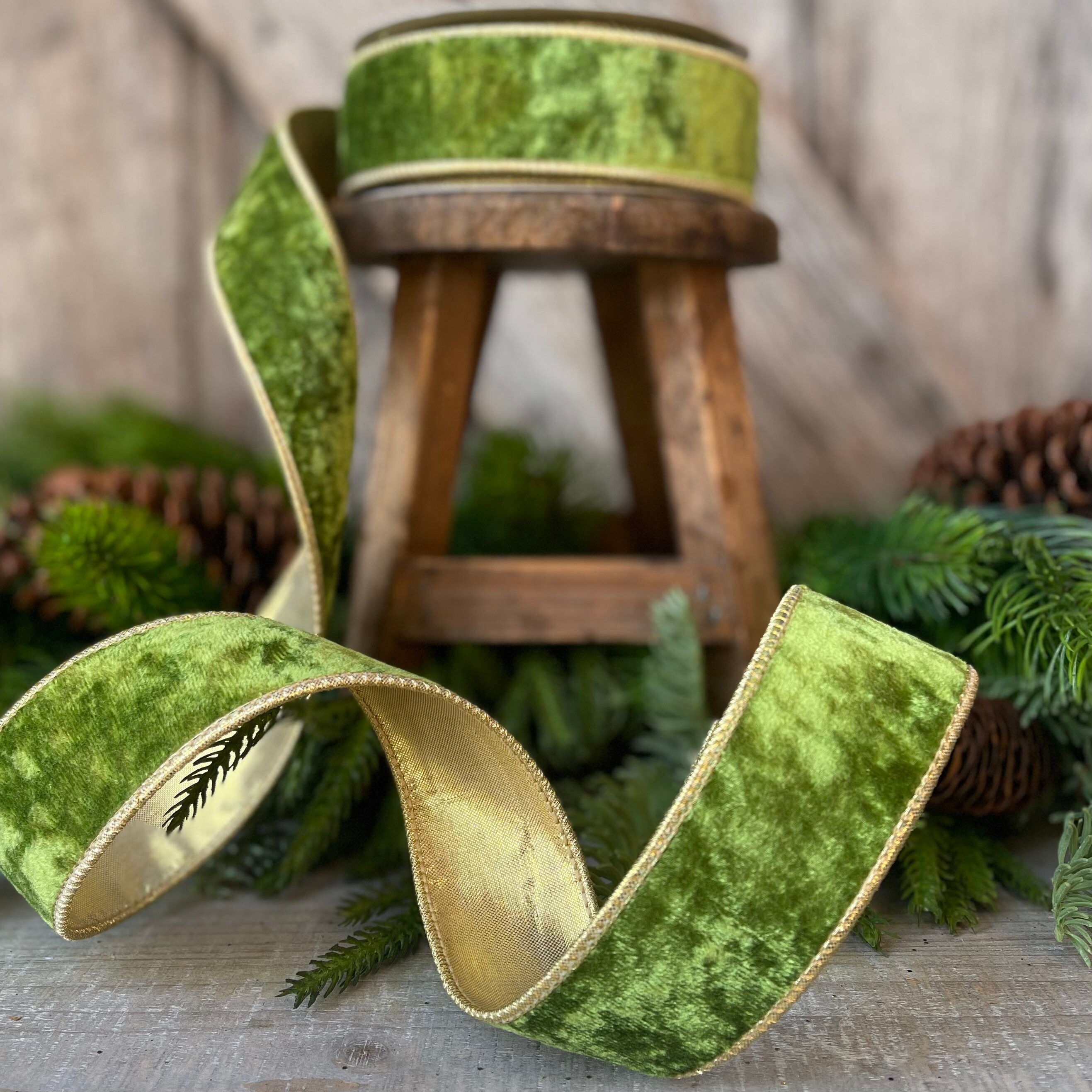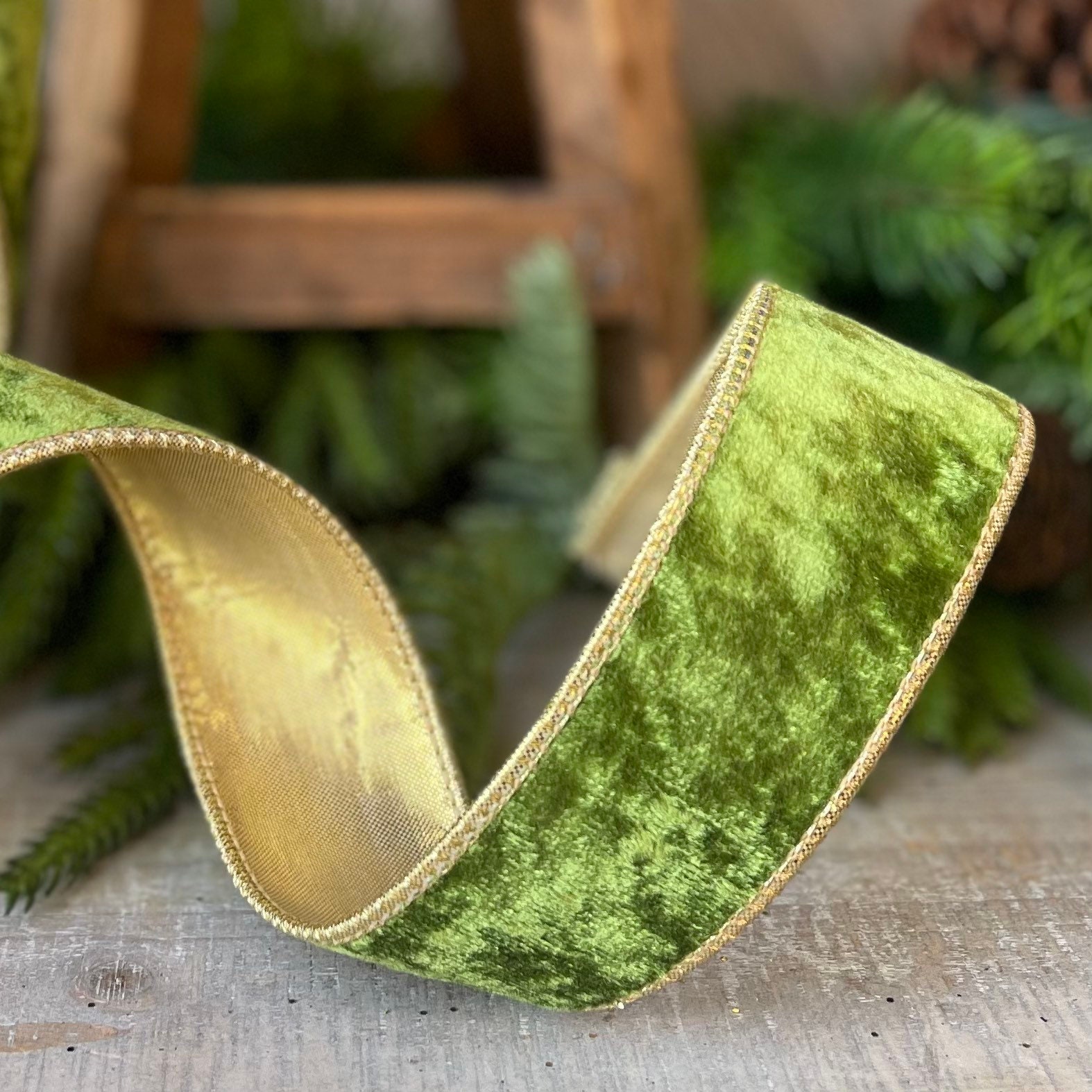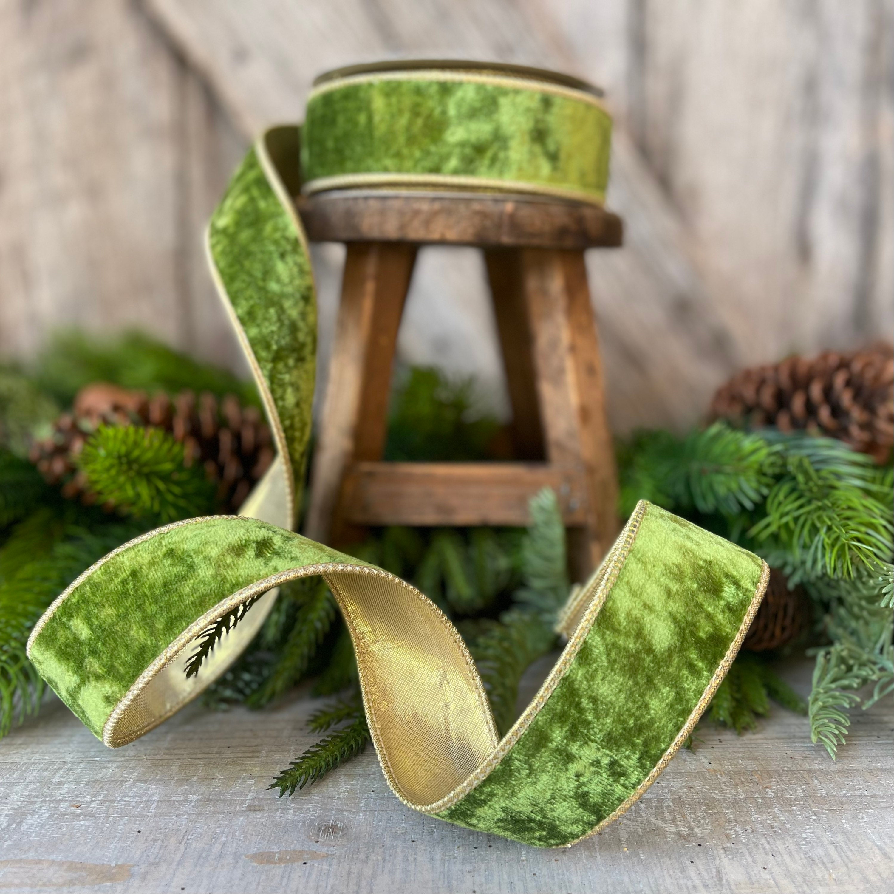 1.5" Moss Green Velvet Ribbon, Wired Velvet Ribbon, Christmas Velvet Ribbon, Green Velvet Ribbon, Green with gold backing velvet ribbon