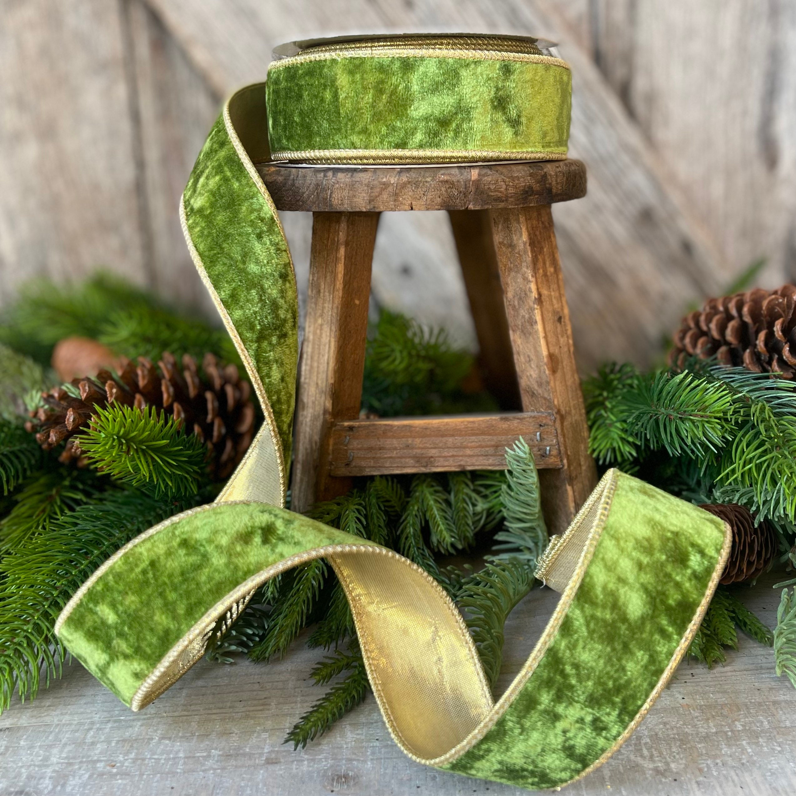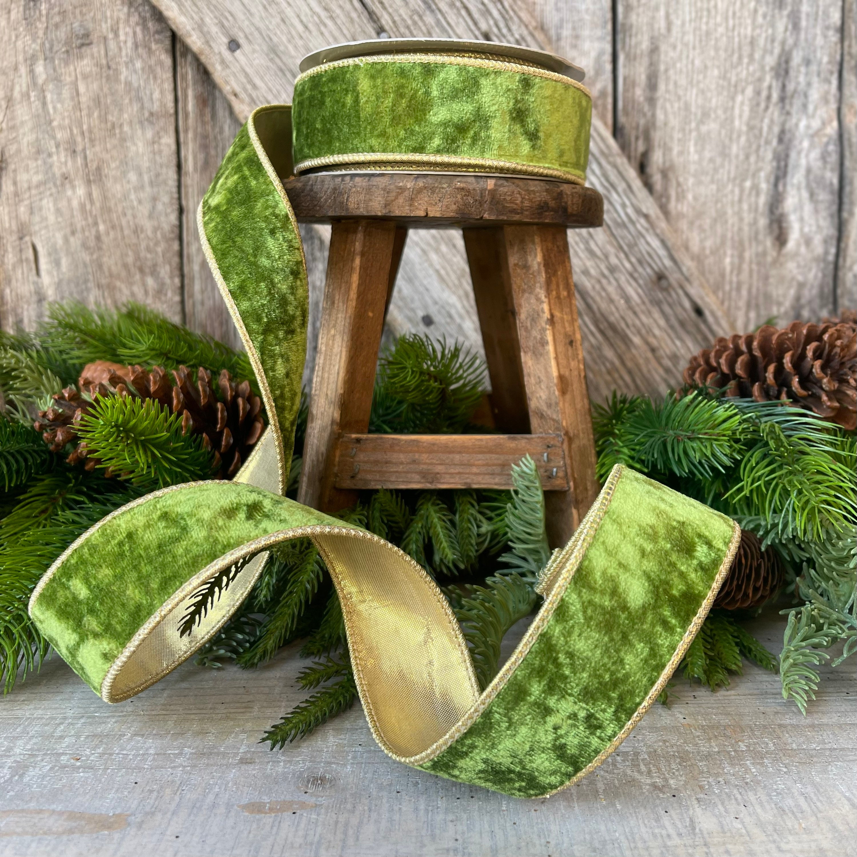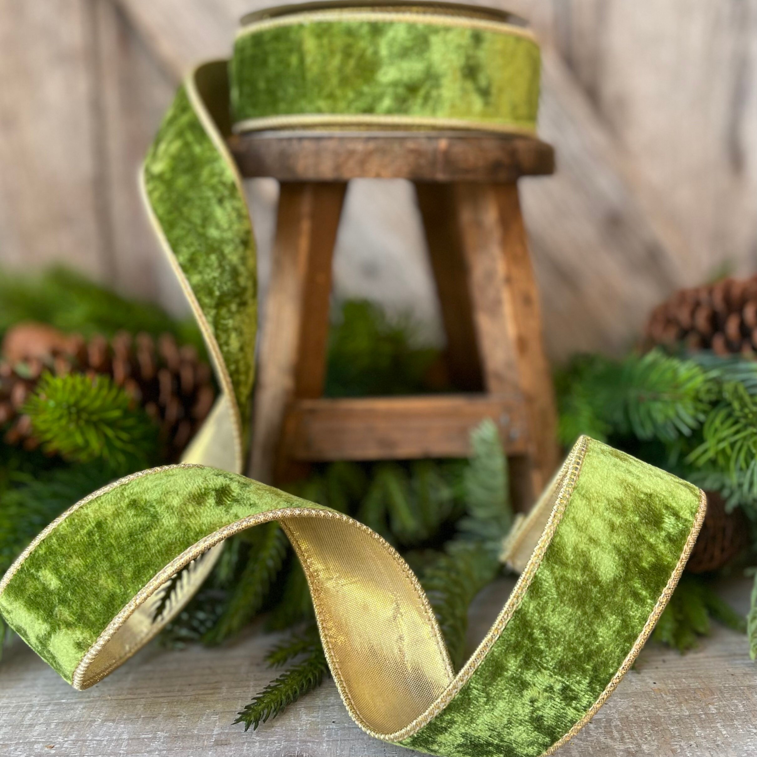 1.5" Moss Green Velvet Ribbon, Wired Velvet Ribbon, Christmas Velvet Ribbon, Green Velvet Ribbon, Green with gold backing velvet ribbon