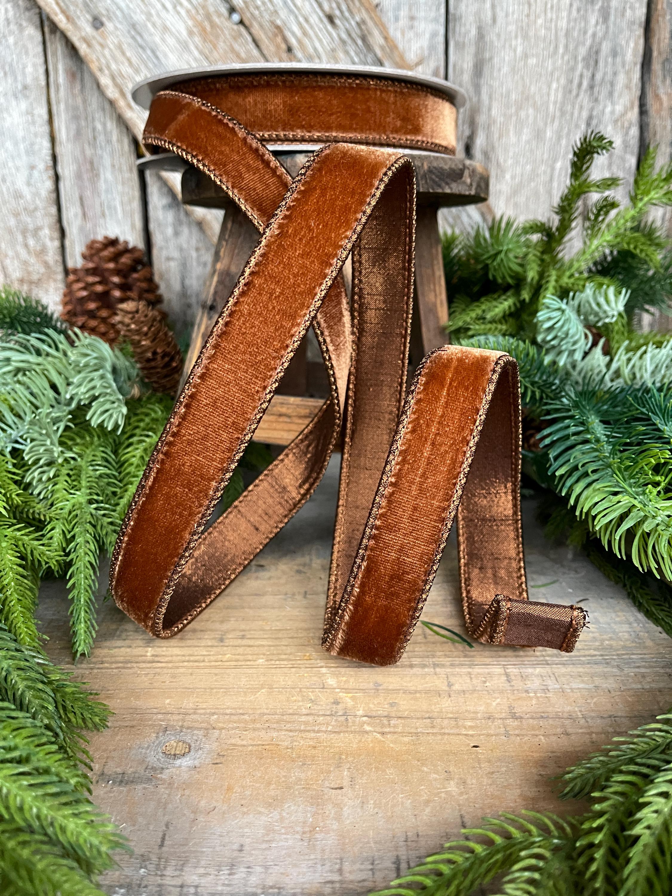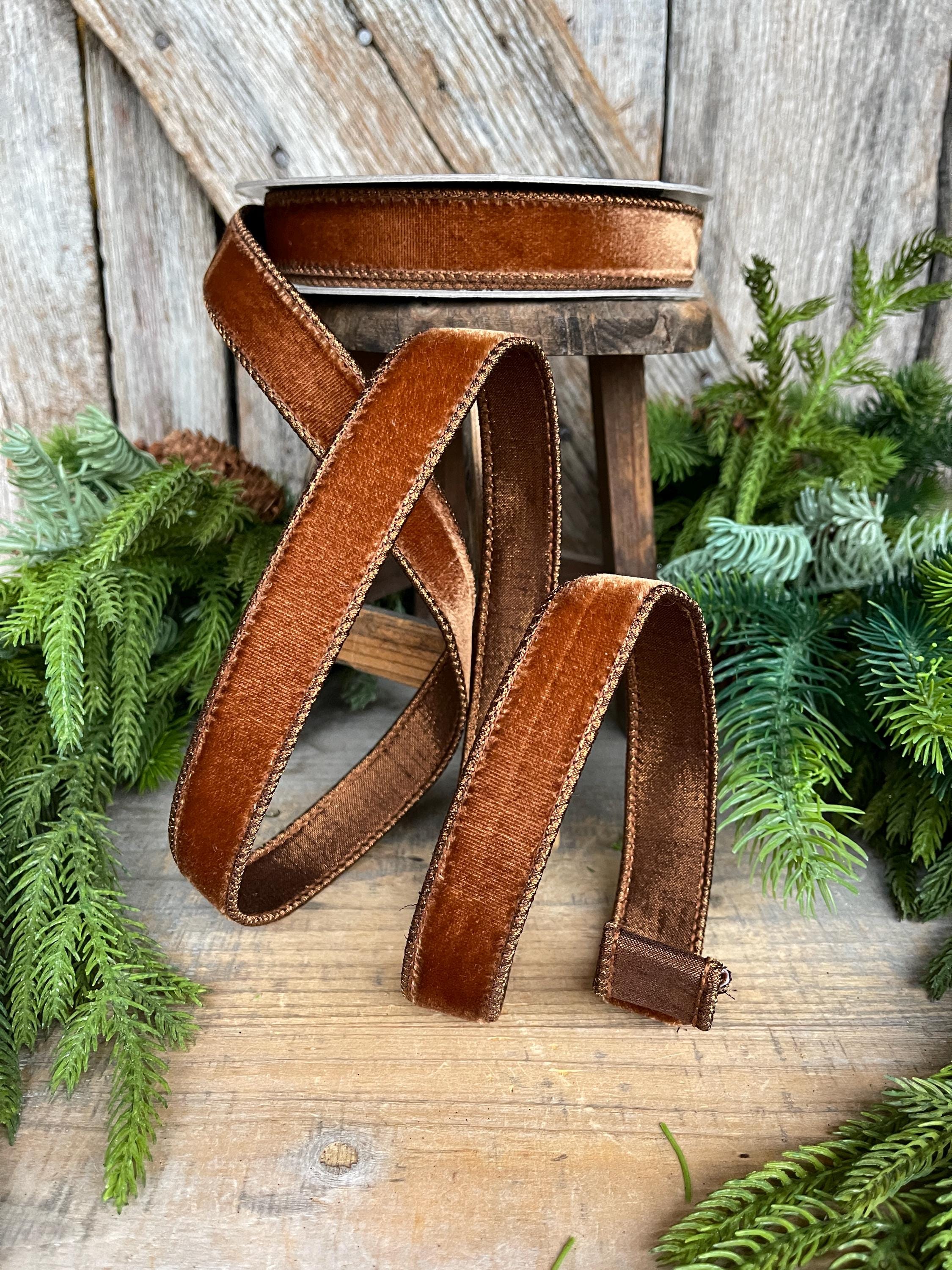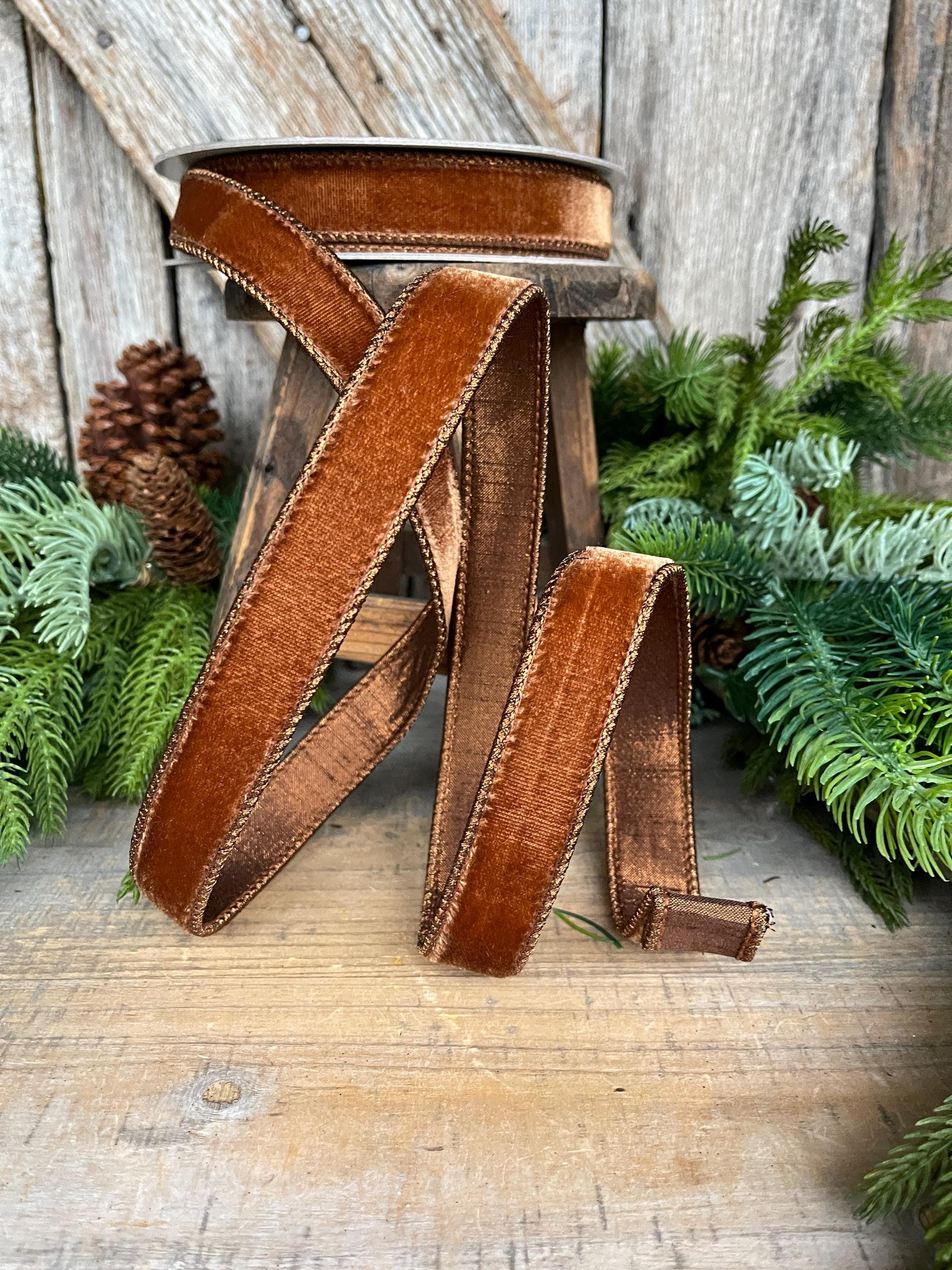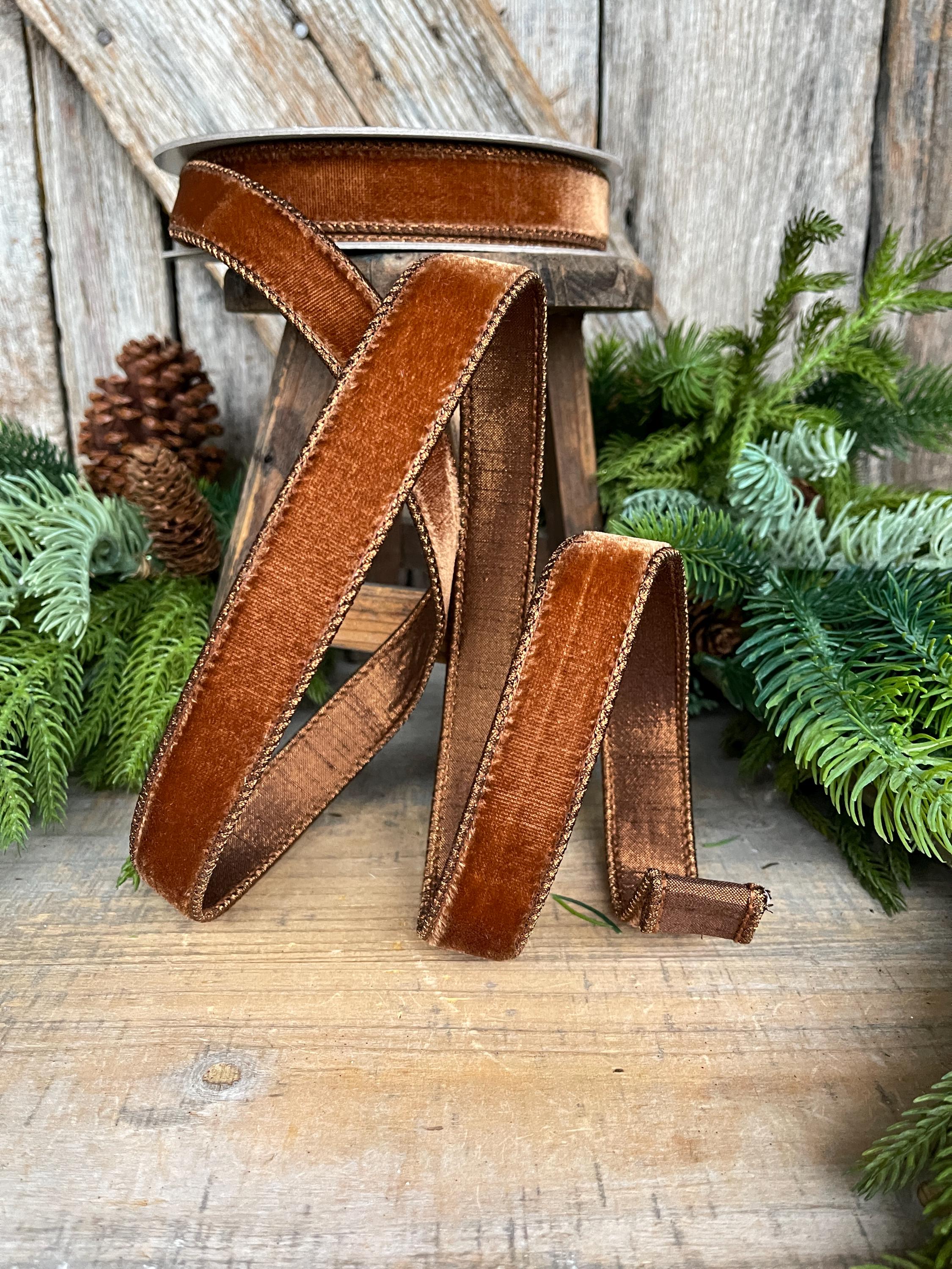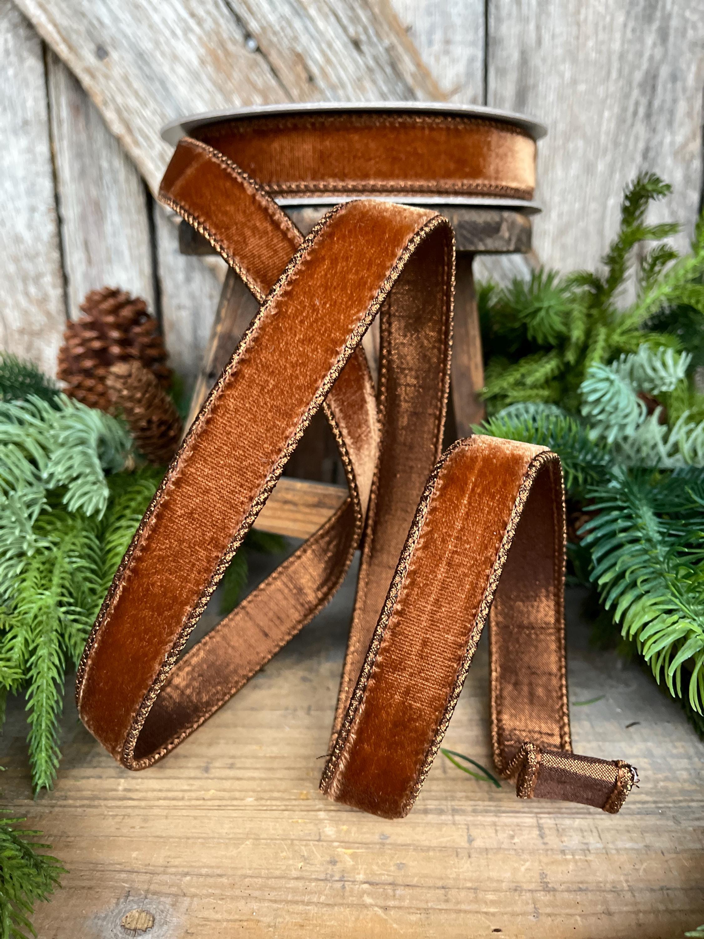 1” Pecan Brown Velvet Ribbon, Farrisilk ribbon, Velvet ribbon, Christmas Ribbon, Wired Ribbon, wood ribbon, Velvet ribbon, Christmas tree