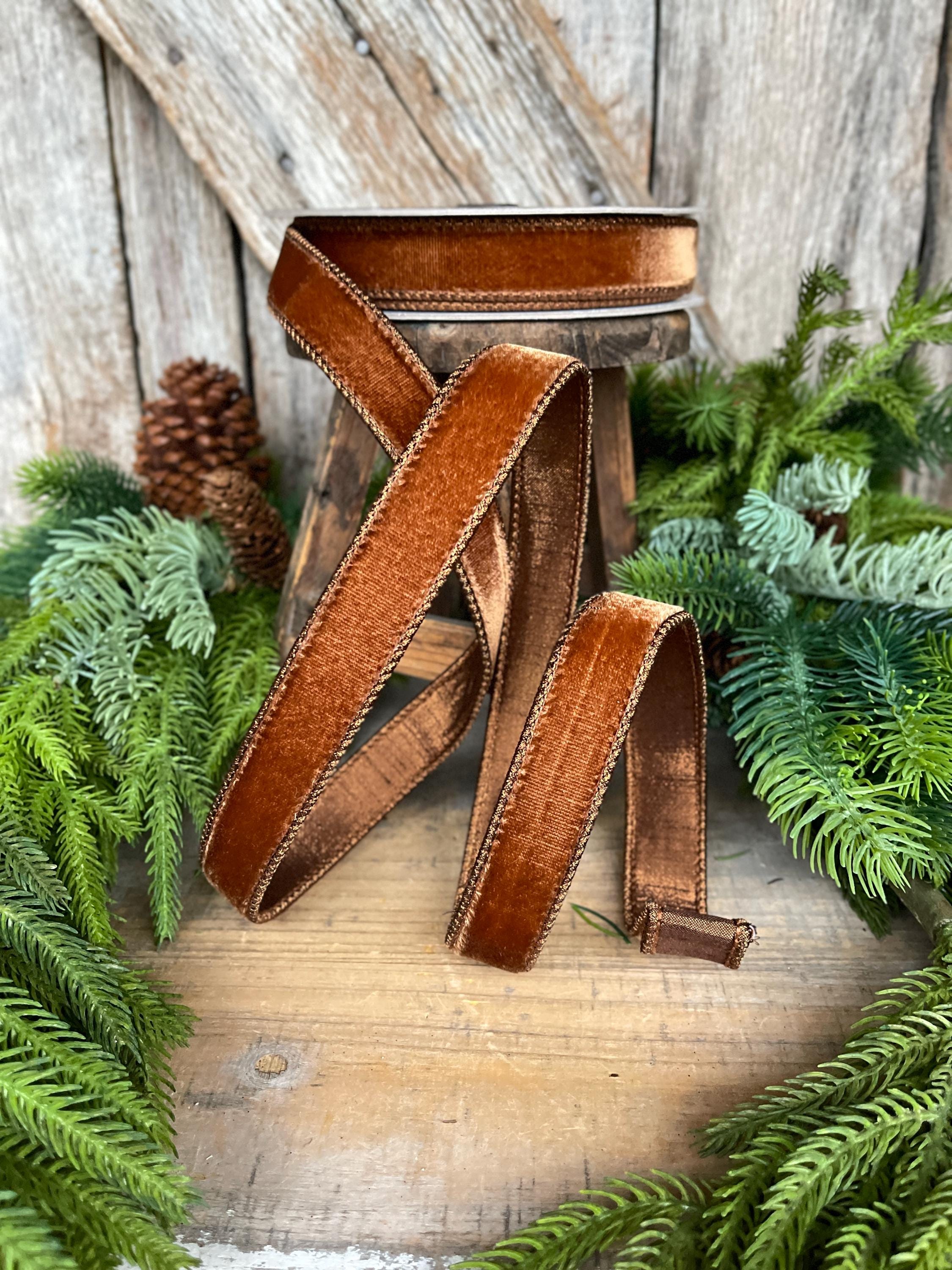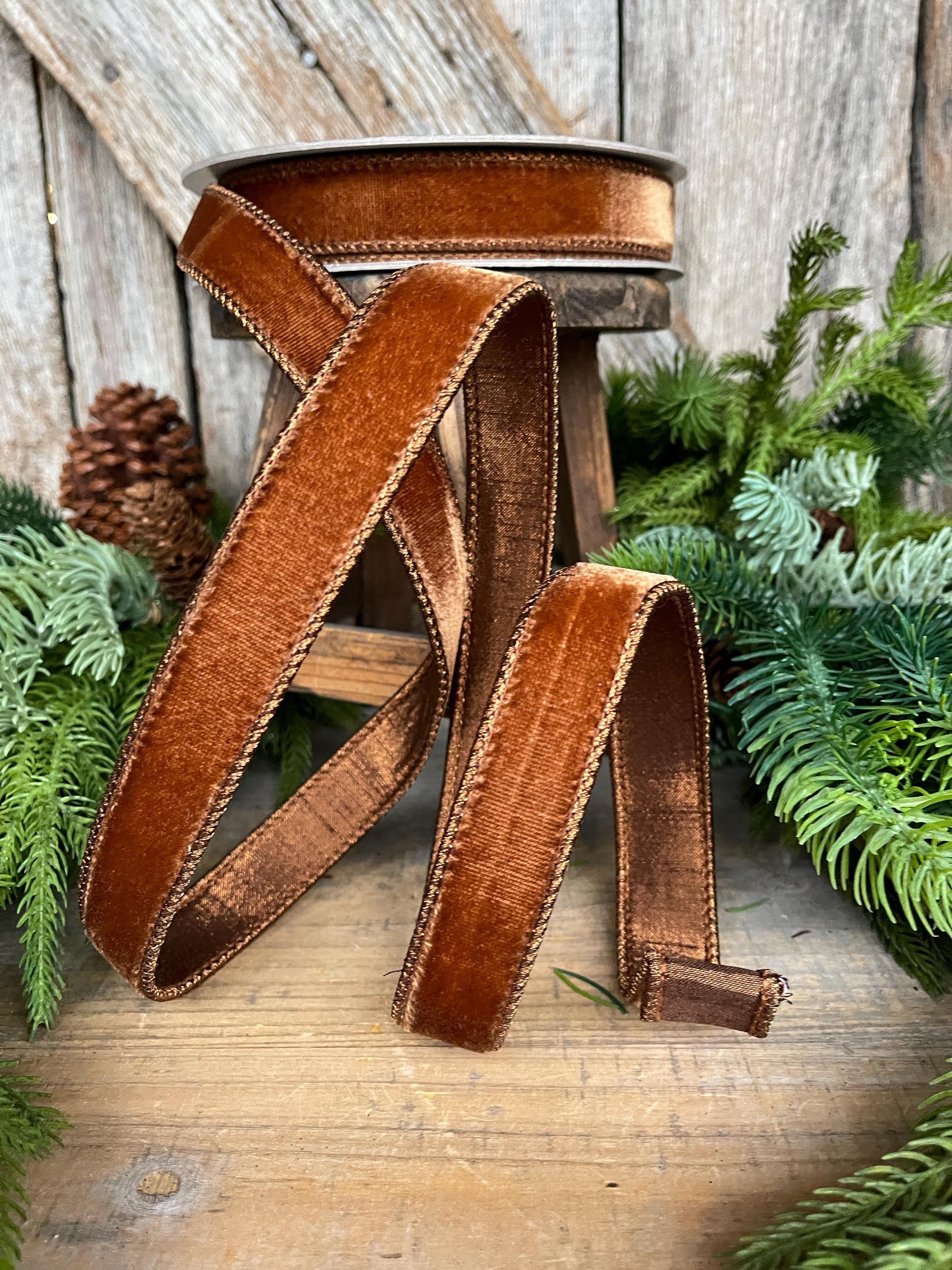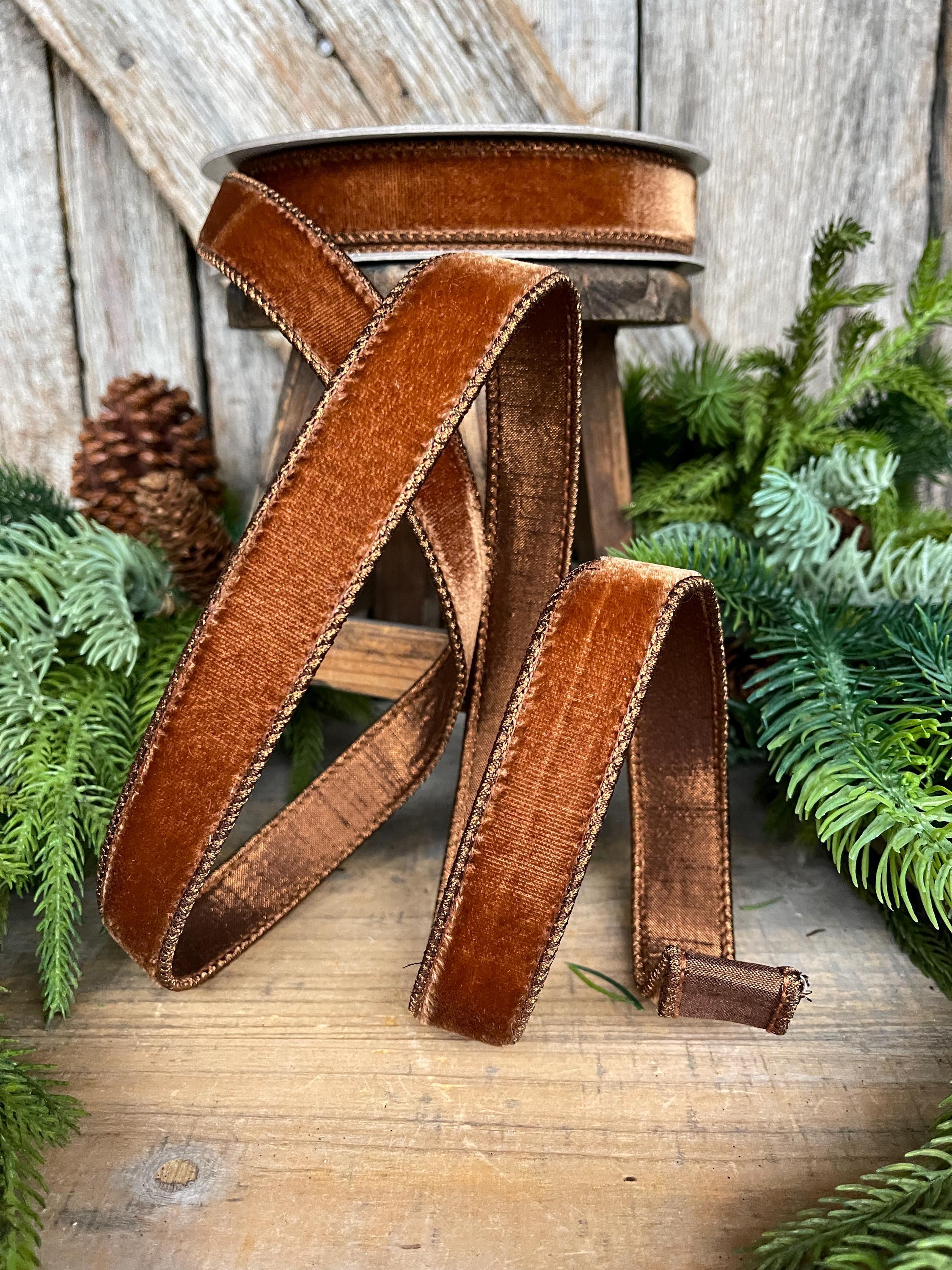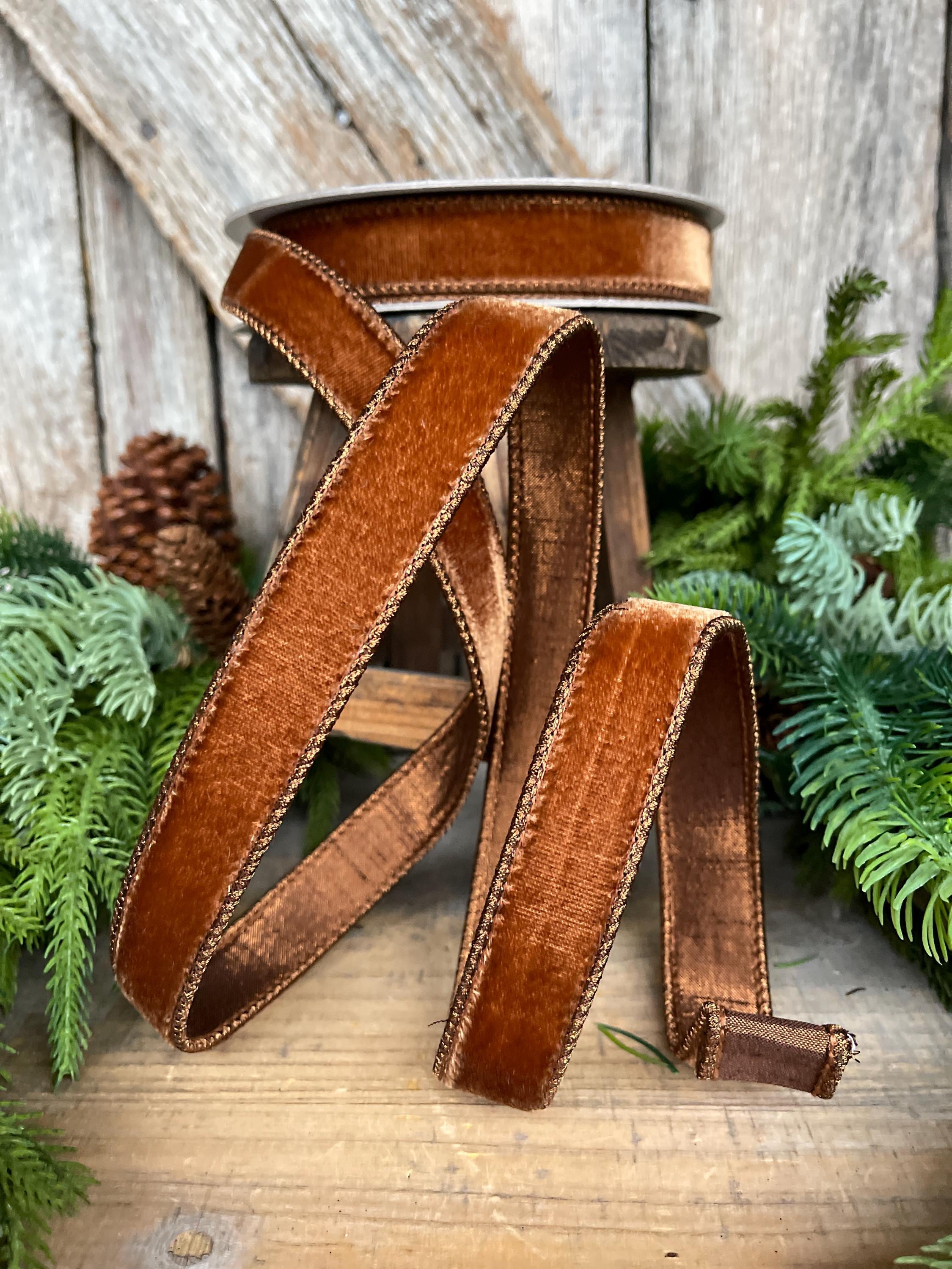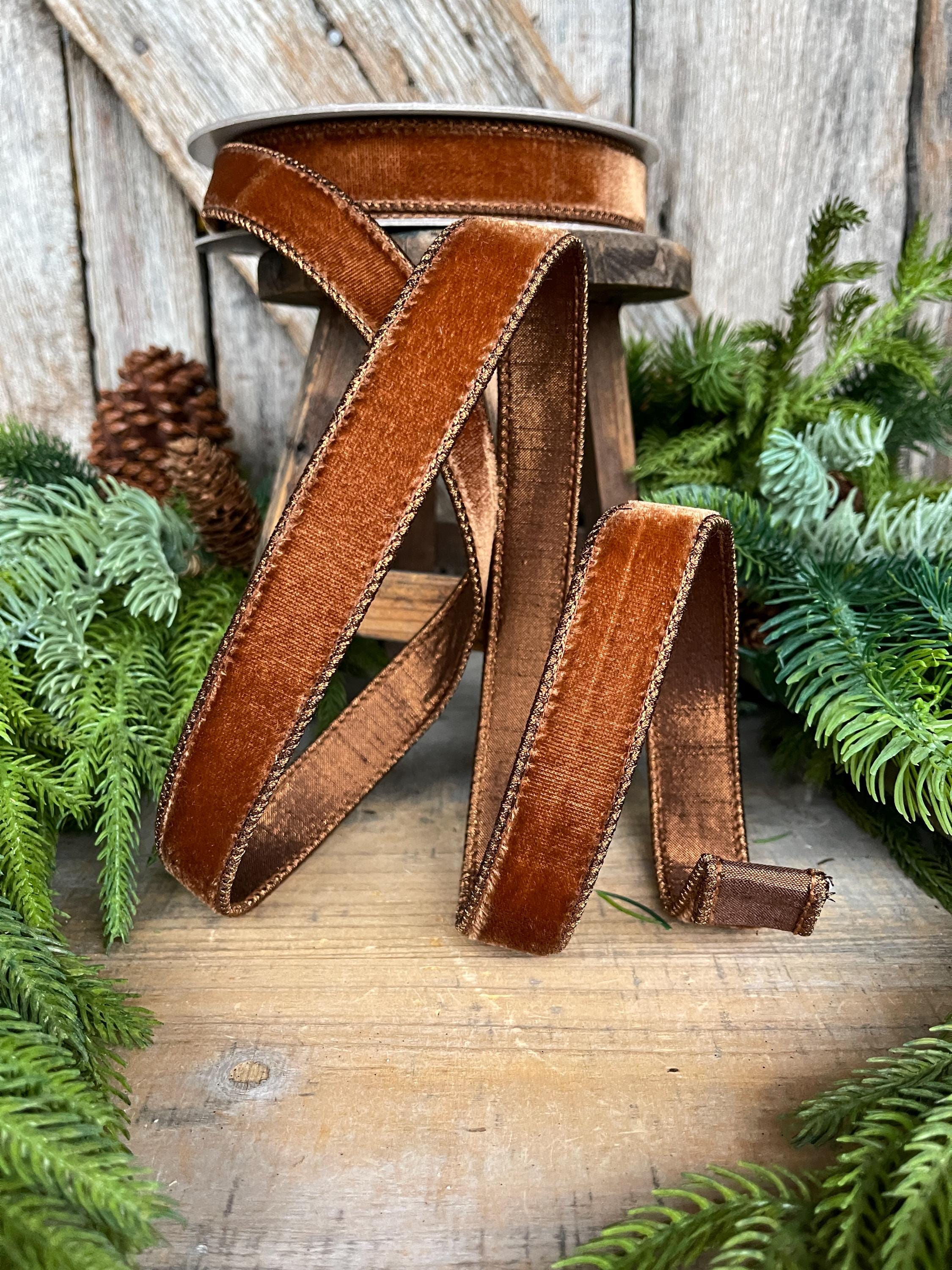 1” Pecan Brown Velvet Ribbon, Farrisilk ribbon, Velvet ribbon, Christmas Ribbon, Wired Ribbon, wood ribbon, Velvet ribbon, Christmas tree