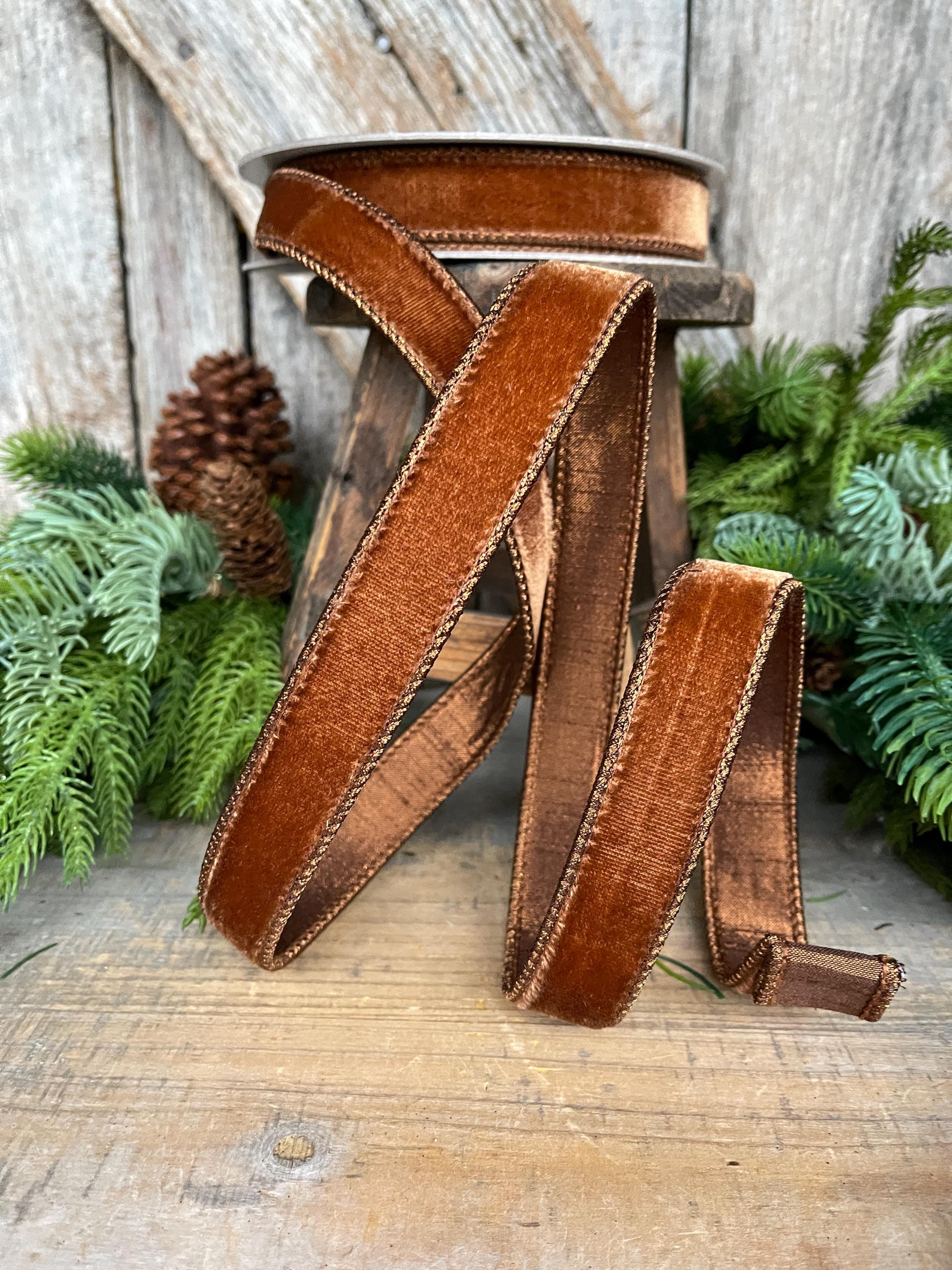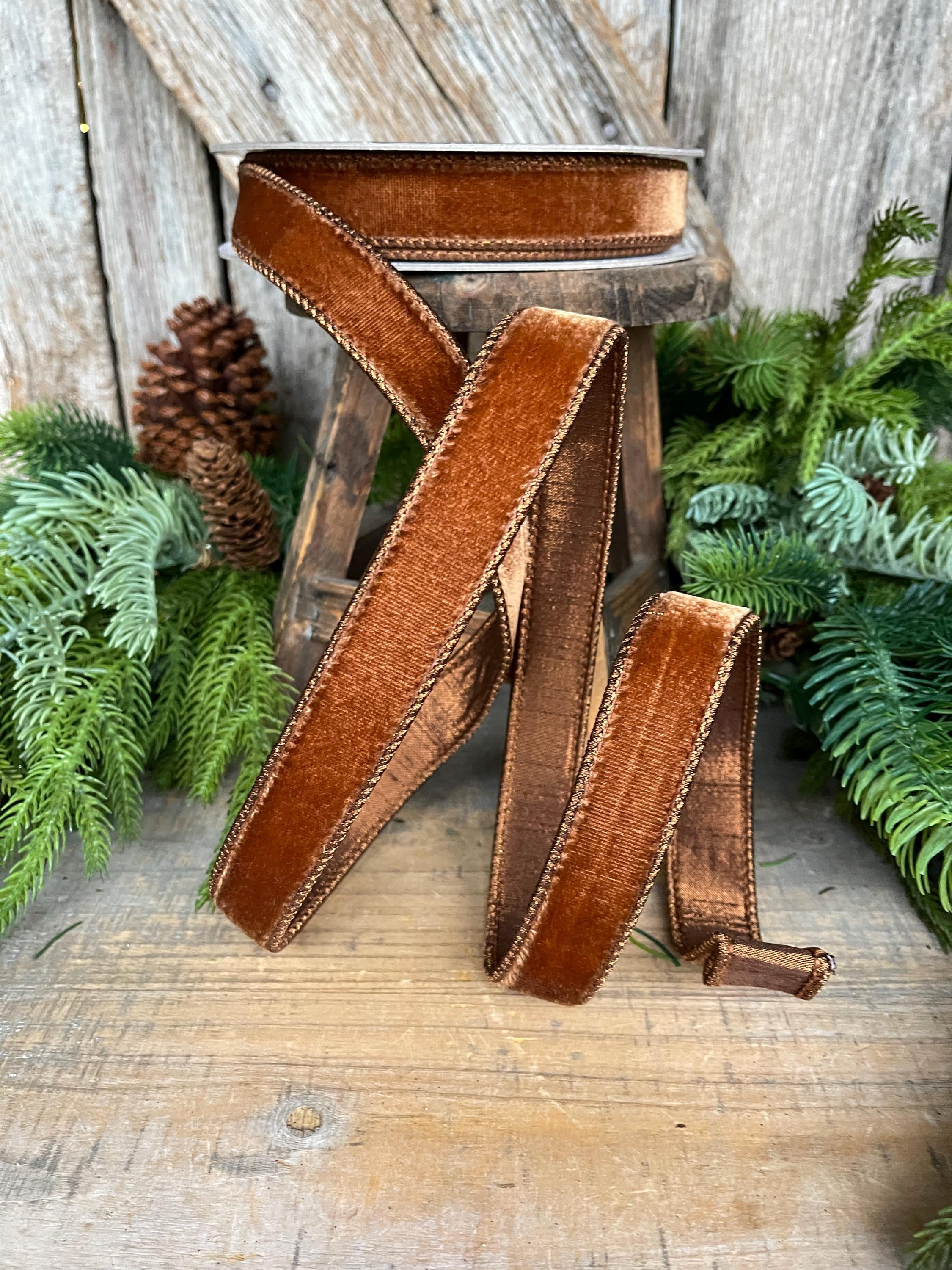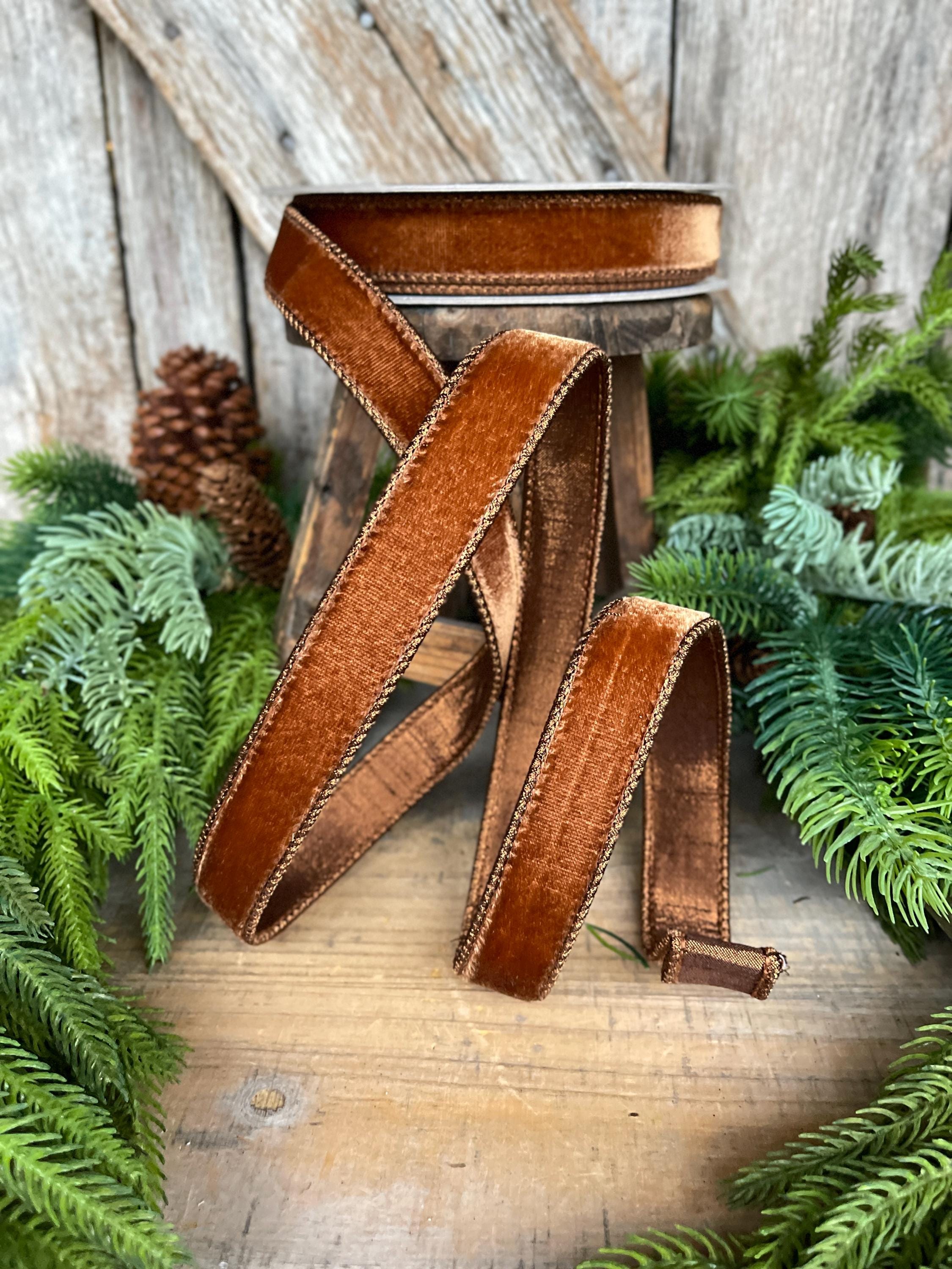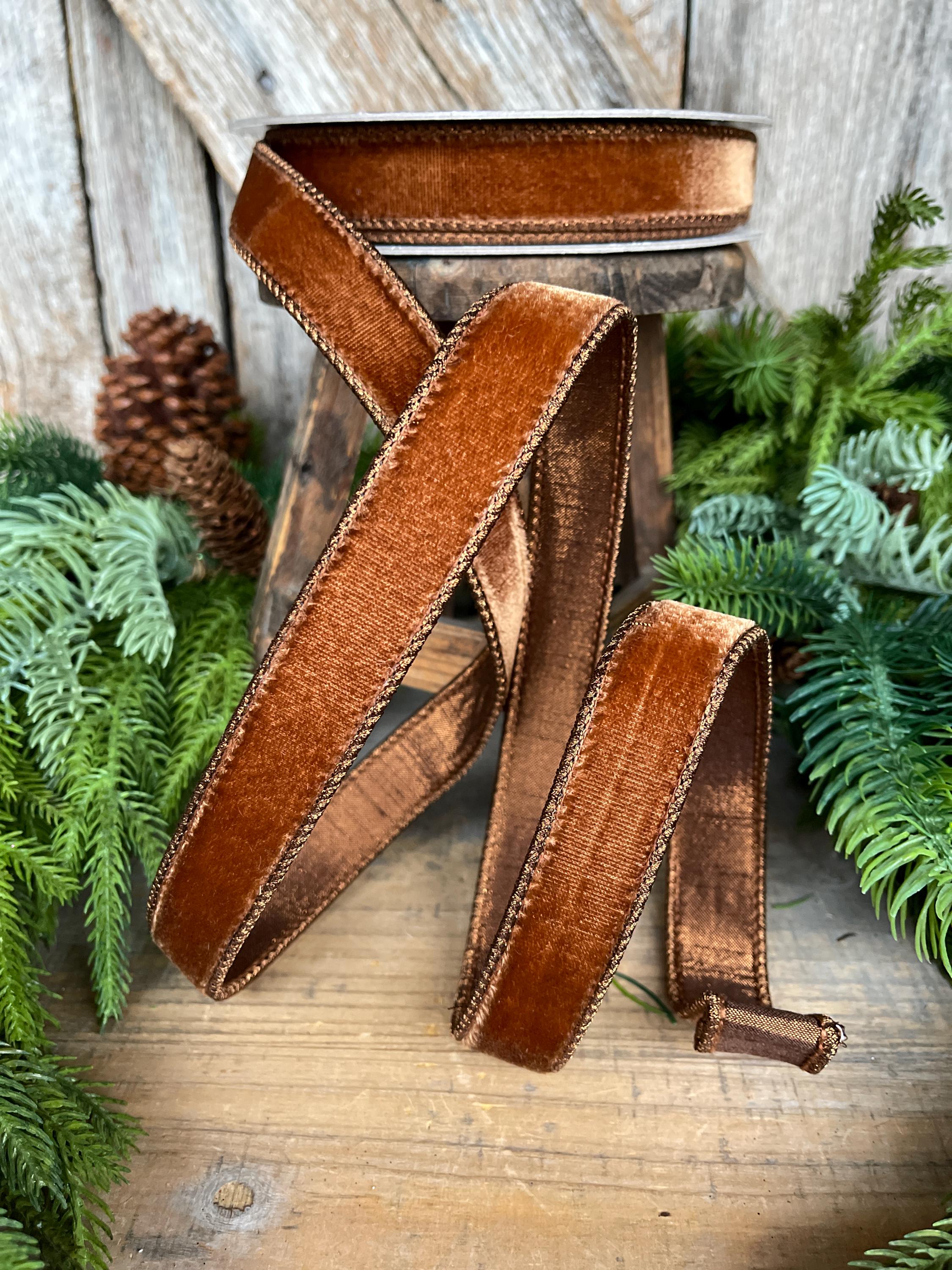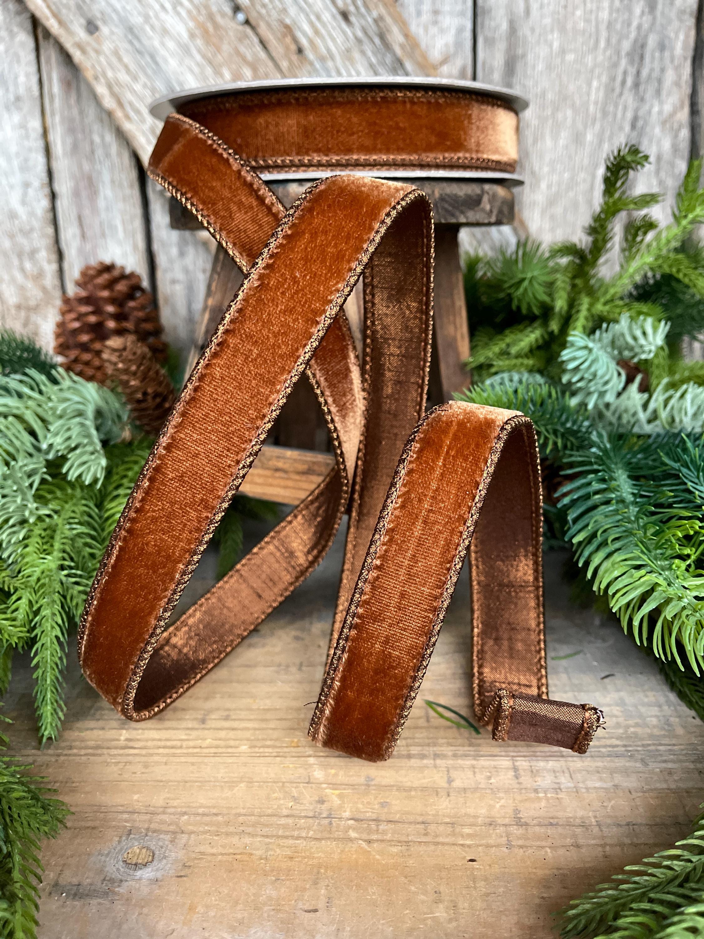 1” Pecan Brown Velvet Ribbon, Farrisilk ribbon, Velvet ribbon, Christmas Ribbon, Wired Ribbon, wood ribbon, Velvet ribbon, Christmas tree