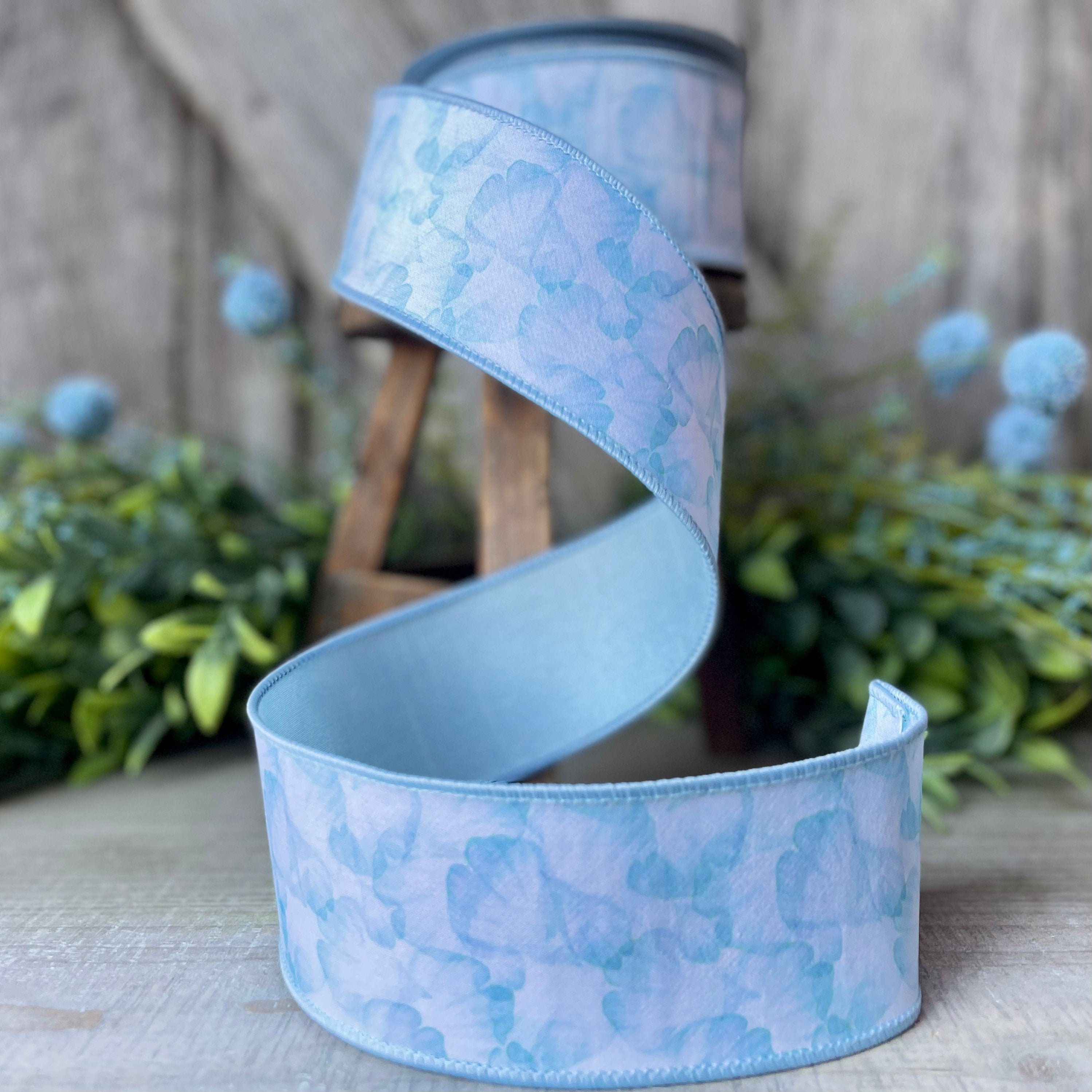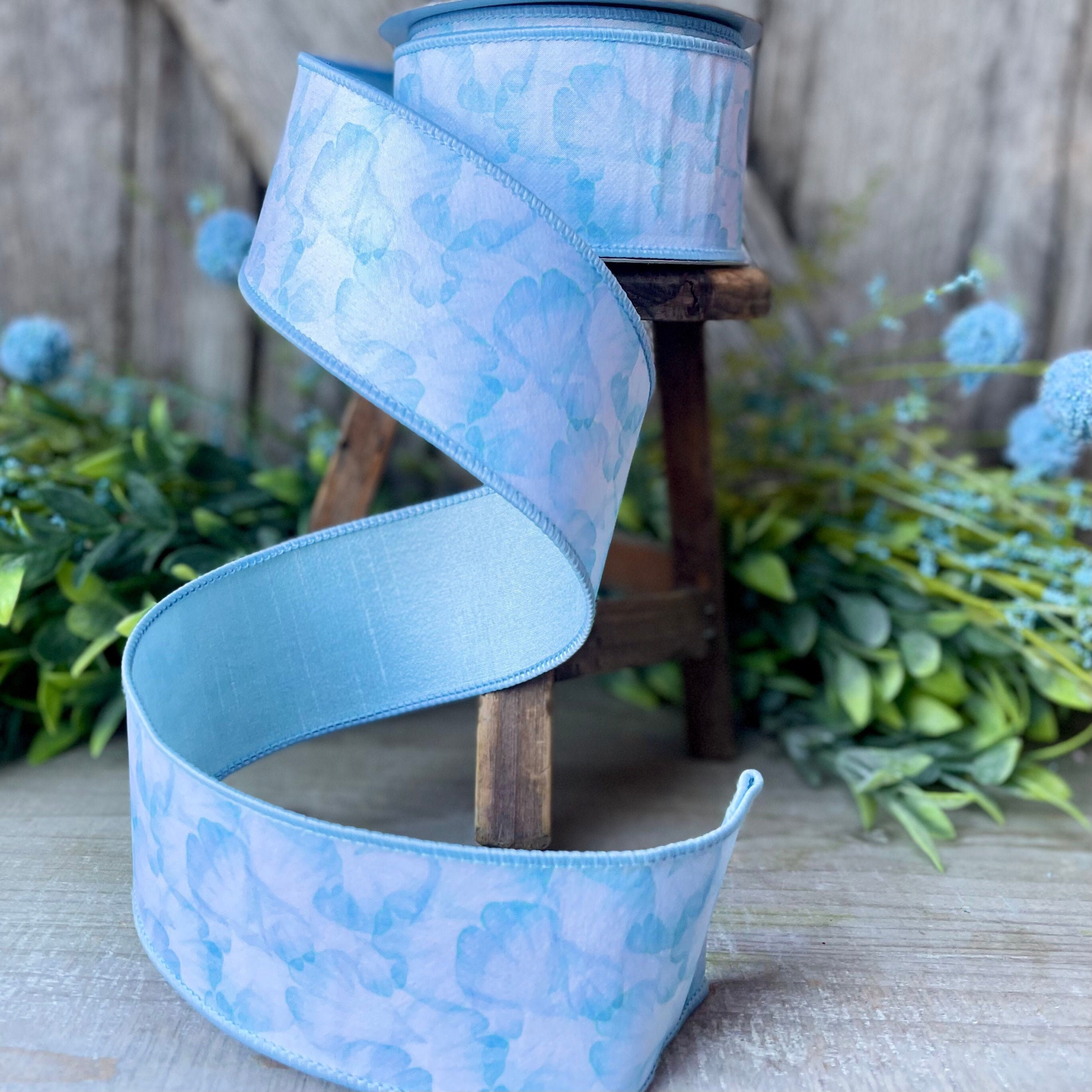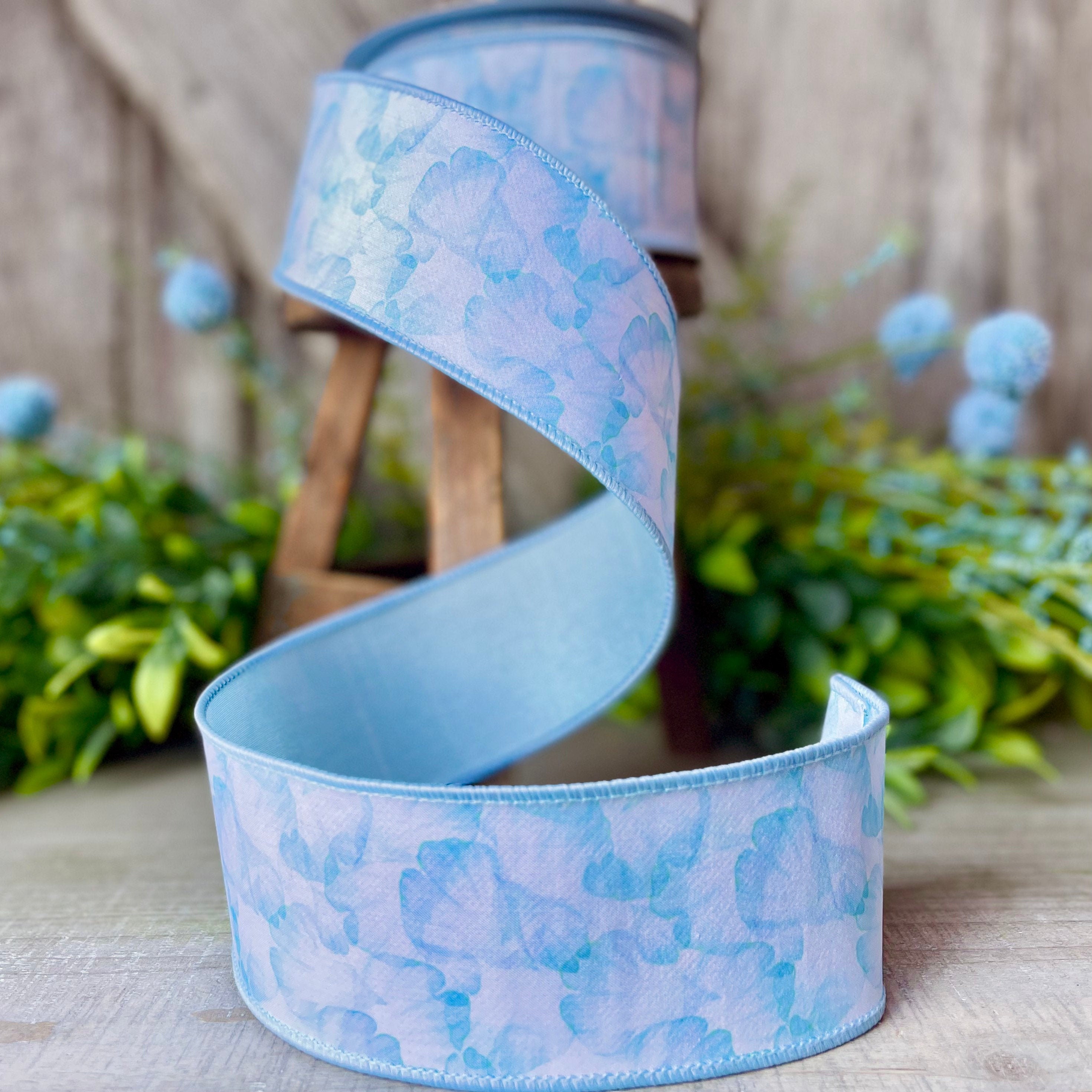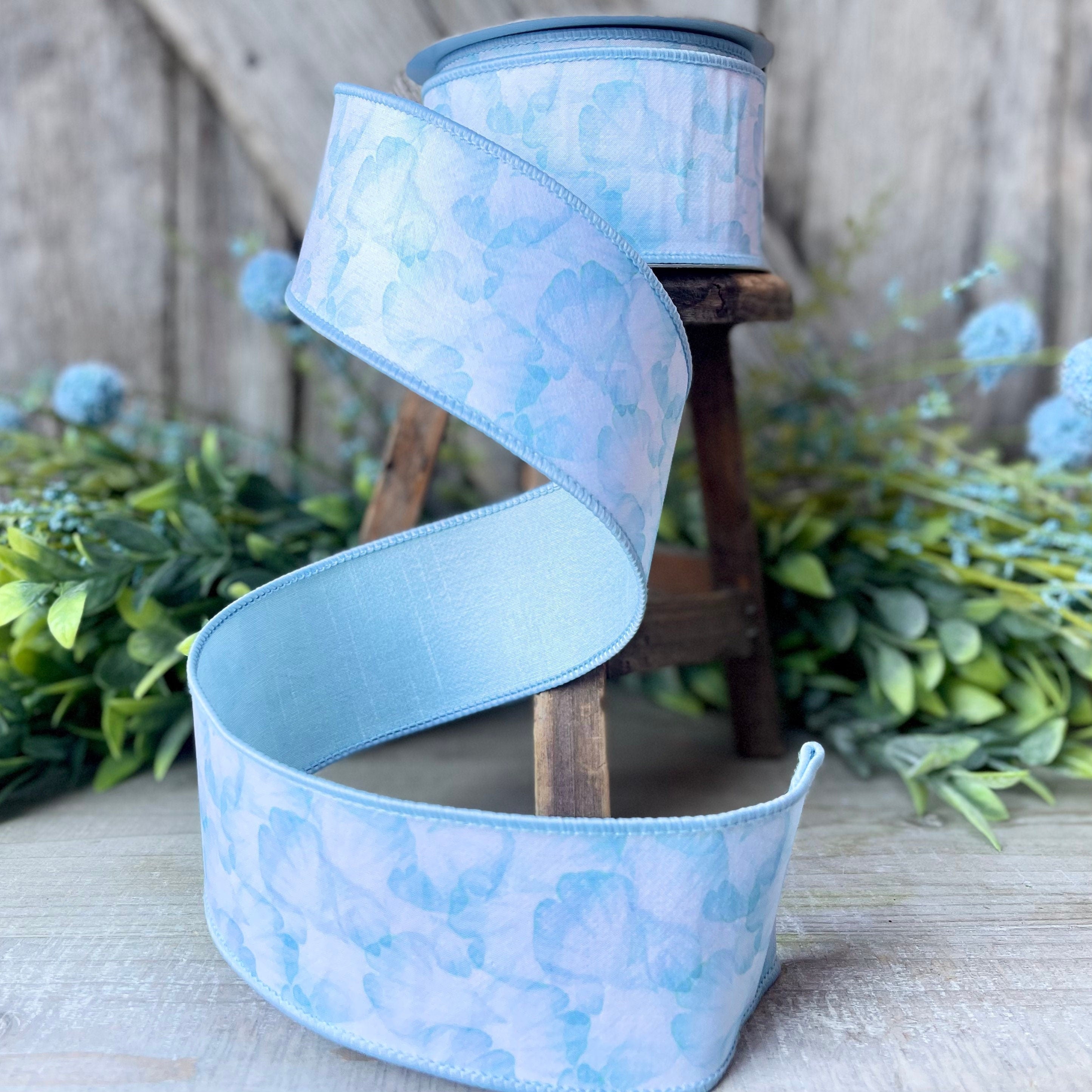 2.5" Blue Leaflet Spring Wired Ribbon by Farrisilk, Blue Ribbon, Spring Ribbon, Easter Ribbon,Blue Floral Ribbon, Wired Ribbon, Craft Supply