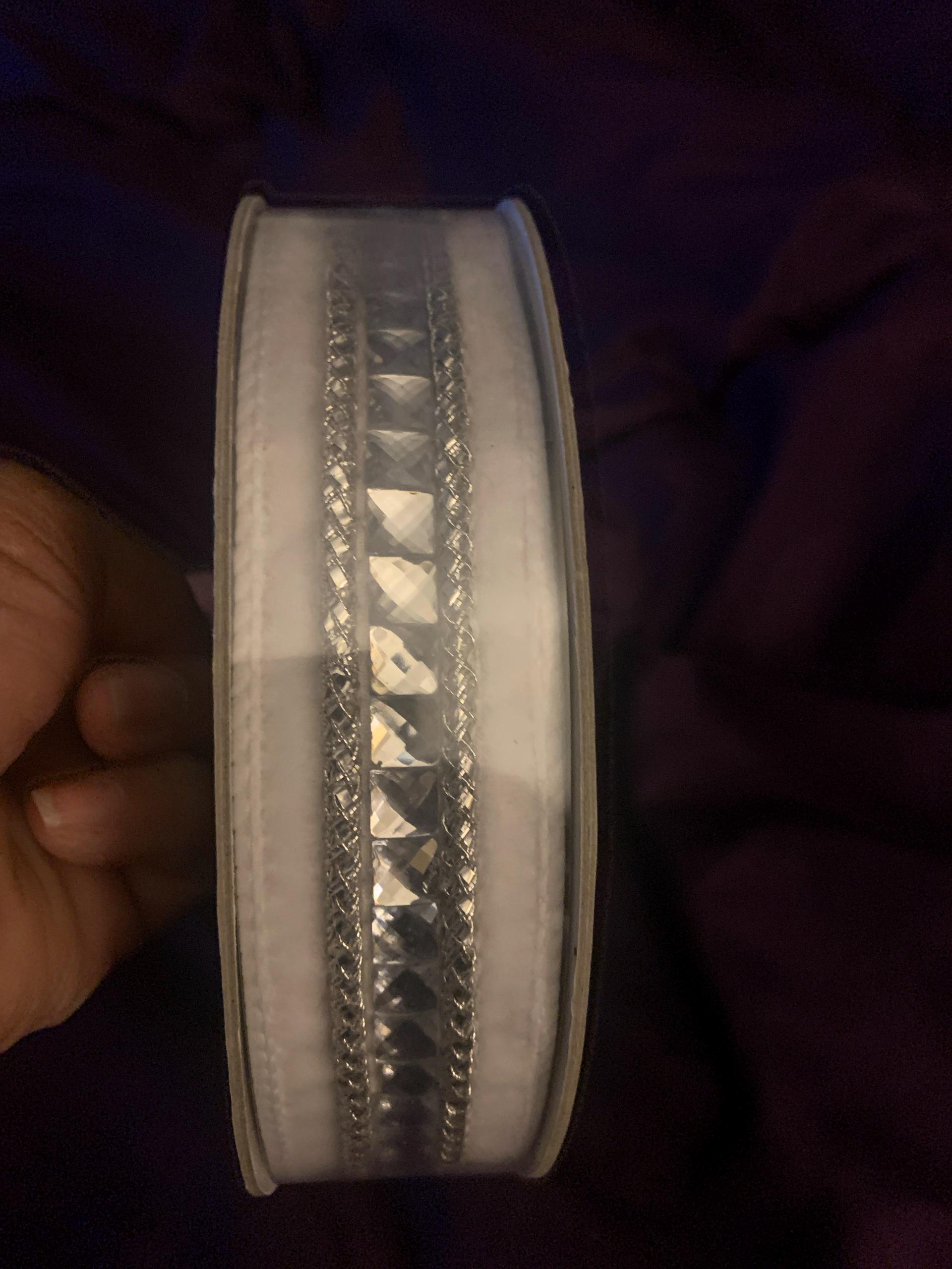 1.5" White Gemstones, Farrisilk, White Jeweled RIbbon, Rhinestone Ribbon, White Christmas Ribbon, Designer RIbbon, Farrisilk Gemstone Ribbon