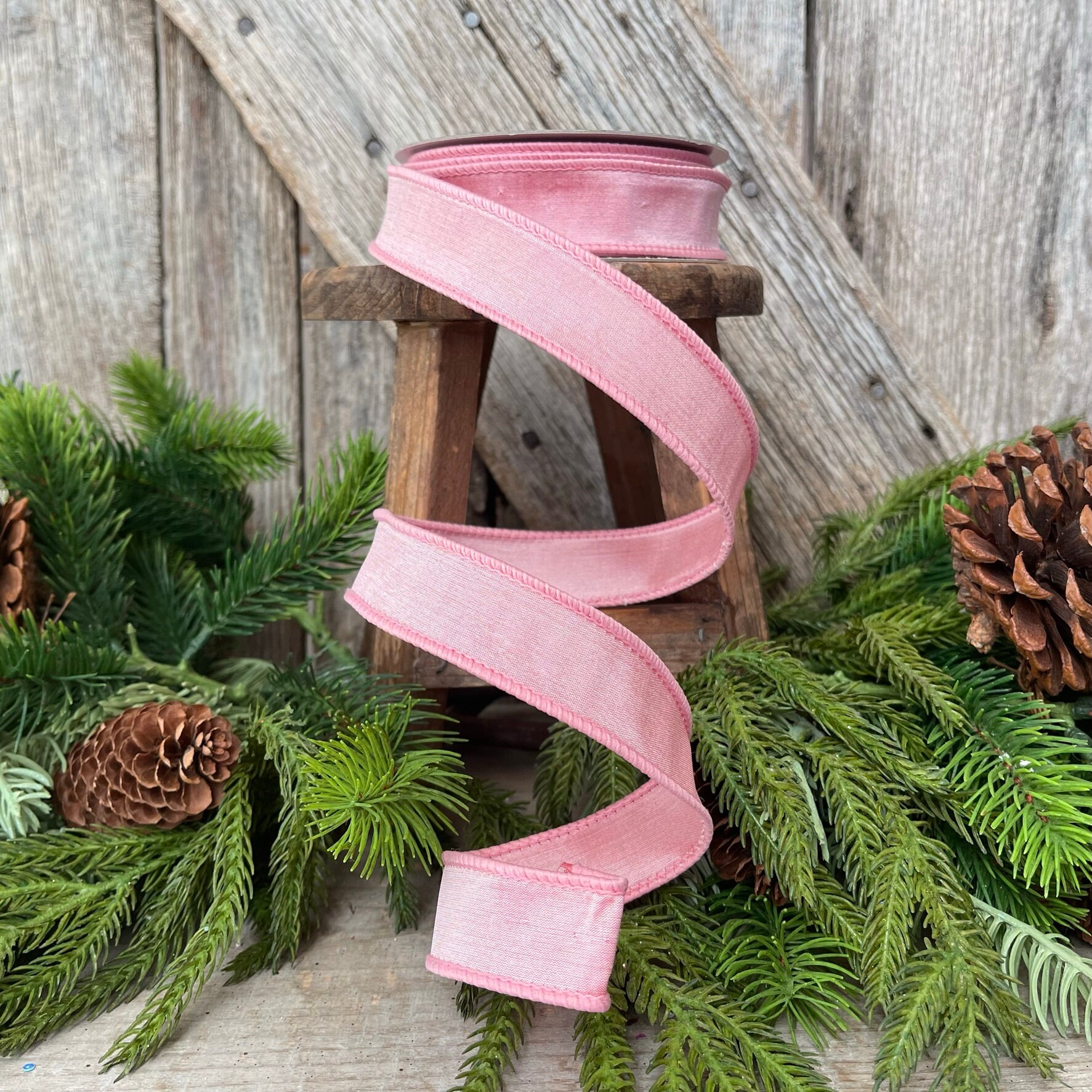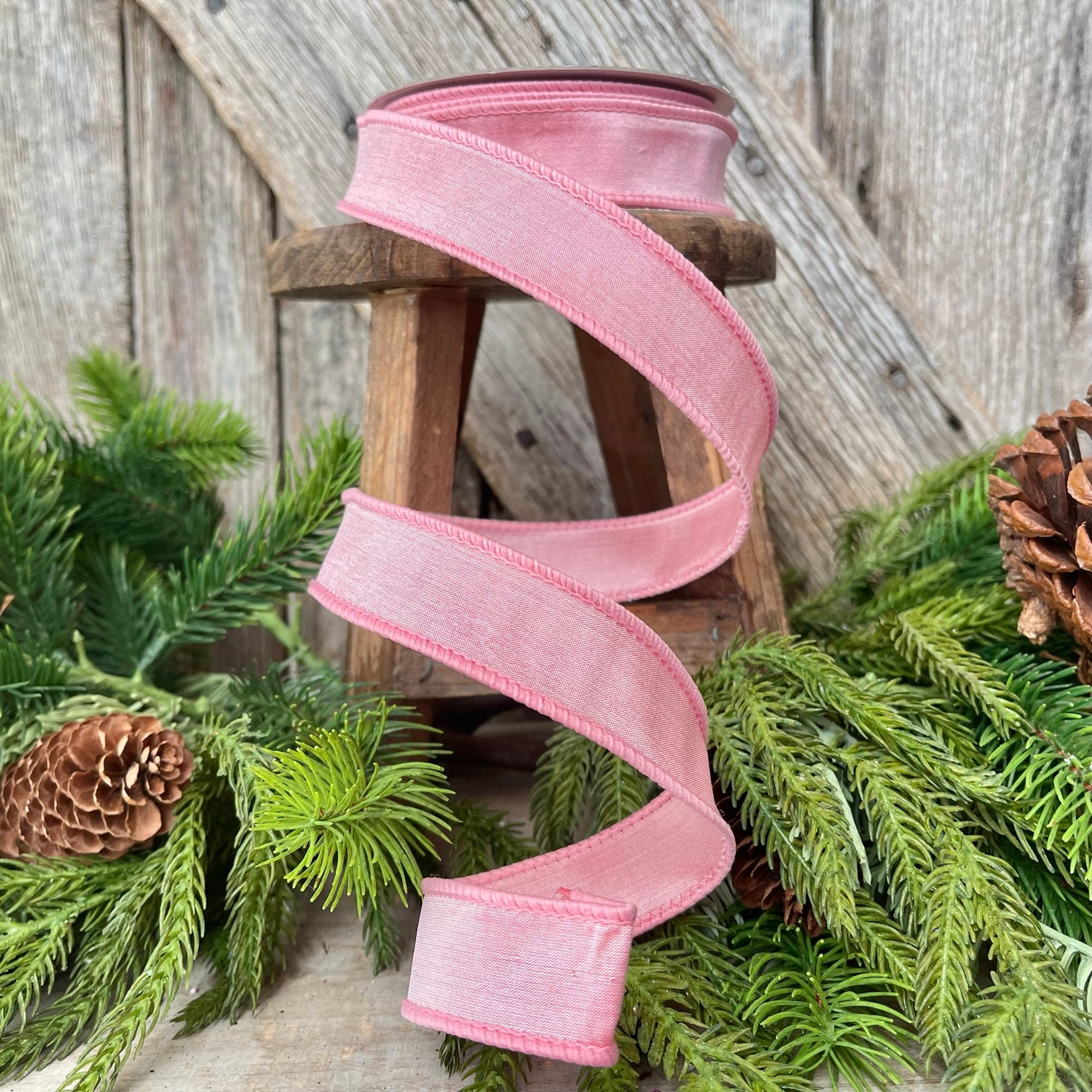 1" Baby Pink Pink Taffeta Ribbon, Farrisilk Ribbon, 1 inch ribbon, Wired Ribbon, Designer Ribbon, Pink Ribbon, Wreath Supply, Bow Ribbon