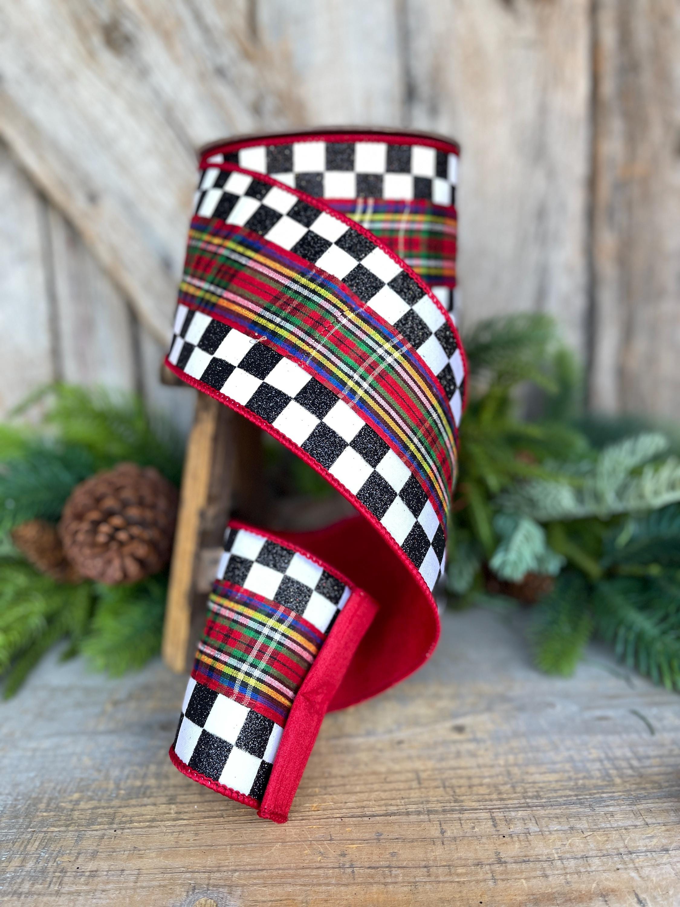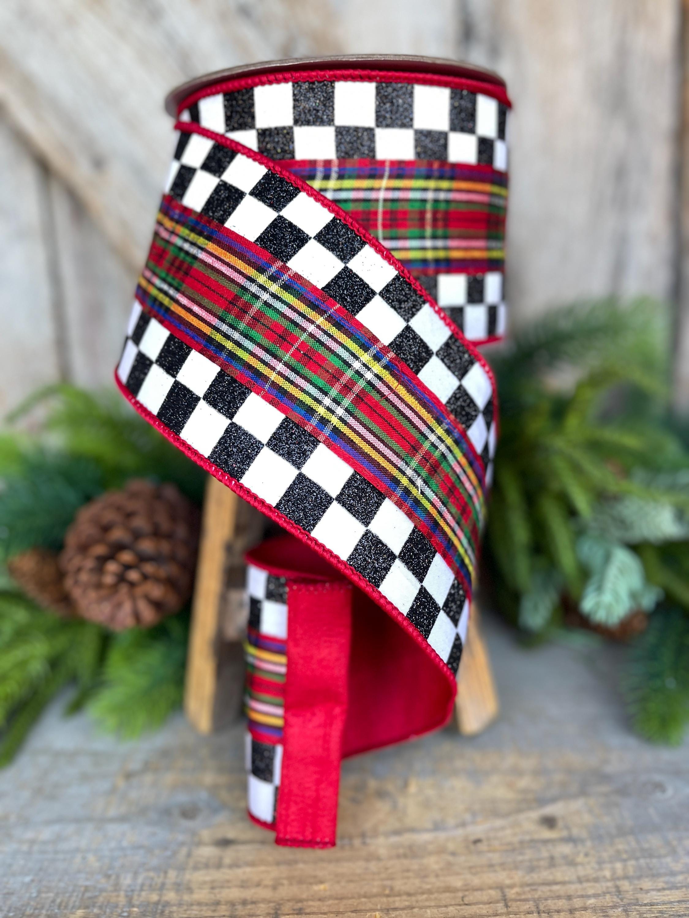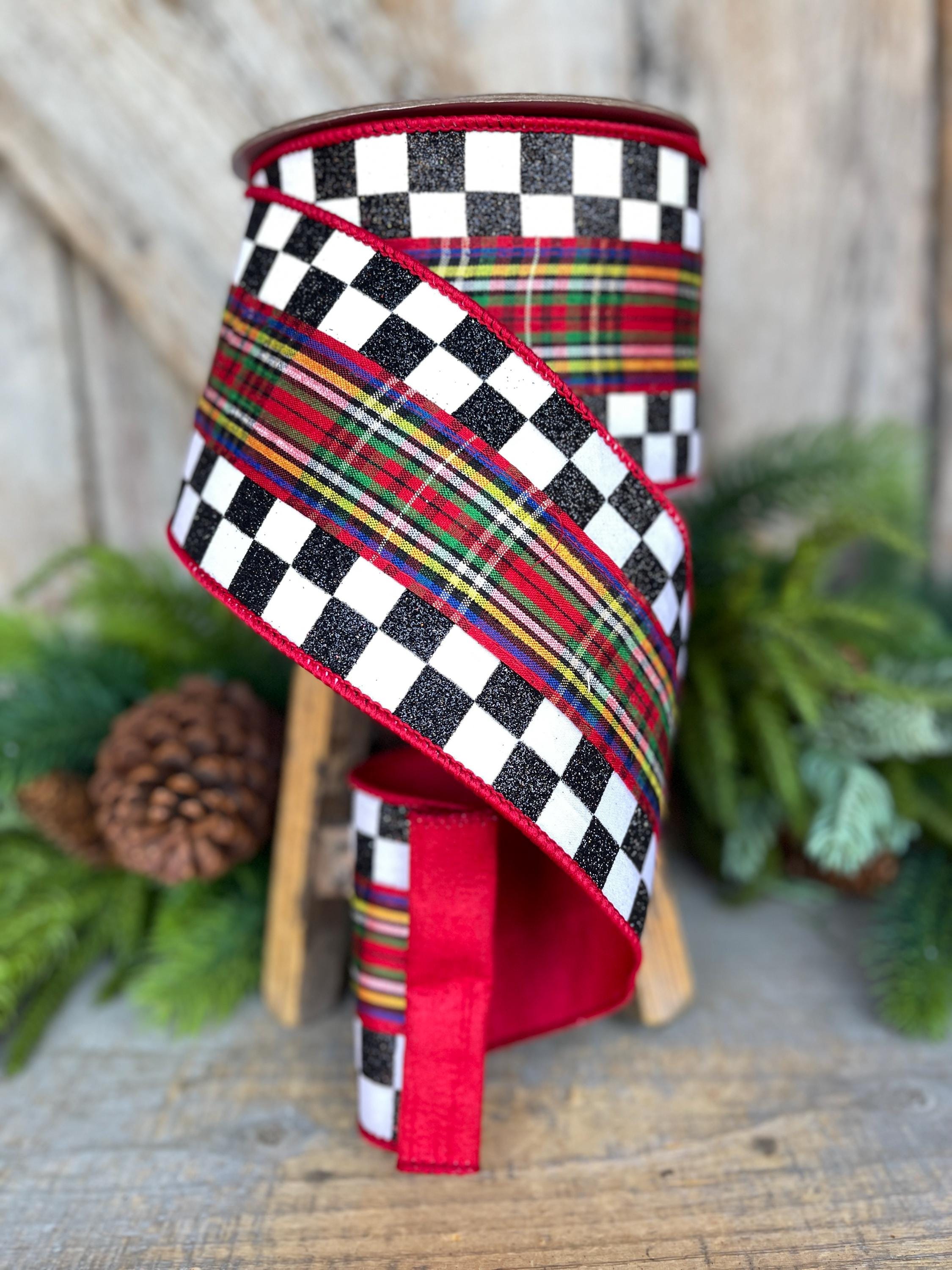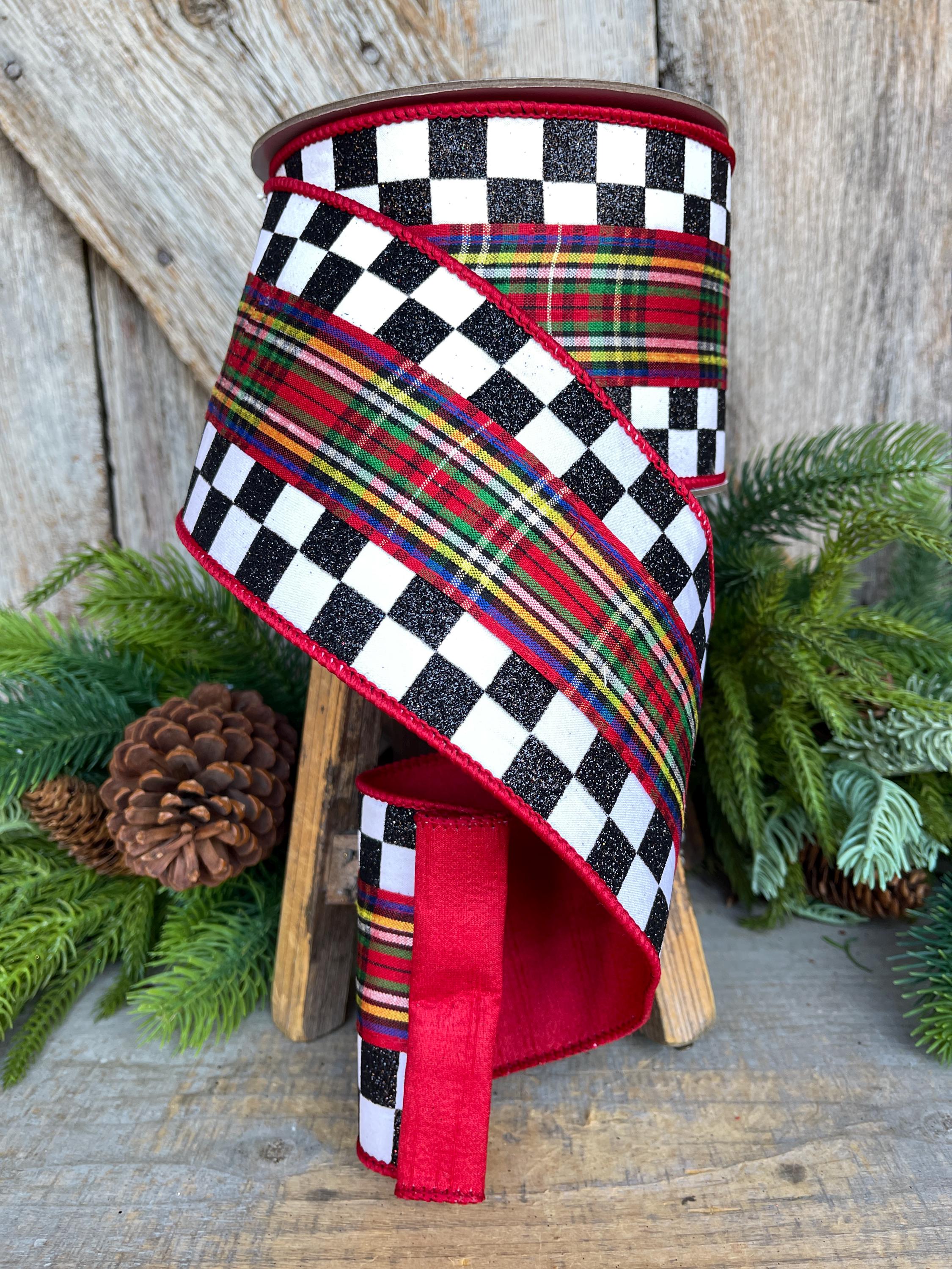4" Christmas Checks and Plaid Ribbon, Farrisilk ribbon, 4 inch ribbon, Christmas Tree ribbon, wired ribbon, Christmas Tree RIbbon, Wired