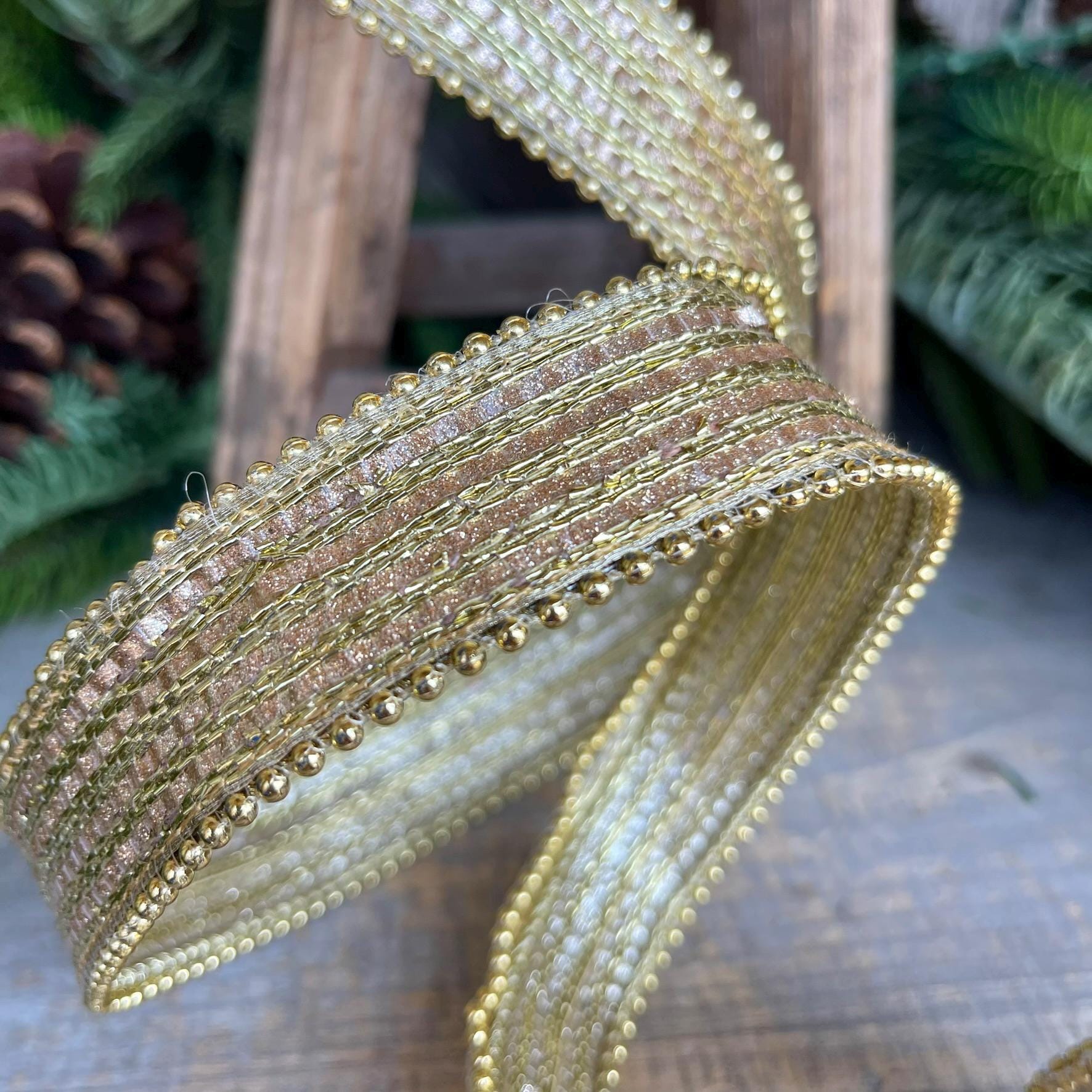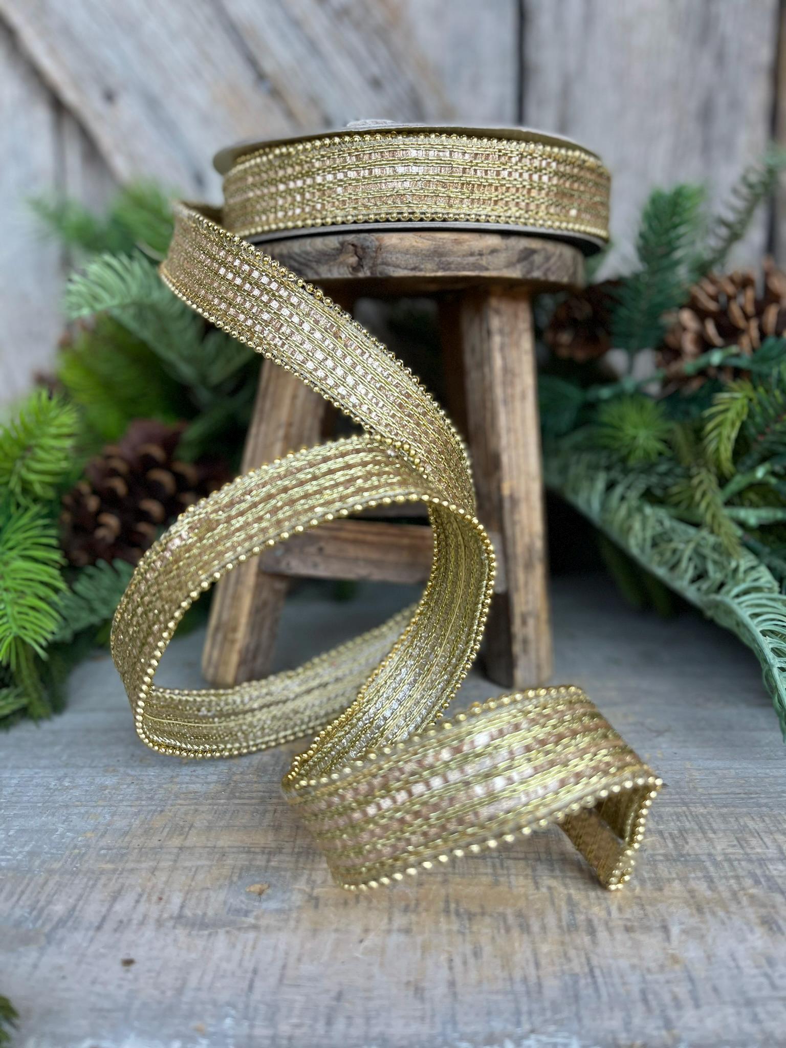 1" Gold Metallic Ribbon, Farrisilk Ribbon, Gold Metallic Jingle Ribbon, Christmas Ribbon, Designer Ribbon, Gold Trim, Christmas Tree