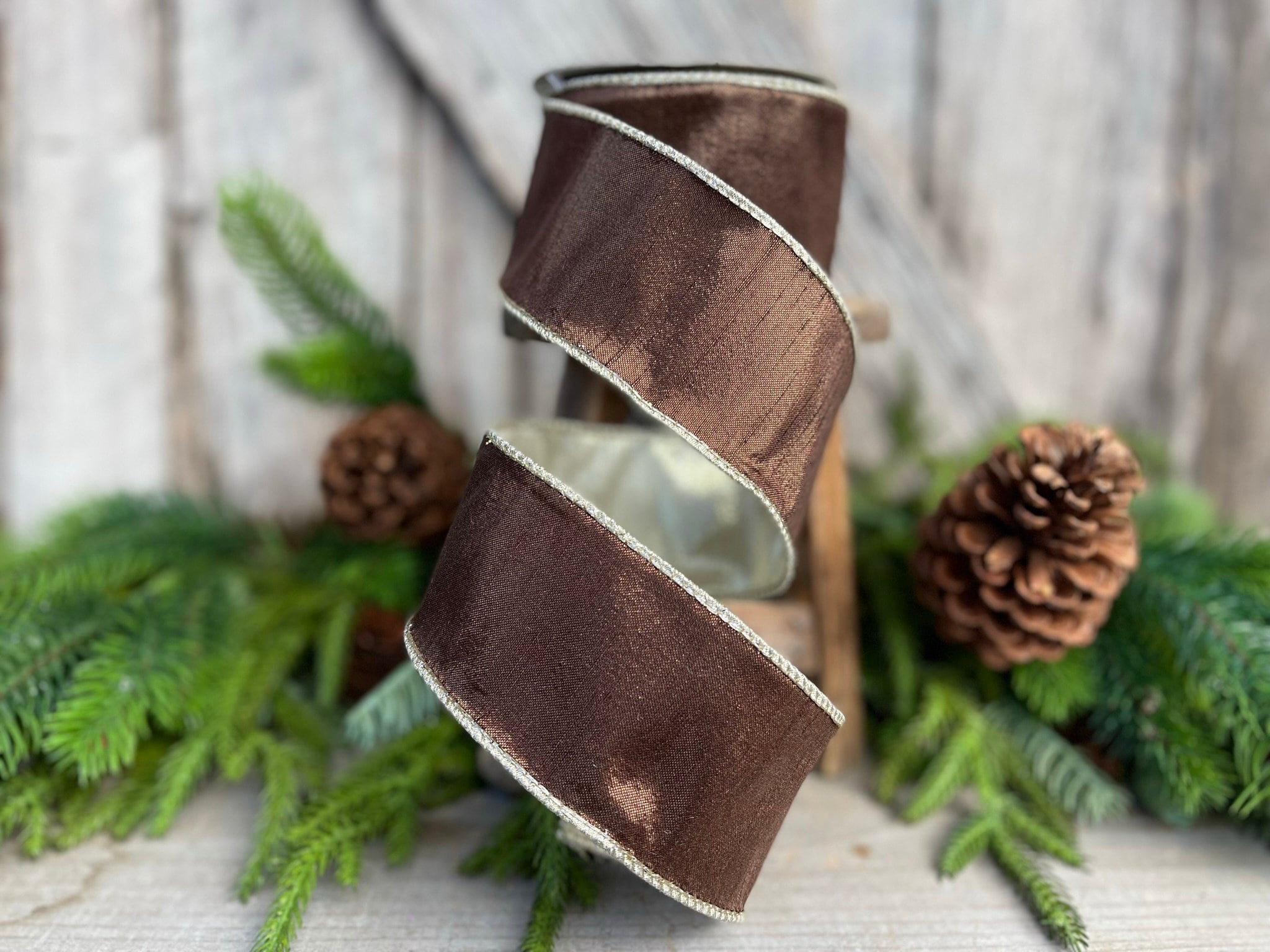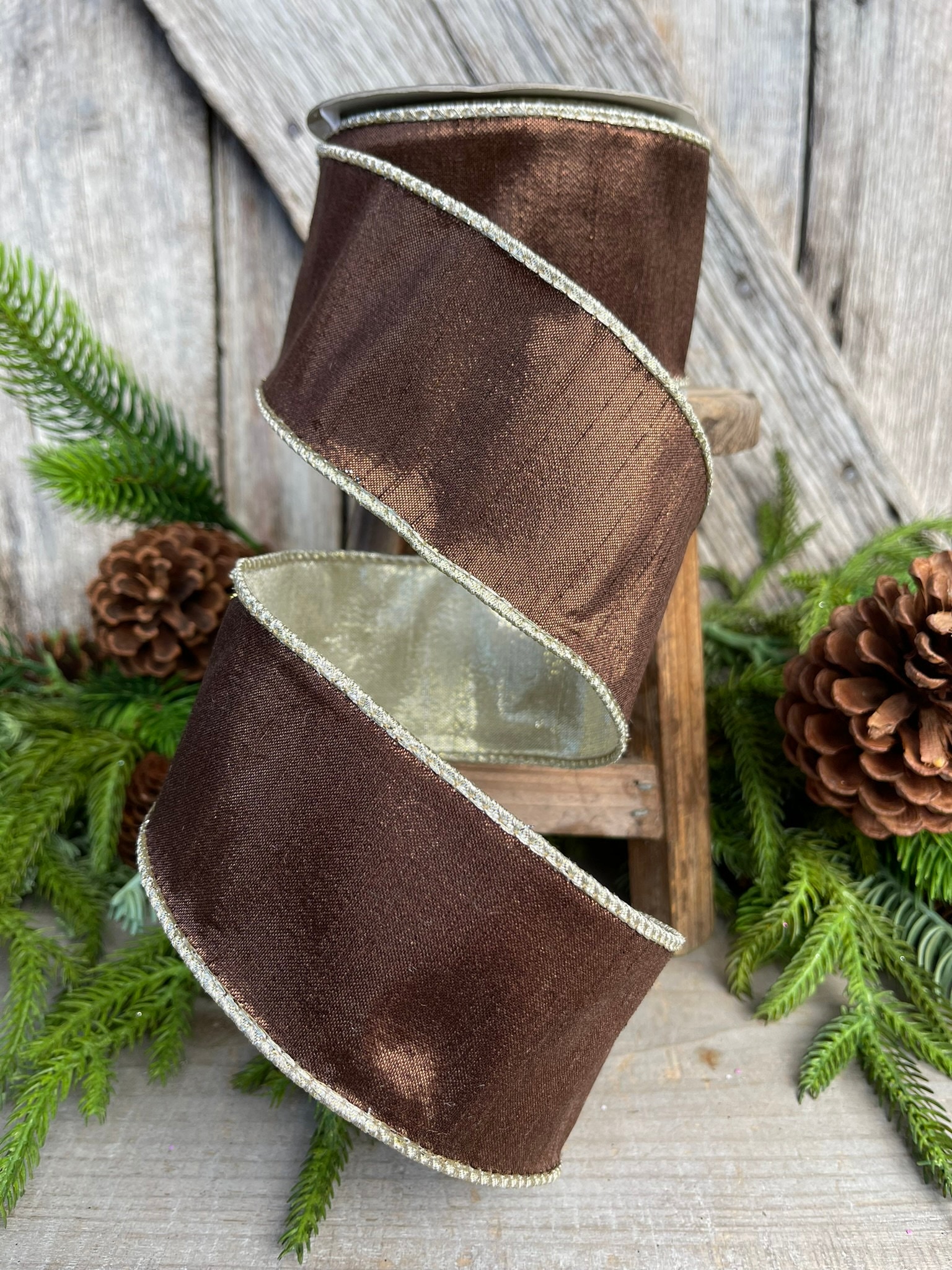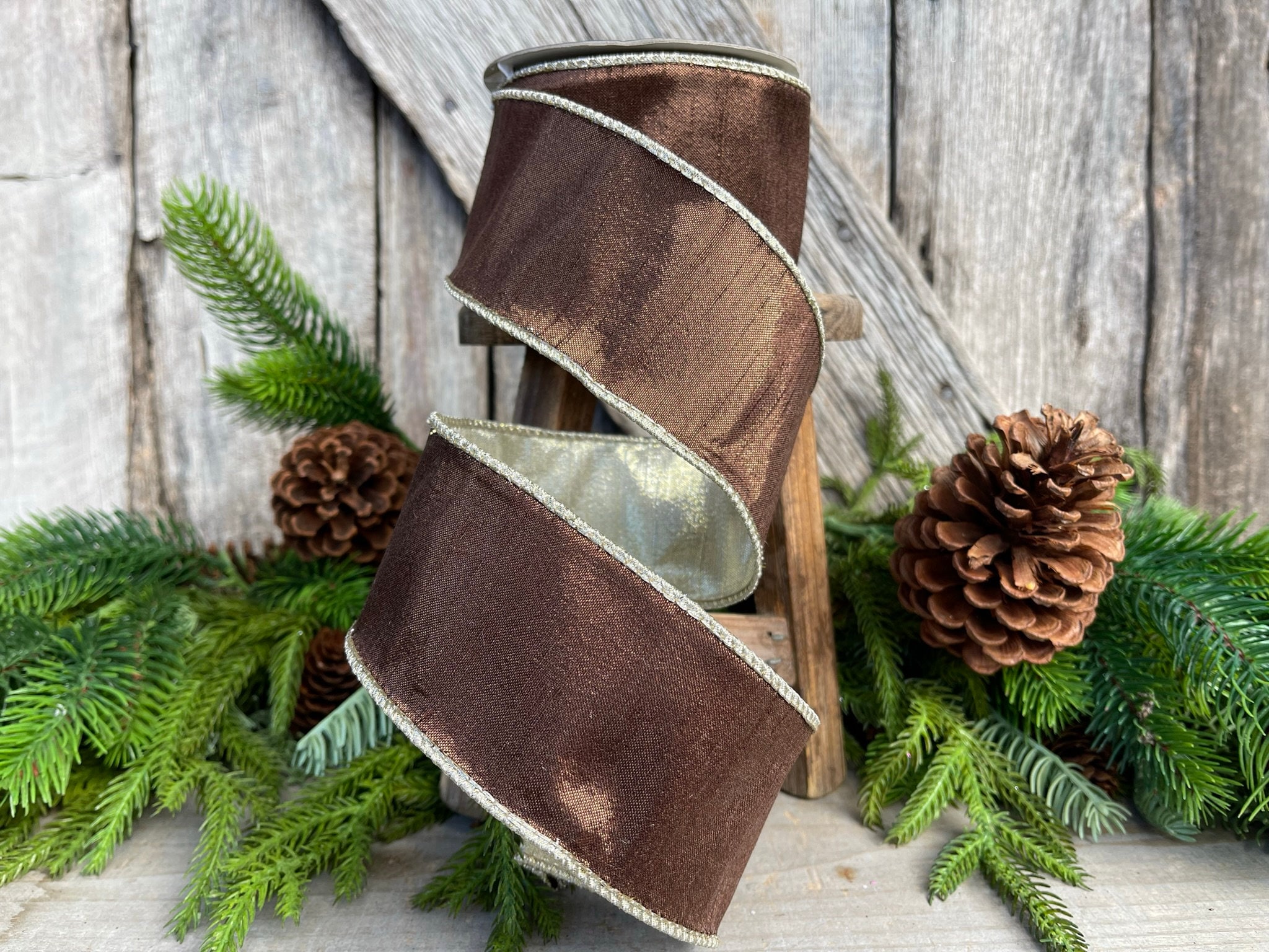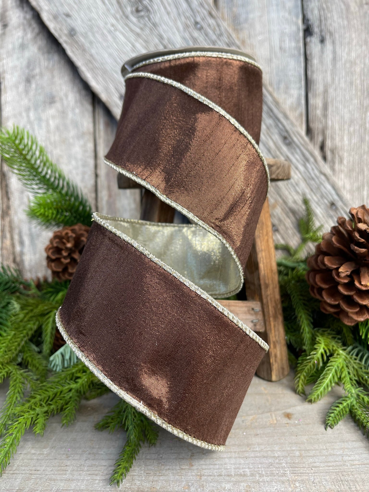 2.5” Bronze Platinum Luster Ribbon, Farrisilk ribbon, Fall ribbon, Christmas ribbon, wired ribbon, designer ribbon, wreath supply, crafts