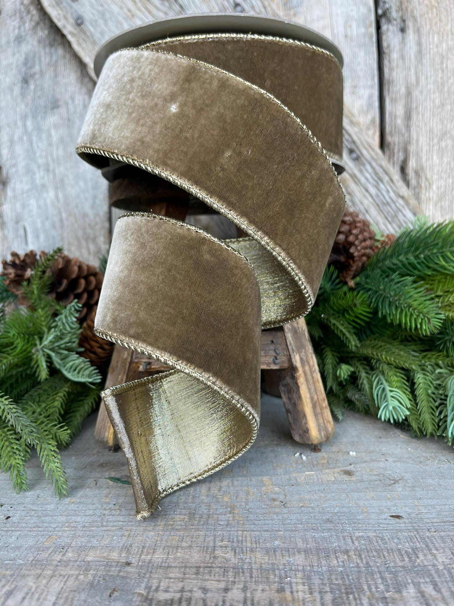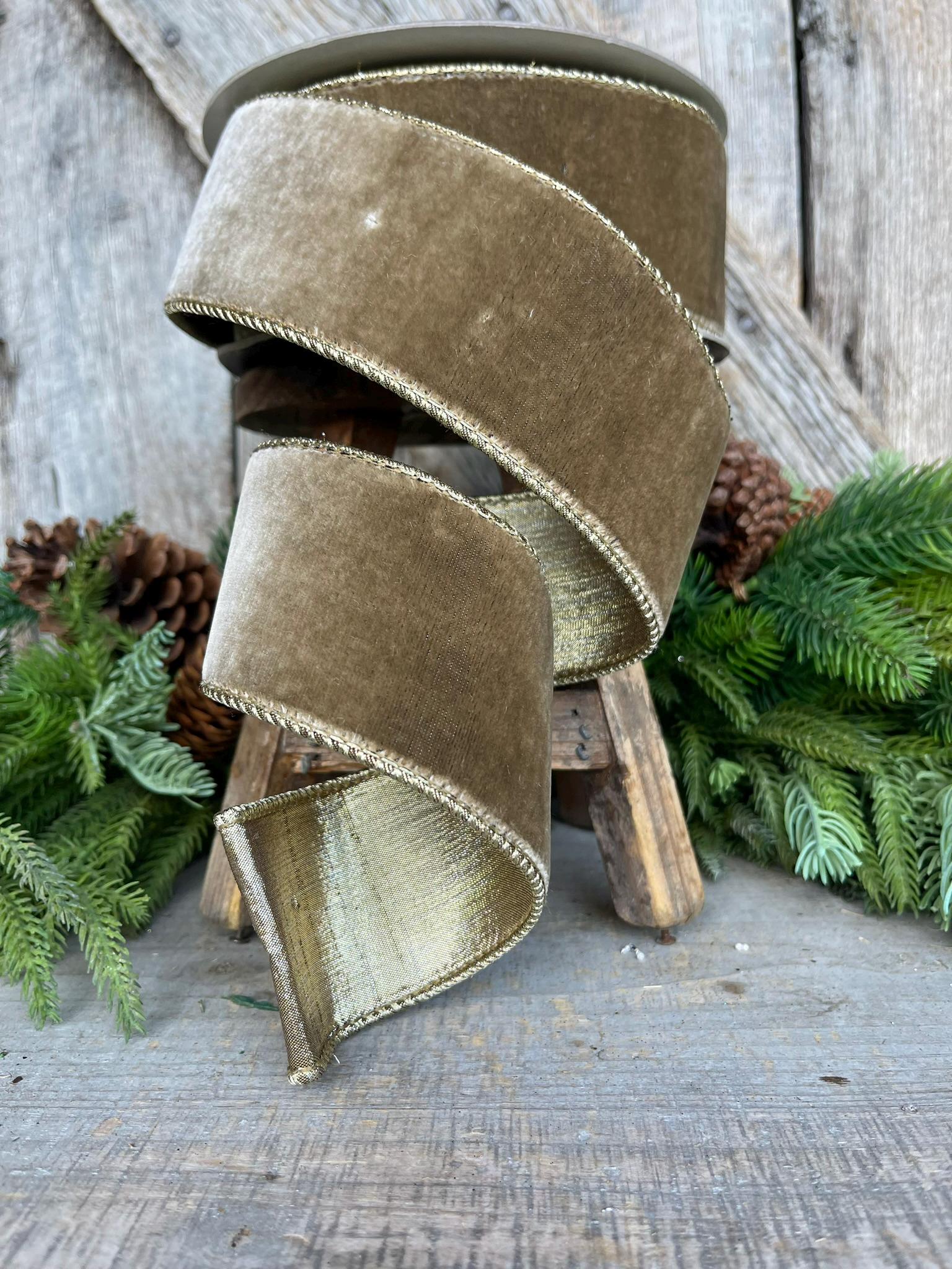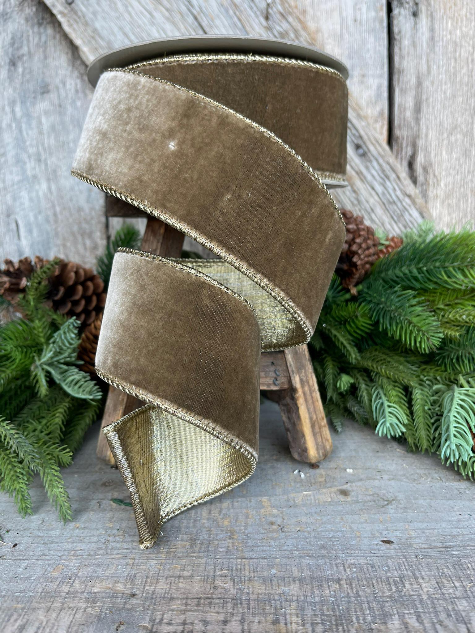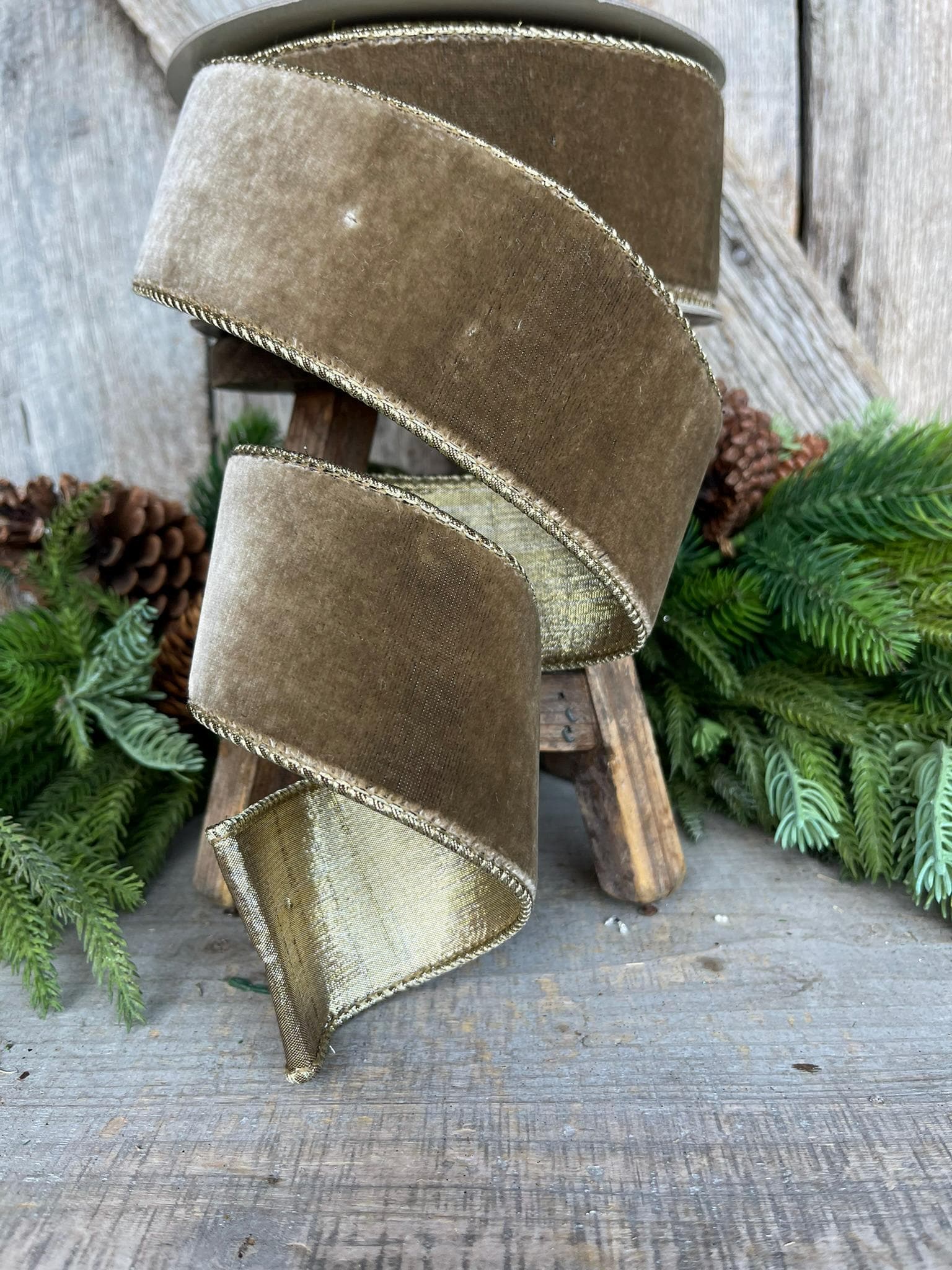 Features a lush mink colored velvet. Ribbon is constructed with thick, wired edge and is fused with a secondary fabric to provide shape and structure.