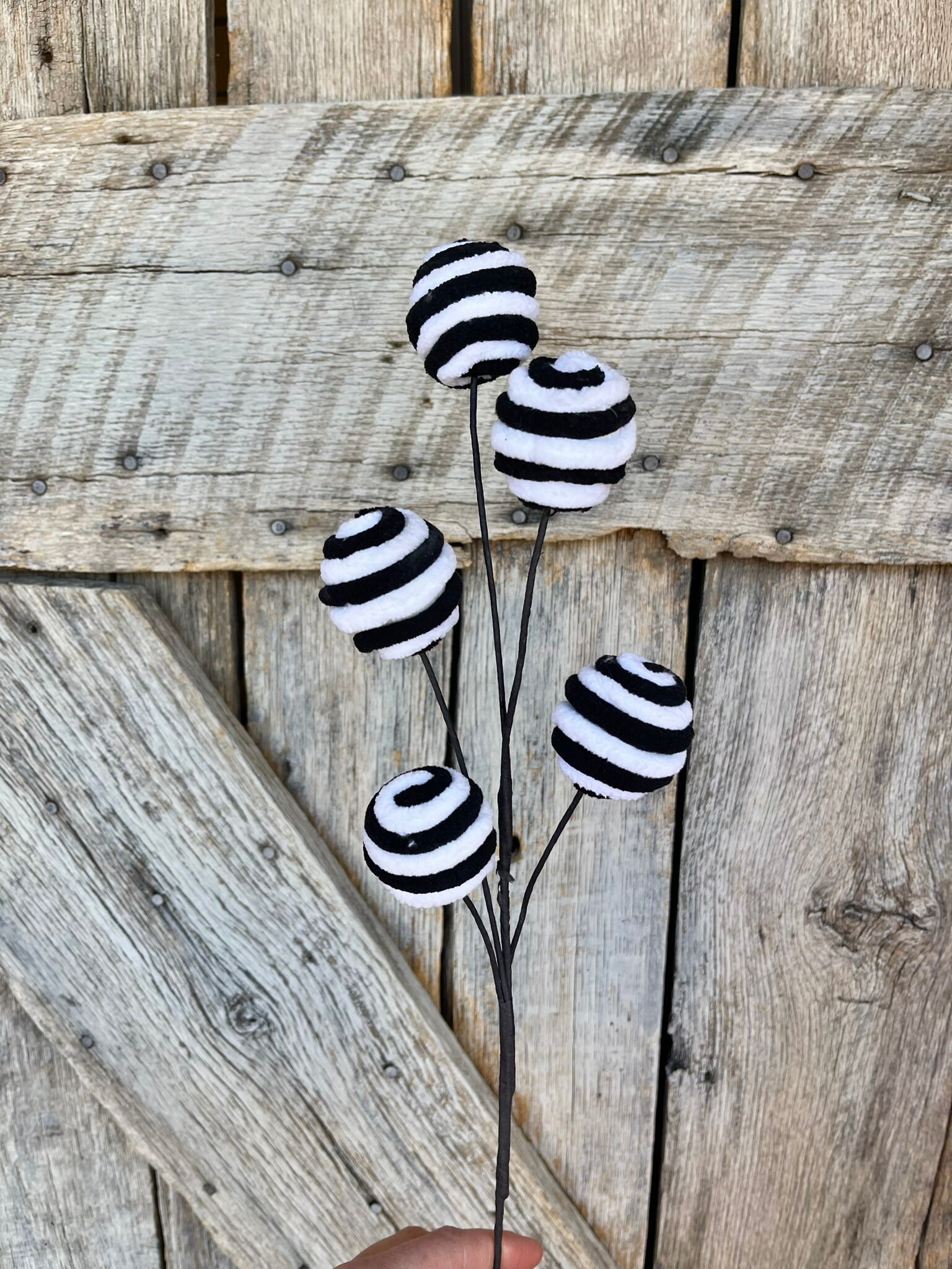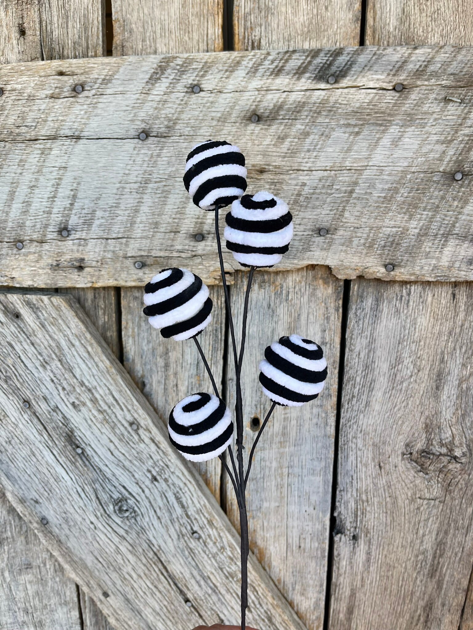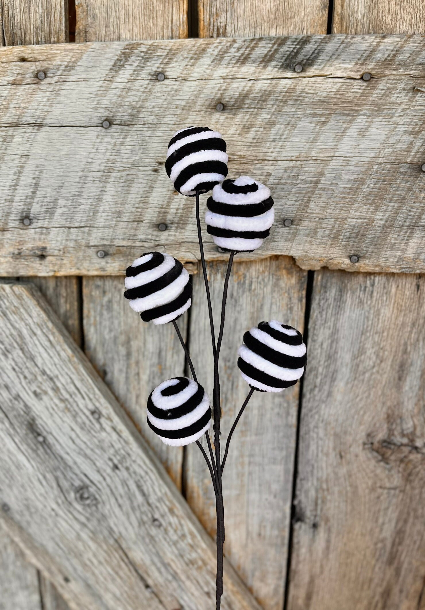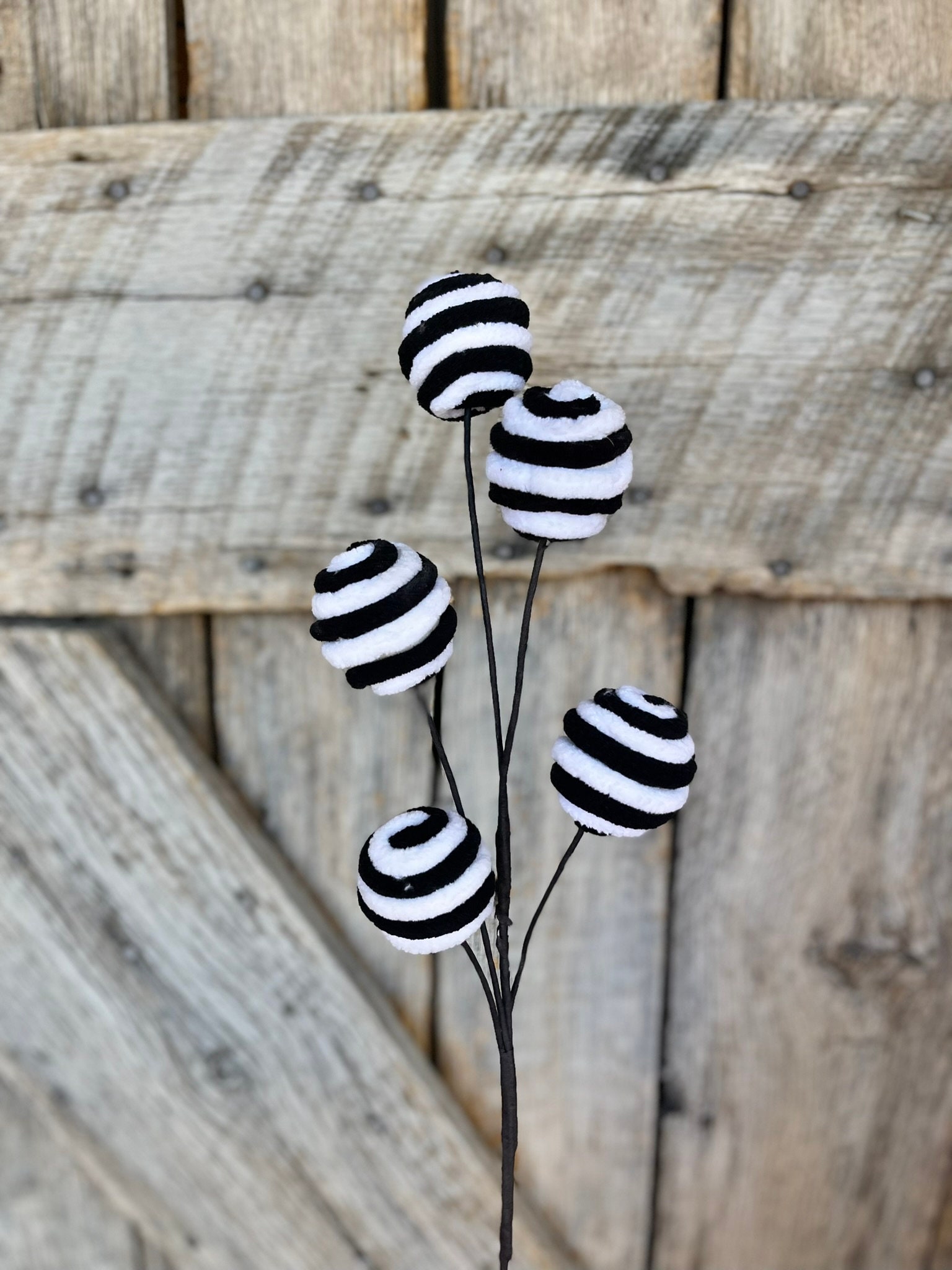 18" Black White Ball Spray, Halloween, Black White Ball Pick Spray, Wreath Supply, Craft Supply, Floral Pick, Black White Spray, 84637BKWT