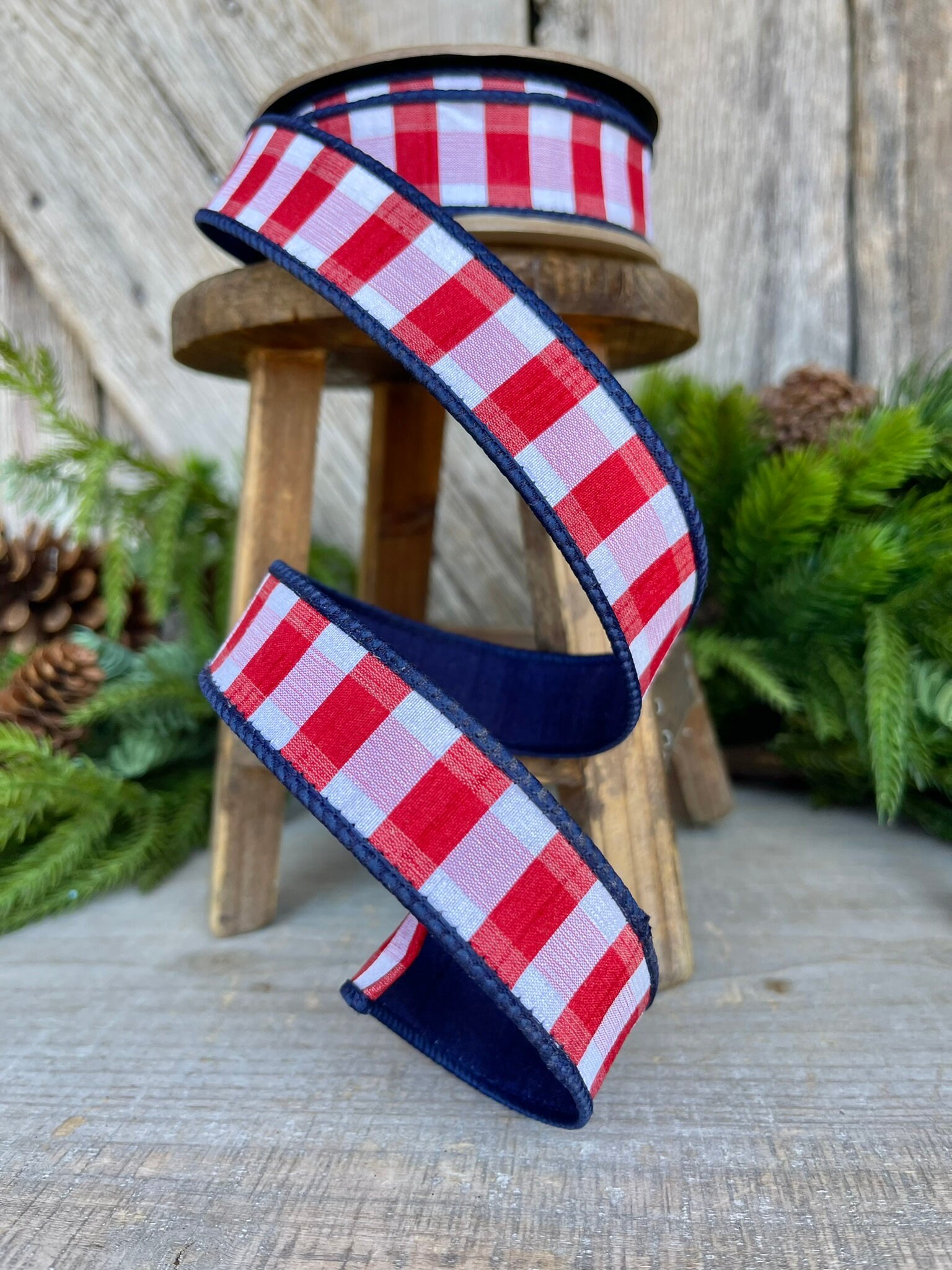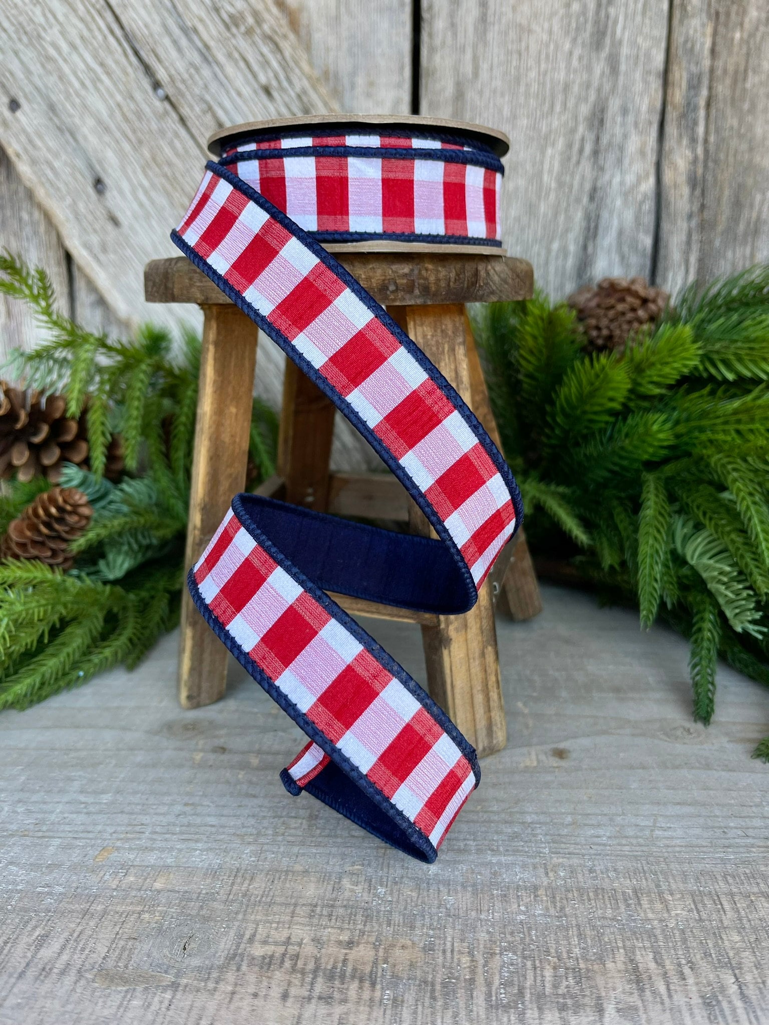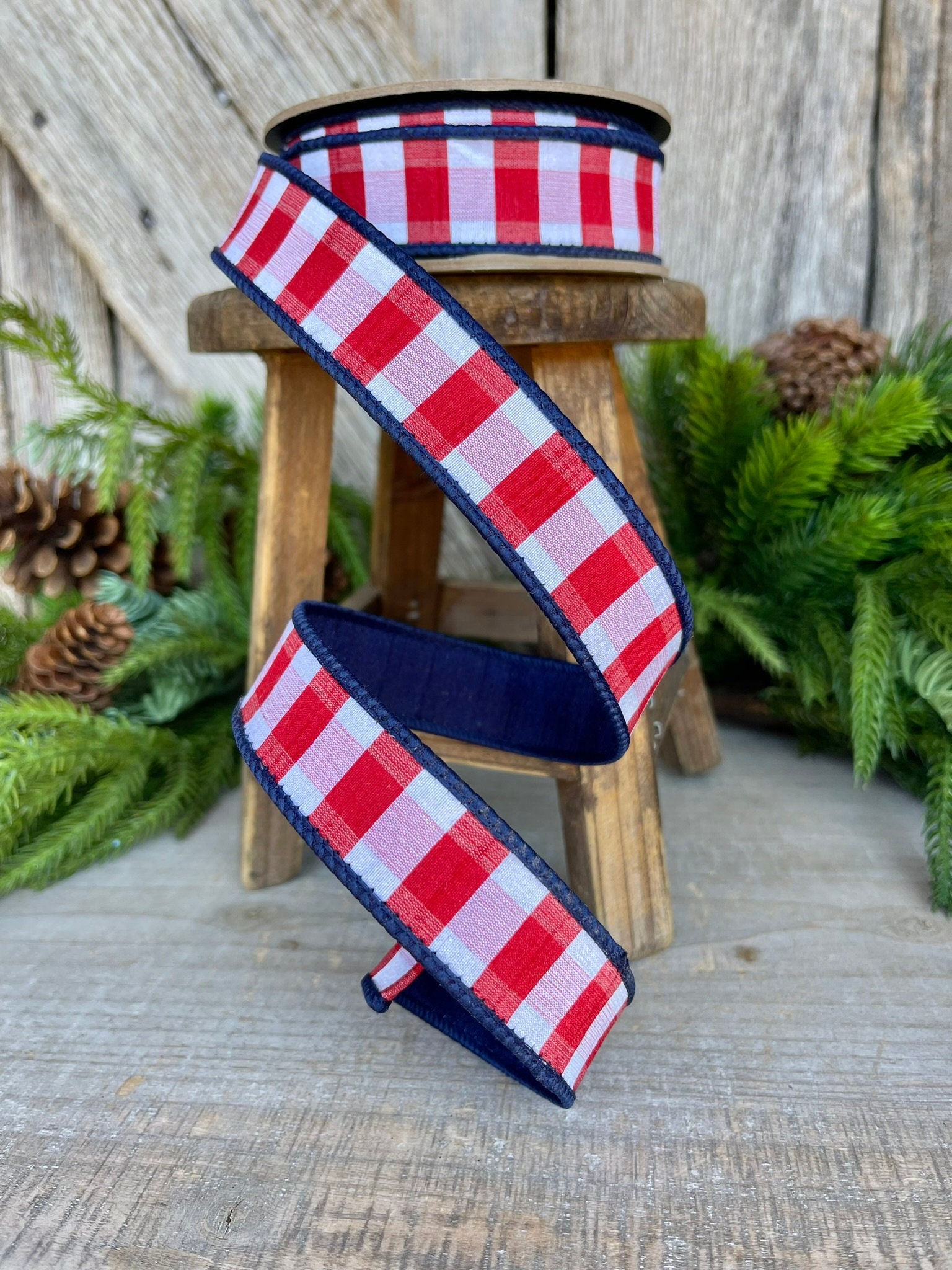 1" Patriotic Ribbon, D Stevens Ribbon, Red white blue check ribbon, Wreath Supply, Designer Ribbon, Red White Ribbon, 07-1818, 4th of July