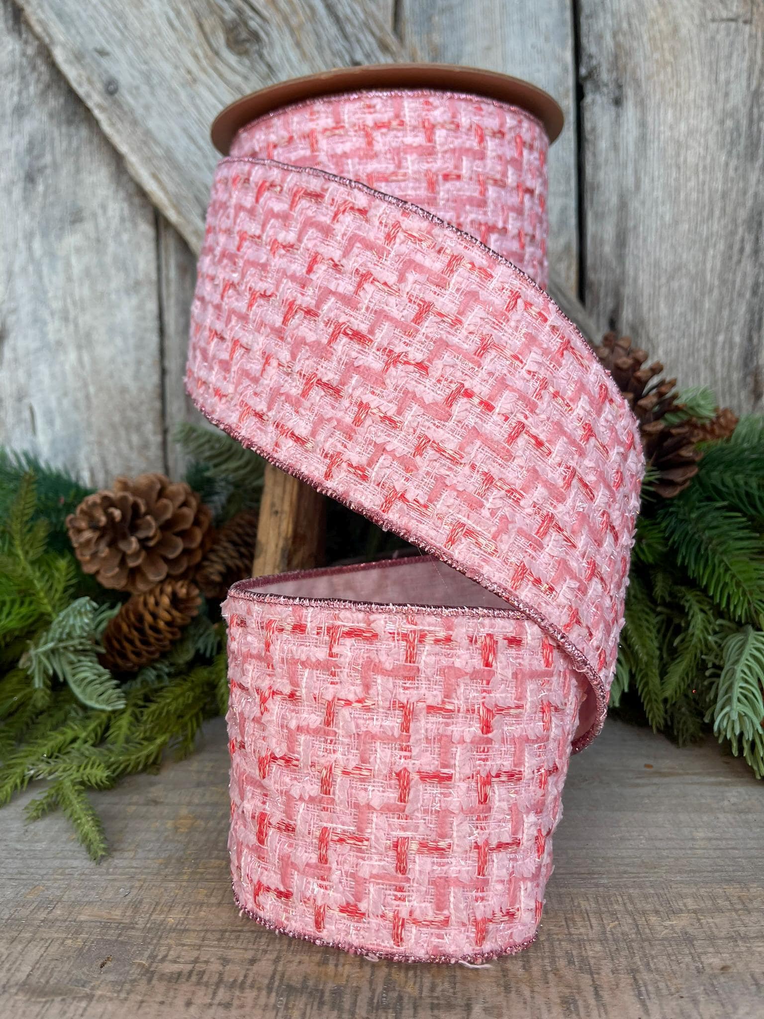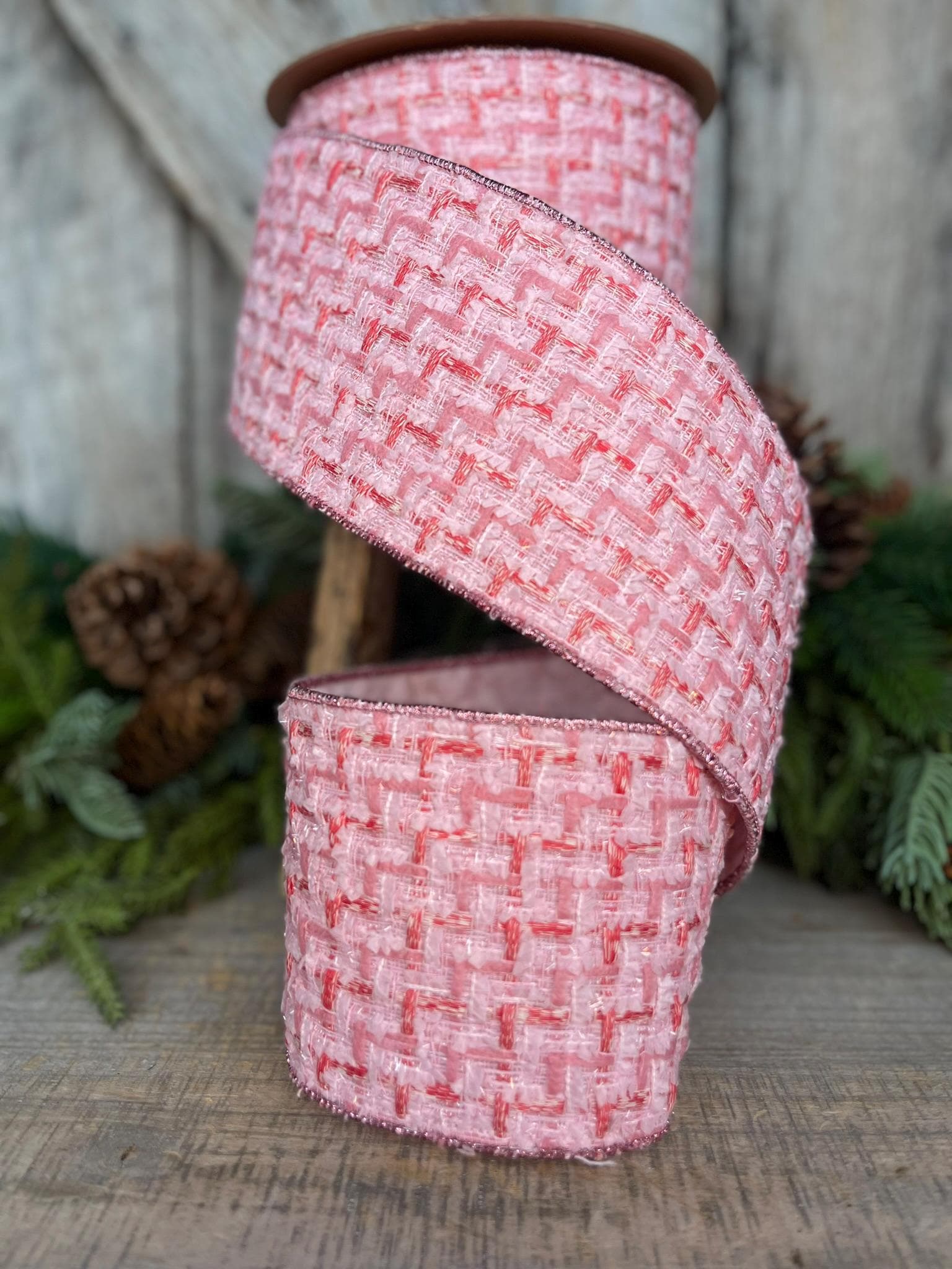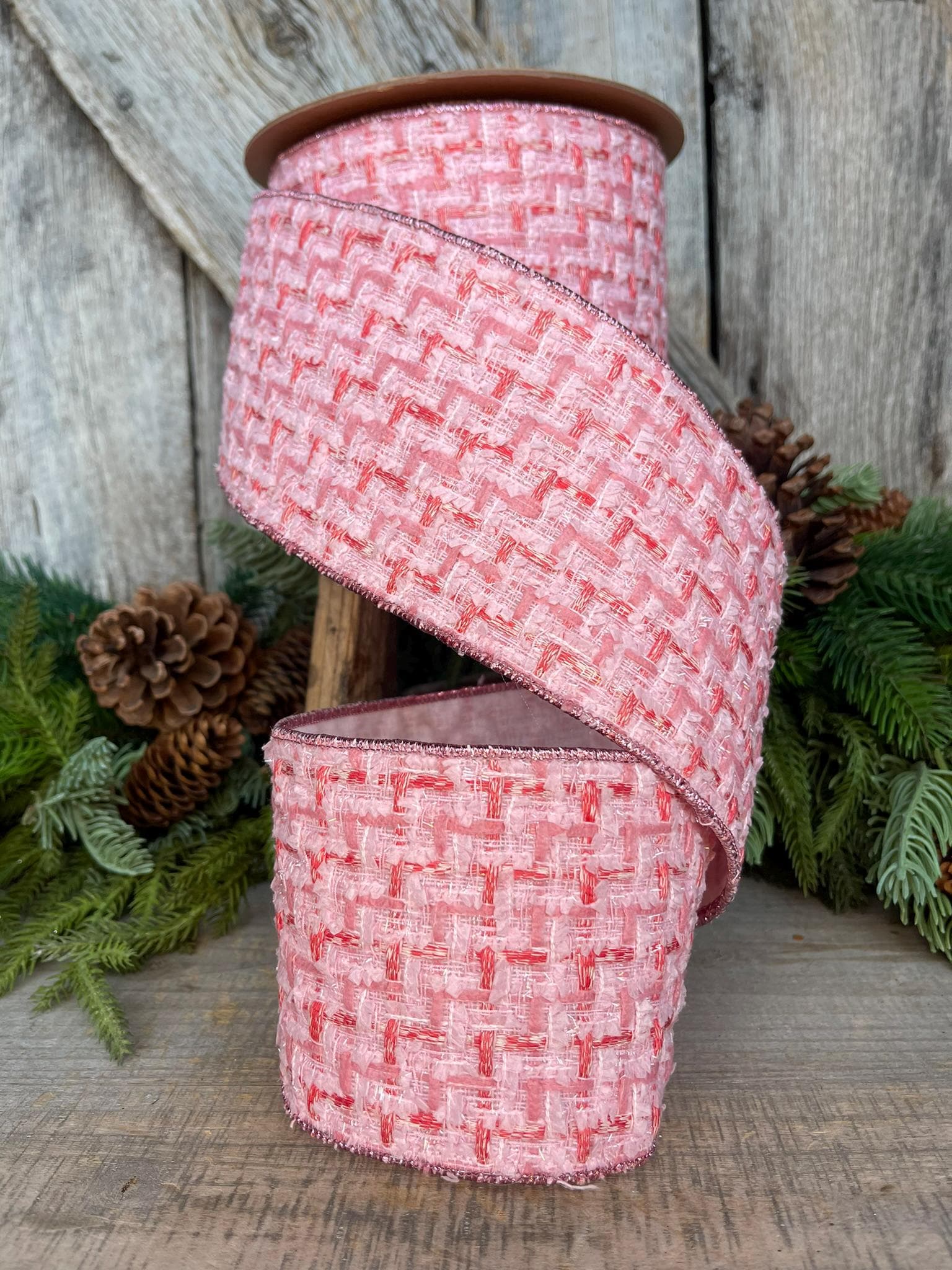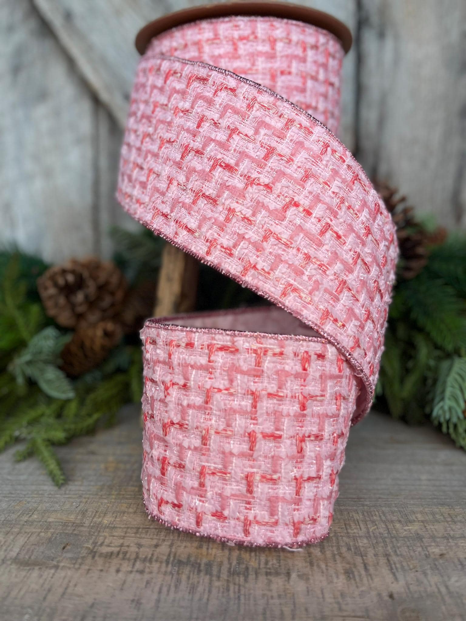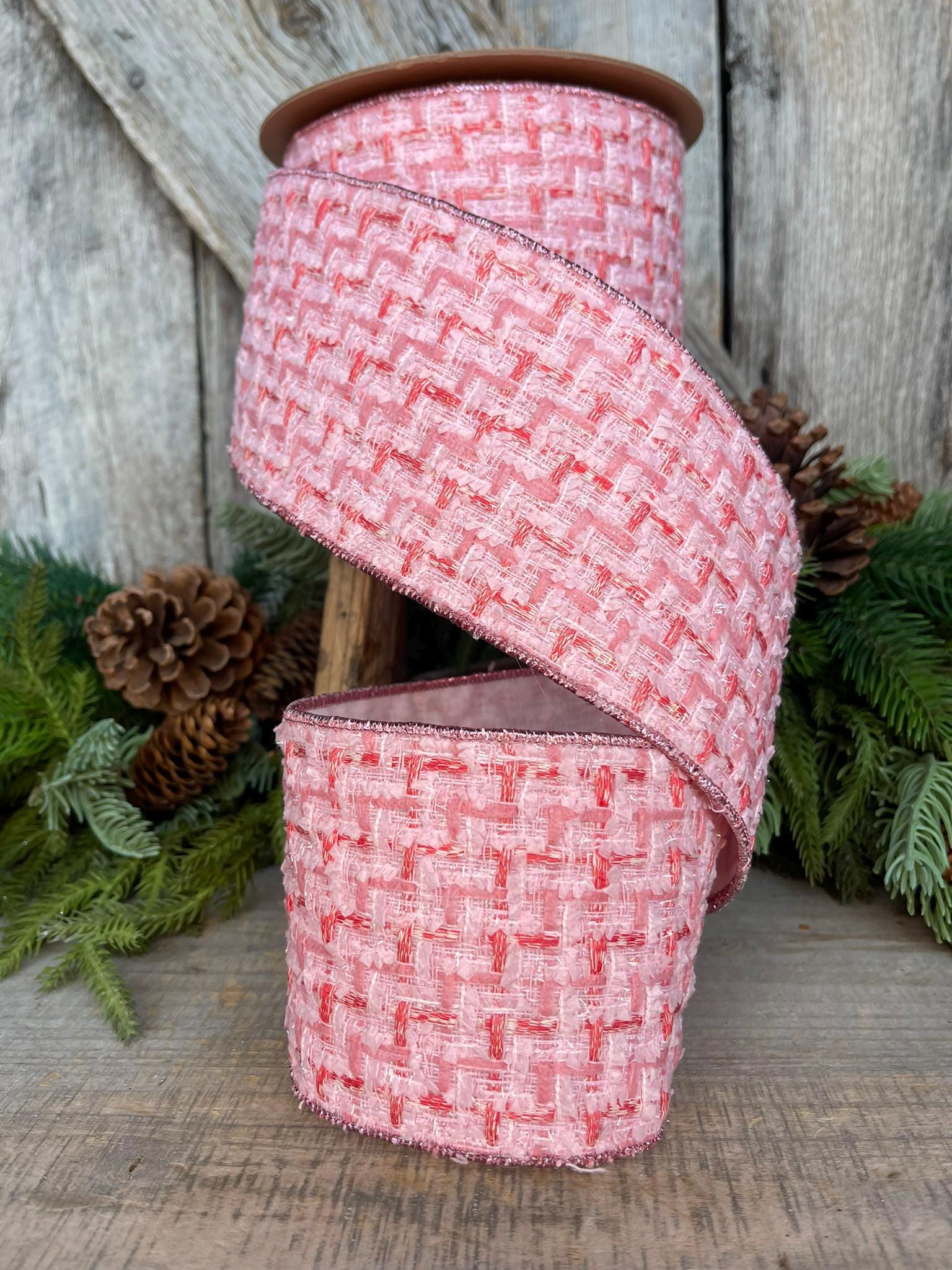 4" Pink Tweed Ribbon, Pink Christmas Ribbon, Designer Ribbon, Pink Christmas Tree Ribbon, Pink Tweed Design Inspired RIbbon