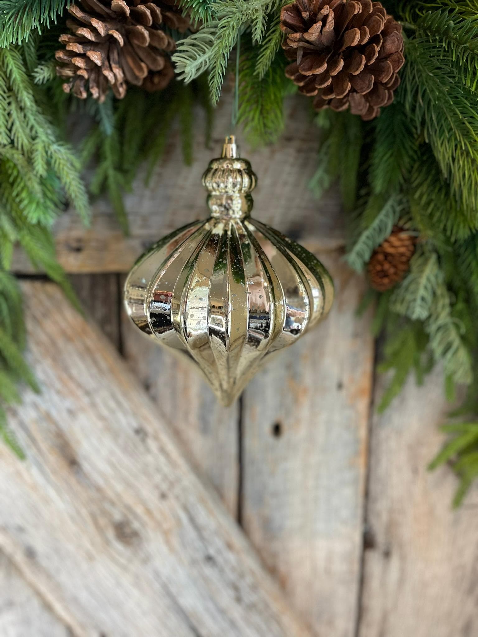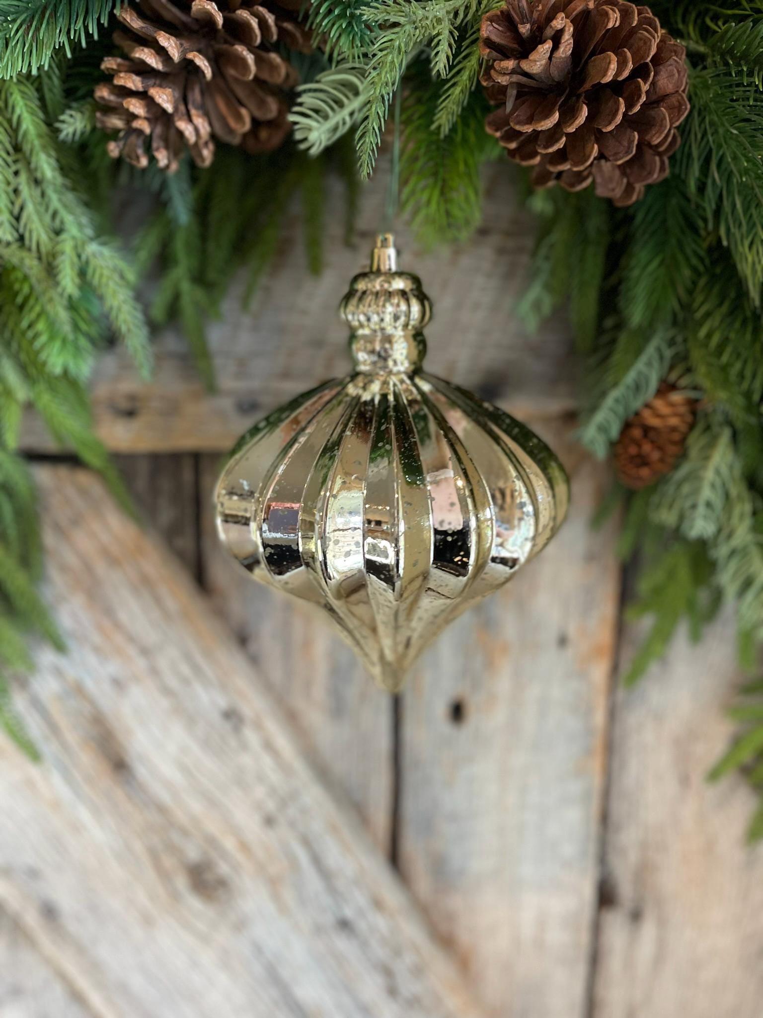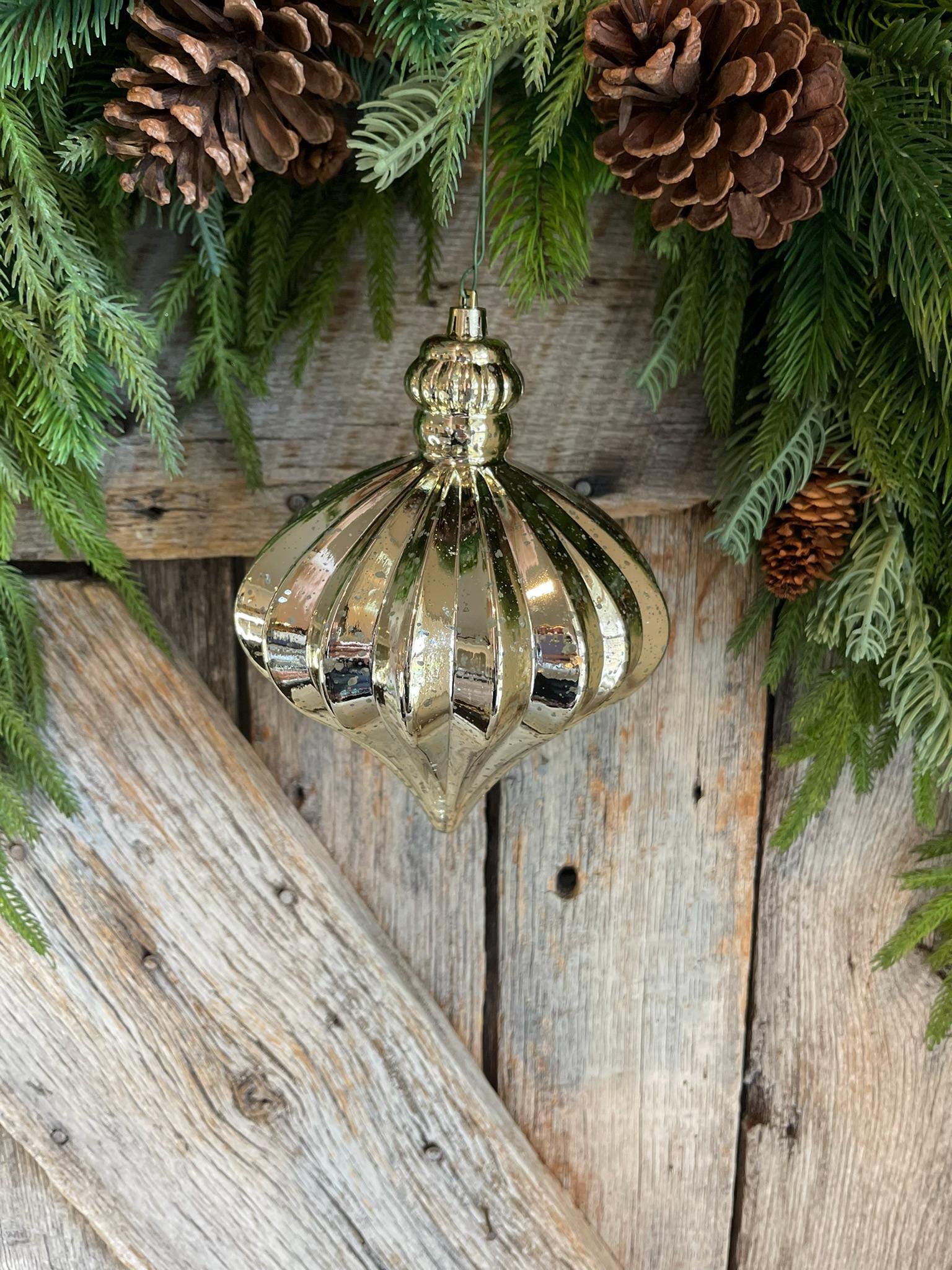 7" Gold Shatterproof Ornament, Gold Ornaments, Finial Ornaments, Onion Shape, Christmas Ornaments