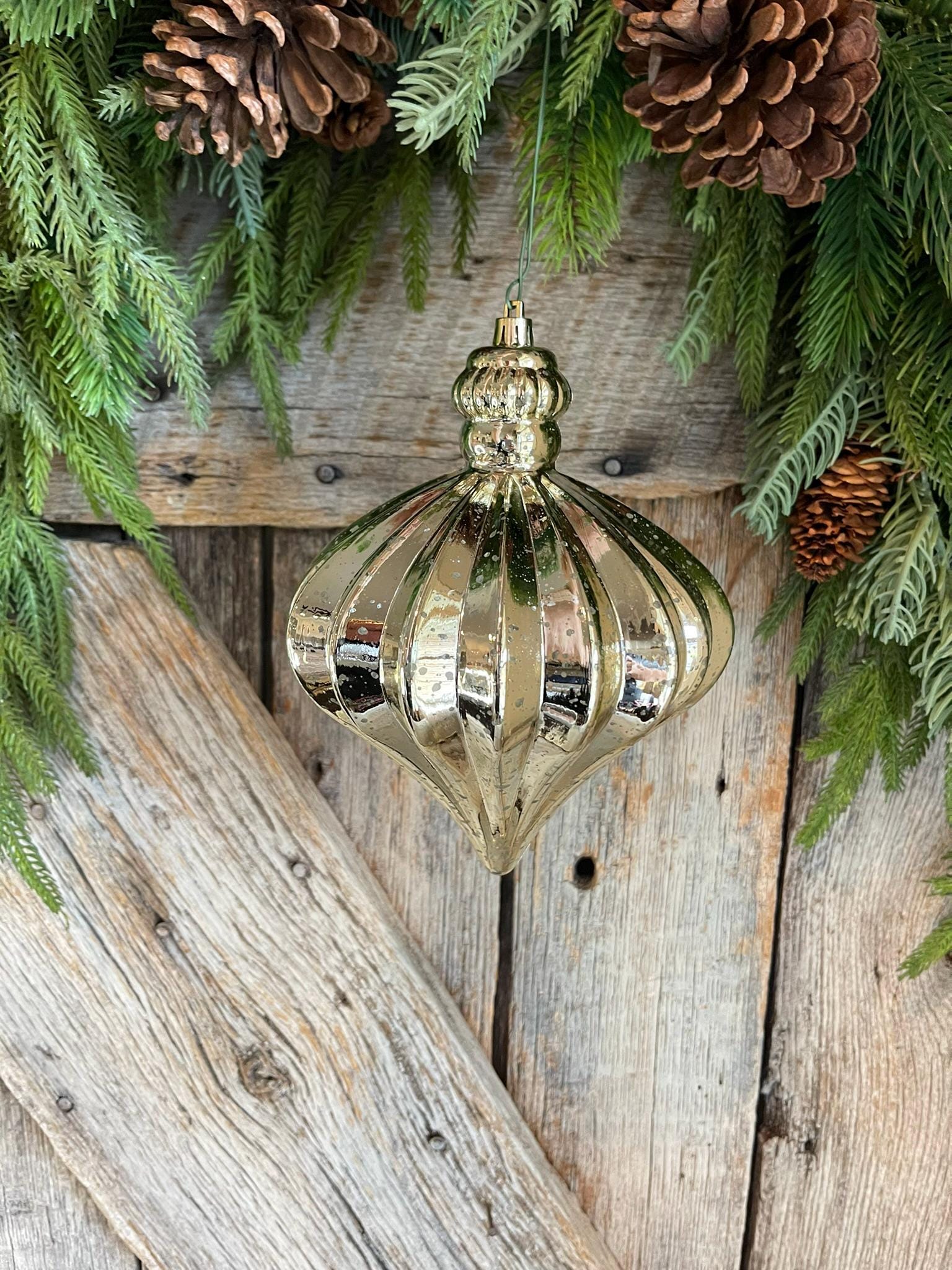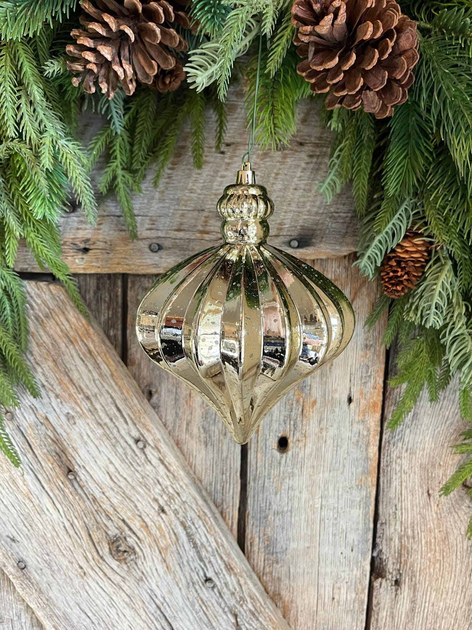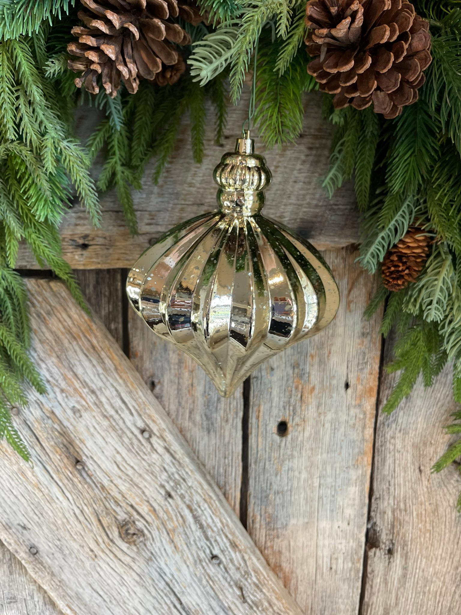 7" Gold Shatterproof Ornament, Gold Ornaments, Finial Ornaments, Onion Shape, Christmas Ornaments