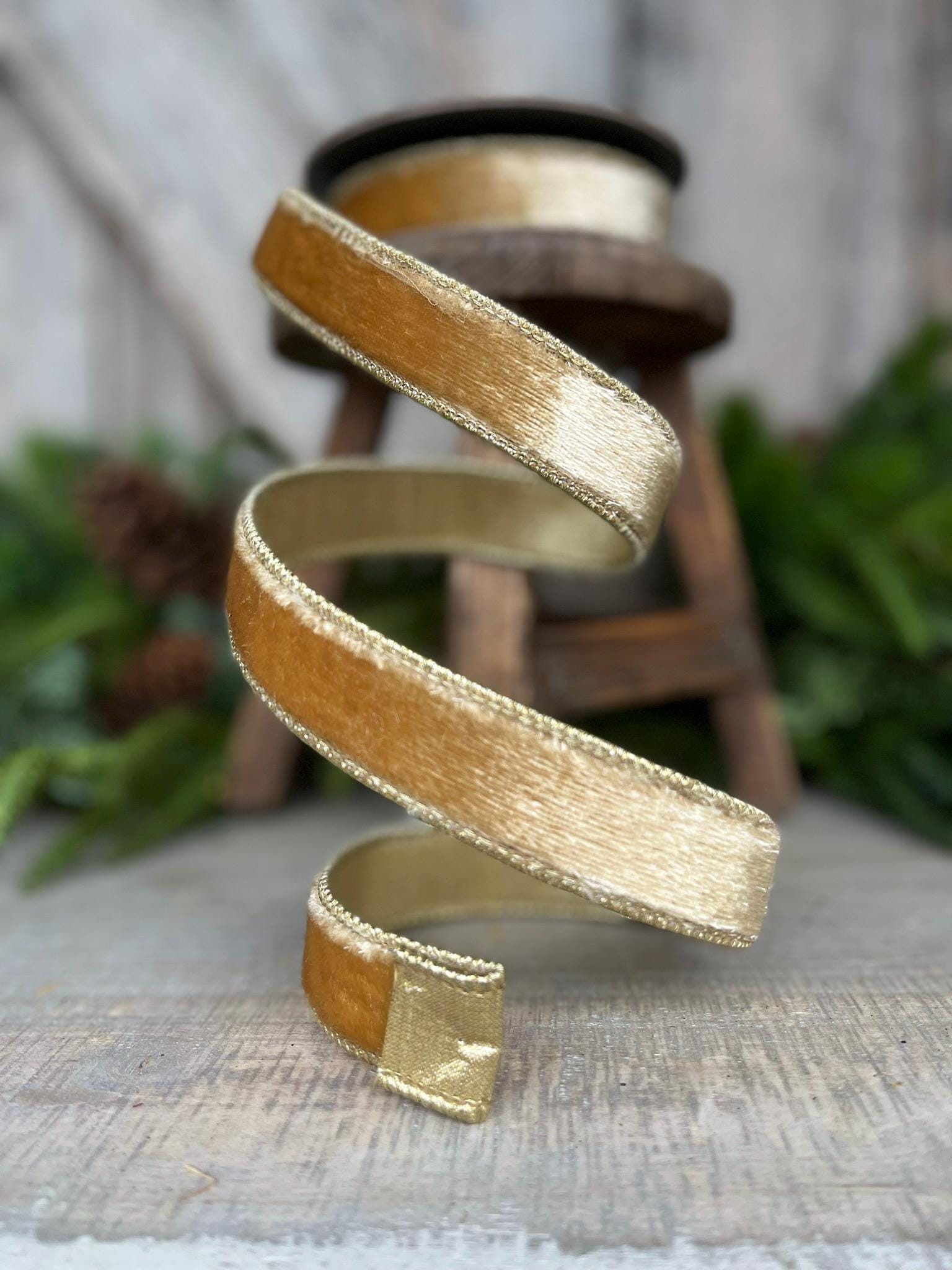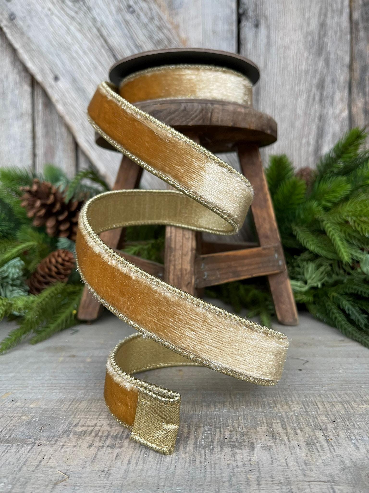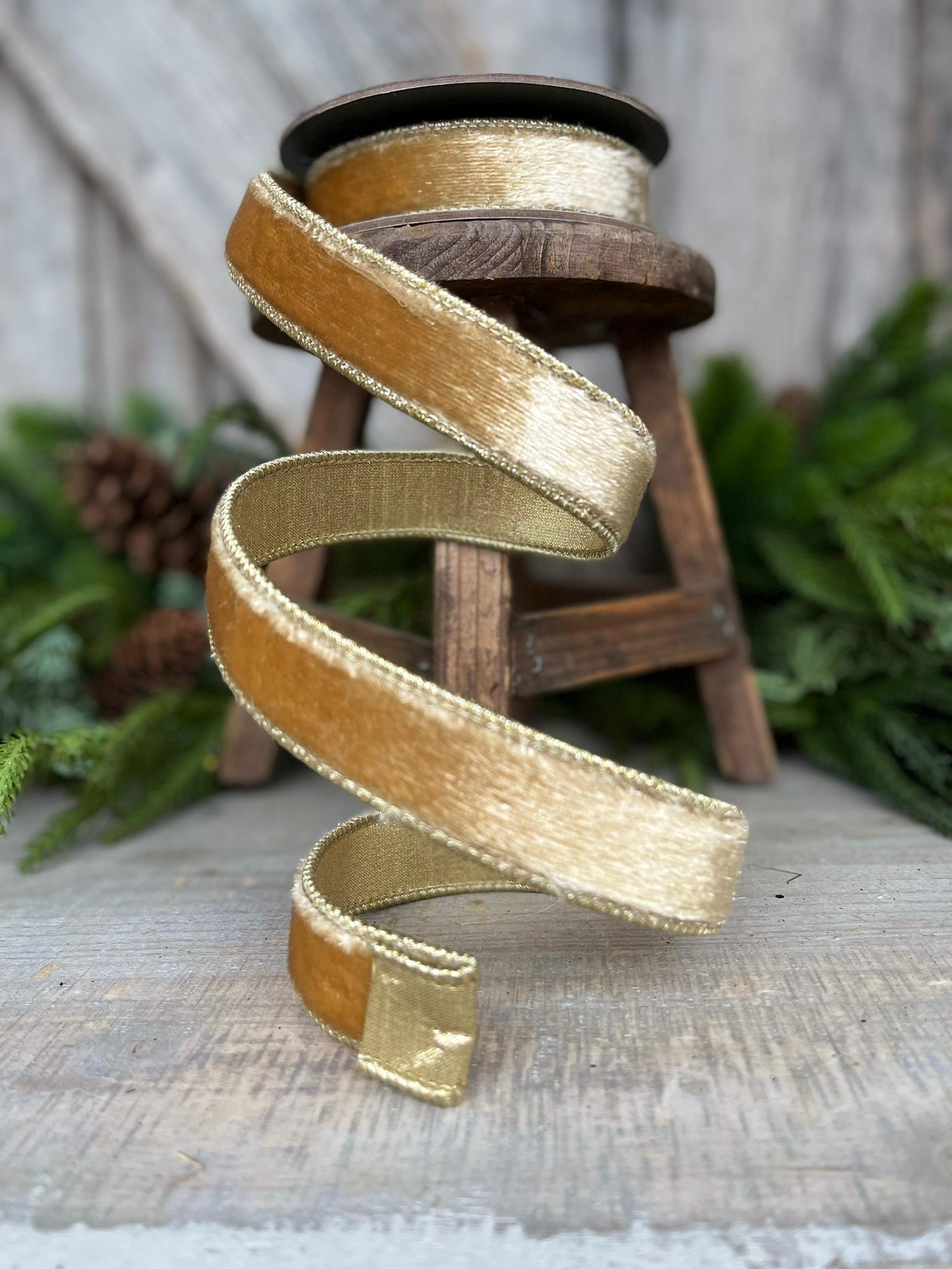 1" Gold velvet Ribbon, Champagne Gold ribbon, Gold ribbon, Christmas Ribbon, Velvet Ribbon, Narrow Ribbon, Gold Christmas Decor