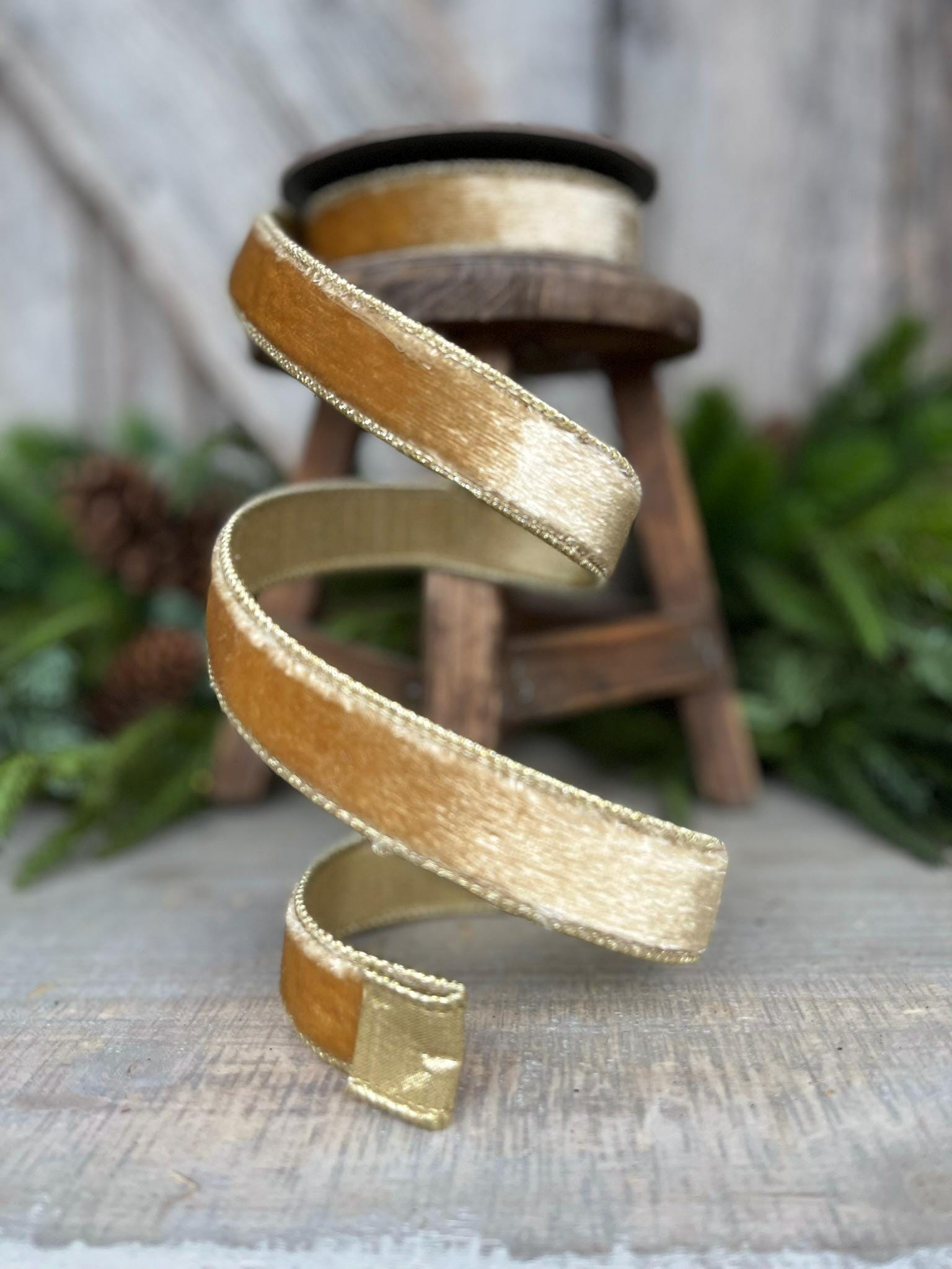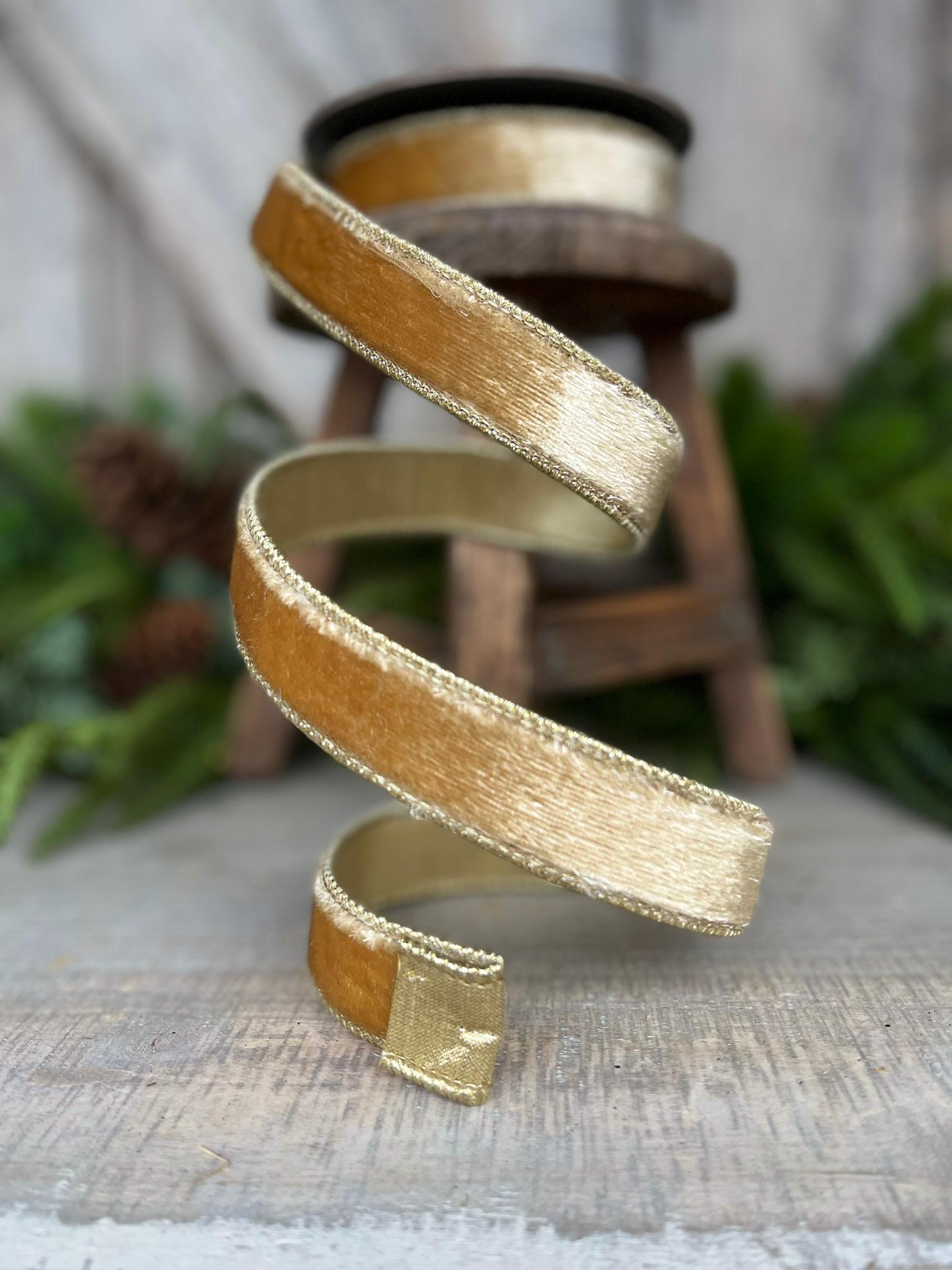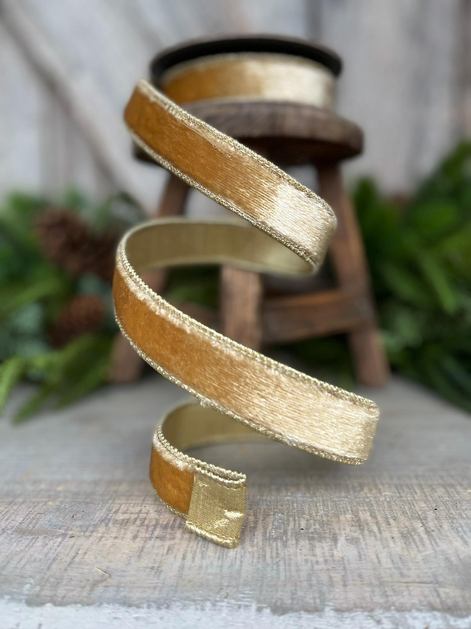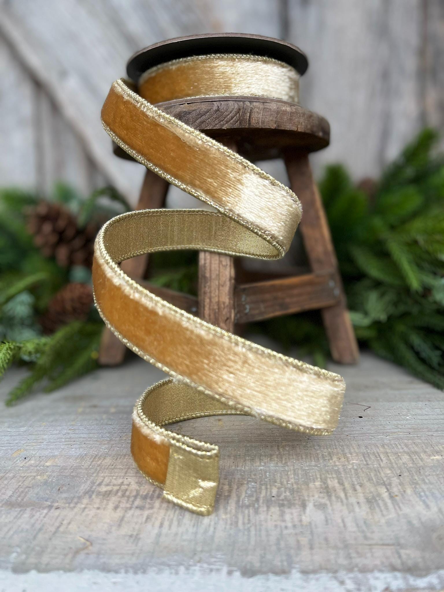 1" Gold velvet Ribbon, Champagne Gold ribbon, Gold ribbon, Christmas Ribbon, Velvet Ribbon, Narrow Ribbon, Gold Christmas Decor