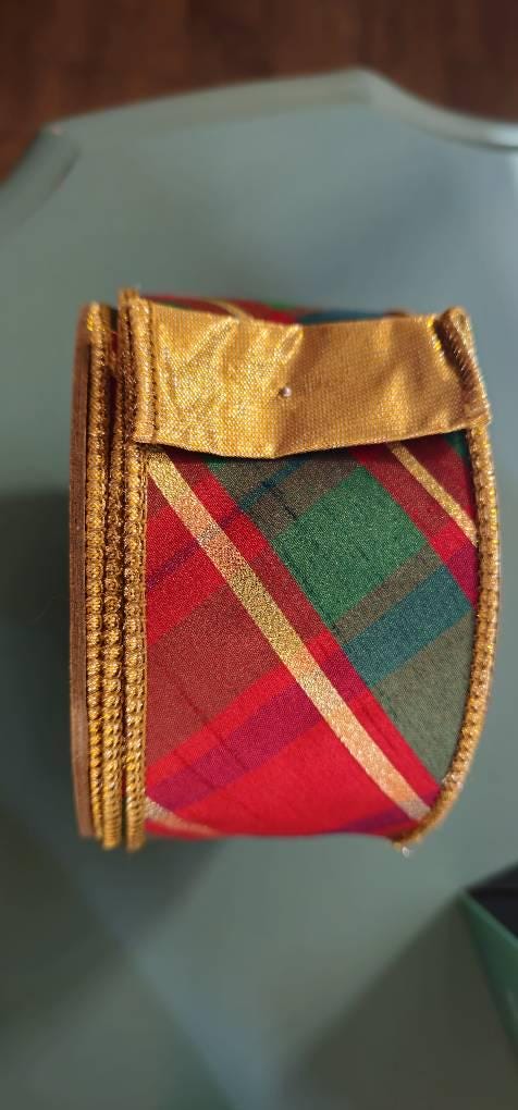 2.5" Christmas Plaid Ribbon, Red Green Gold Plaid Ribbon, Traditional Christmas Ribbon, Wired RIbbon, Classic Christmas Plaid Ribbon
