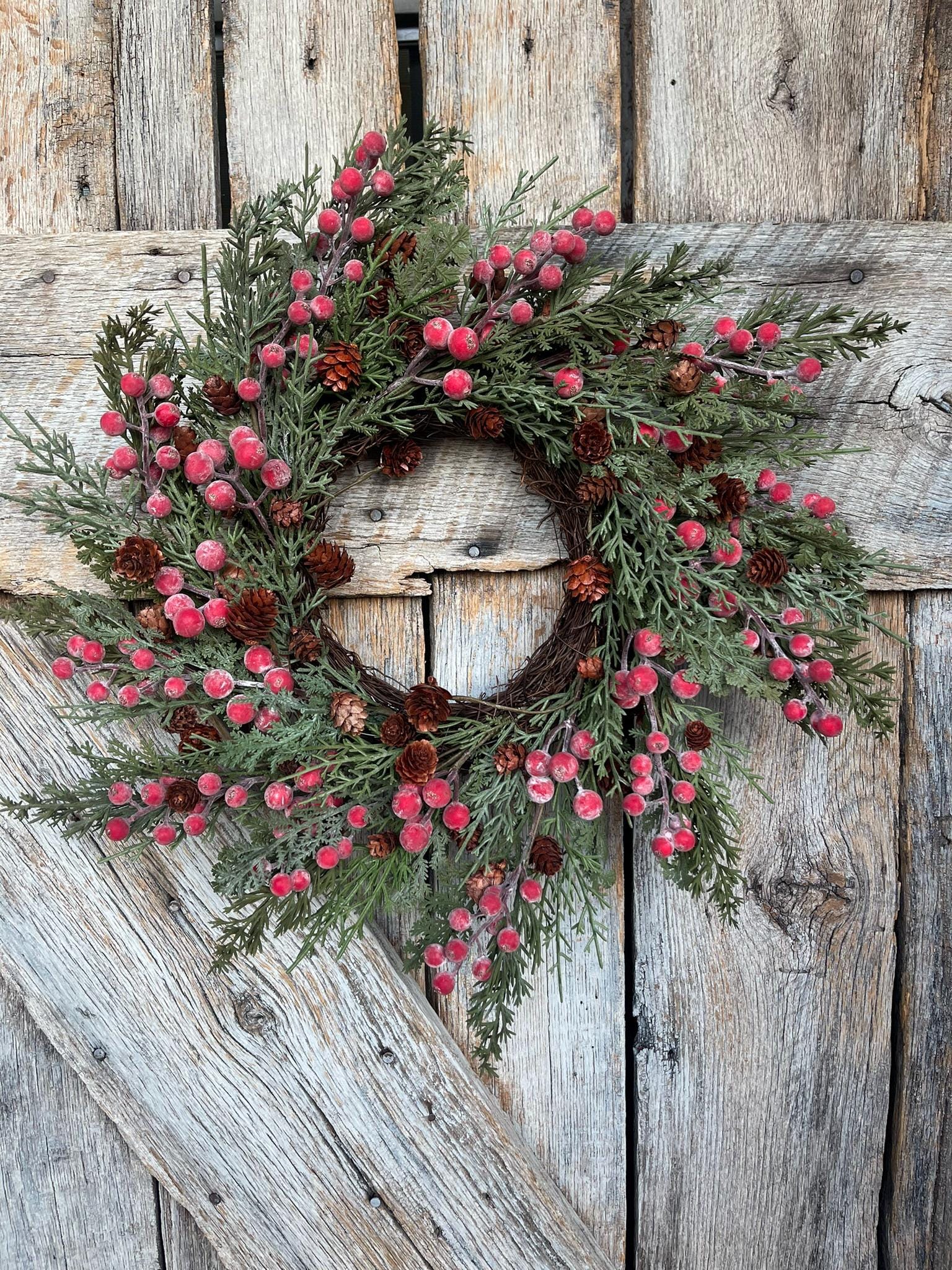 18" Christmas Berry Wreath, Red Sugar Berry Wreath, Pine Wreath, Christmas Front Door, Woodsey Christmas Wreath, Artificial Wreath