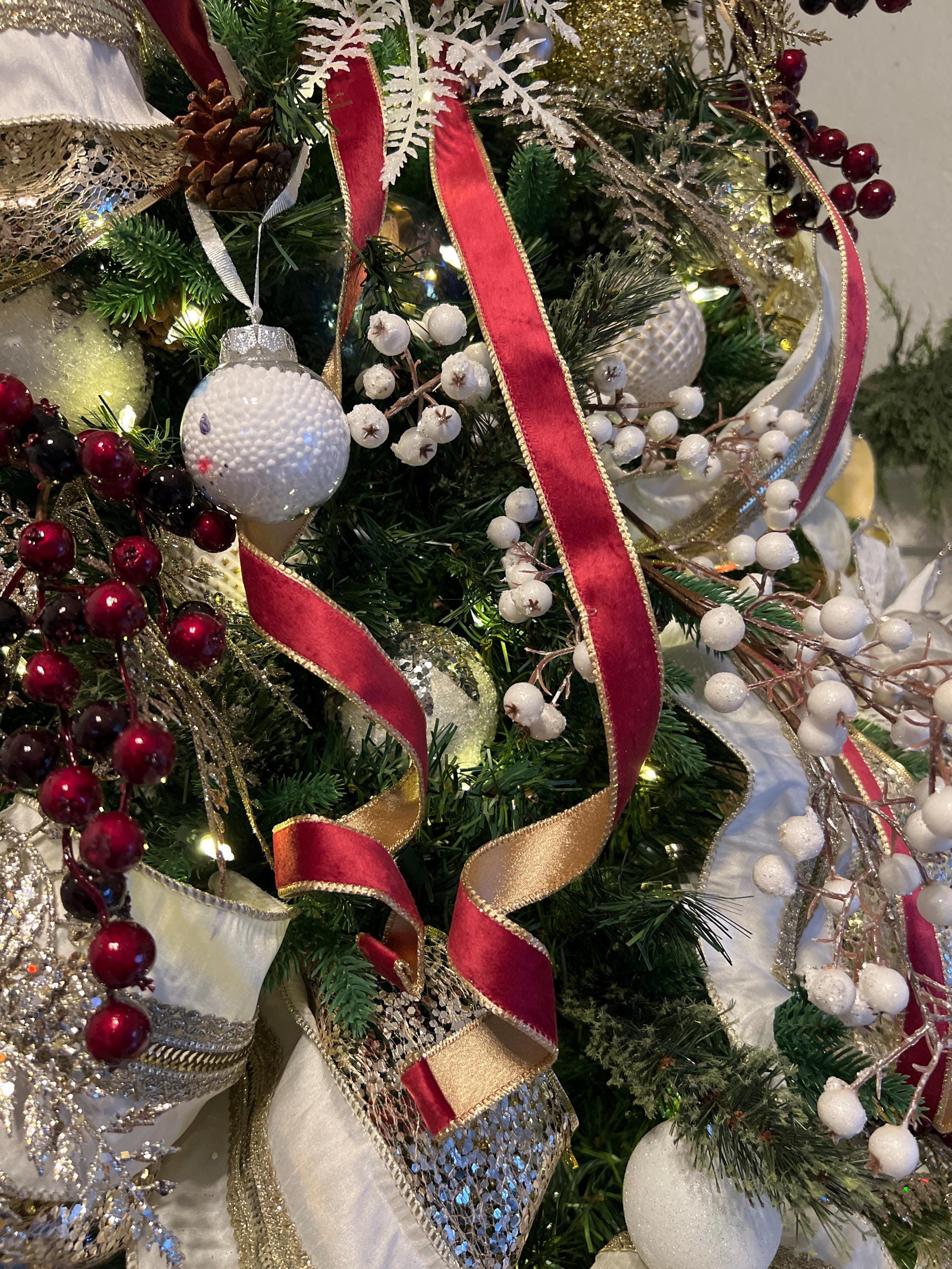 My new favorite color for Christmas 2025! Beautiful colors of burgundy and gold backing to decorate for my tree.
