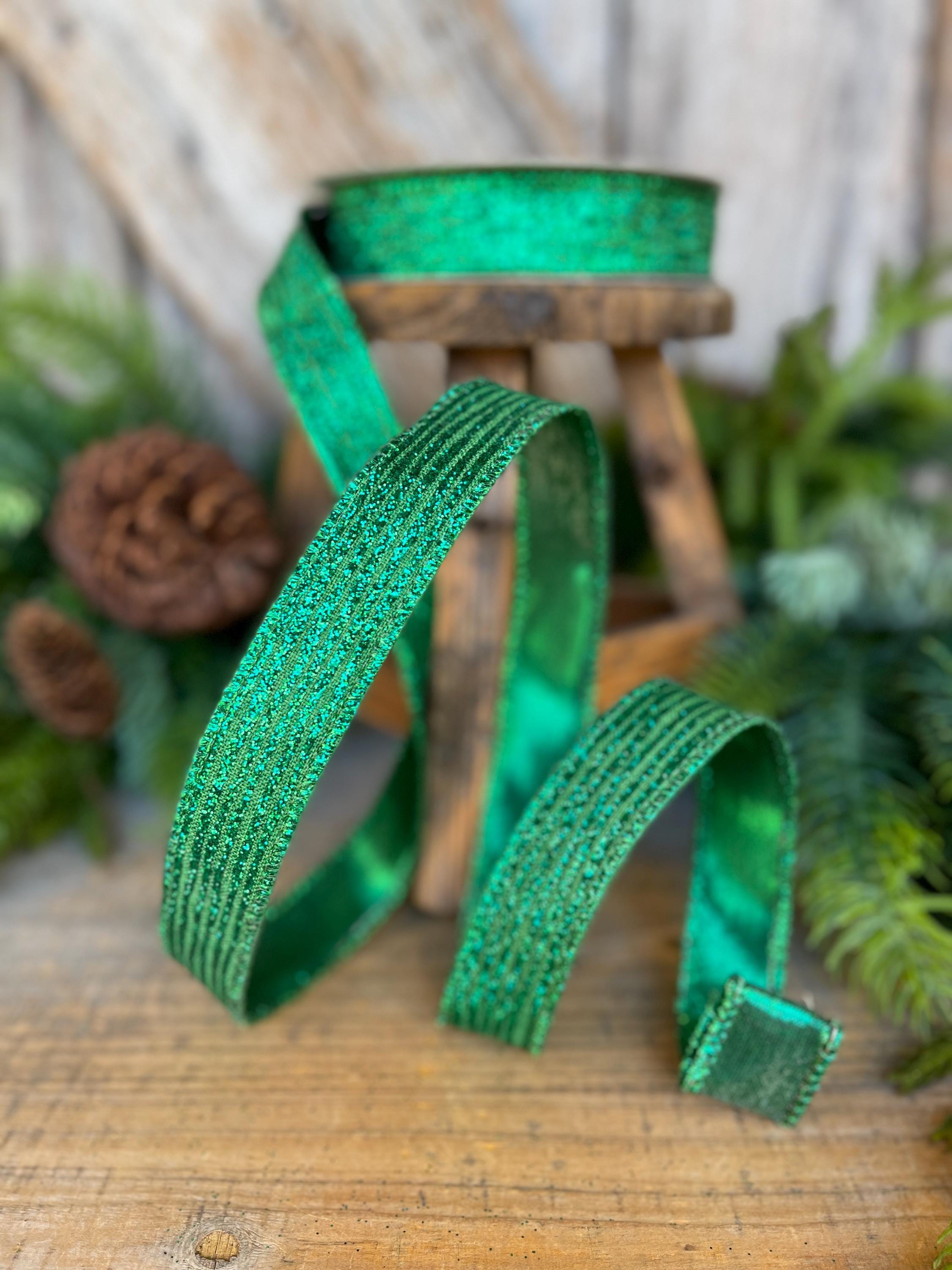 1" Emerald Green Random Stripes Ribbon, Farrisilk ribbon, wired Ribbon, Christmas RIbbon, Tree Ribbon, Ribbon, Emerald Green Ribbon, RS161-55