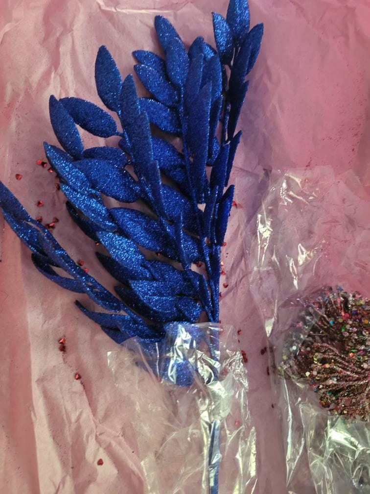 22" Blue Honey Locust Spray, Blue Christmas Spray, Blue Christmas Tree Spray, Blue Christmas Picks & Stems