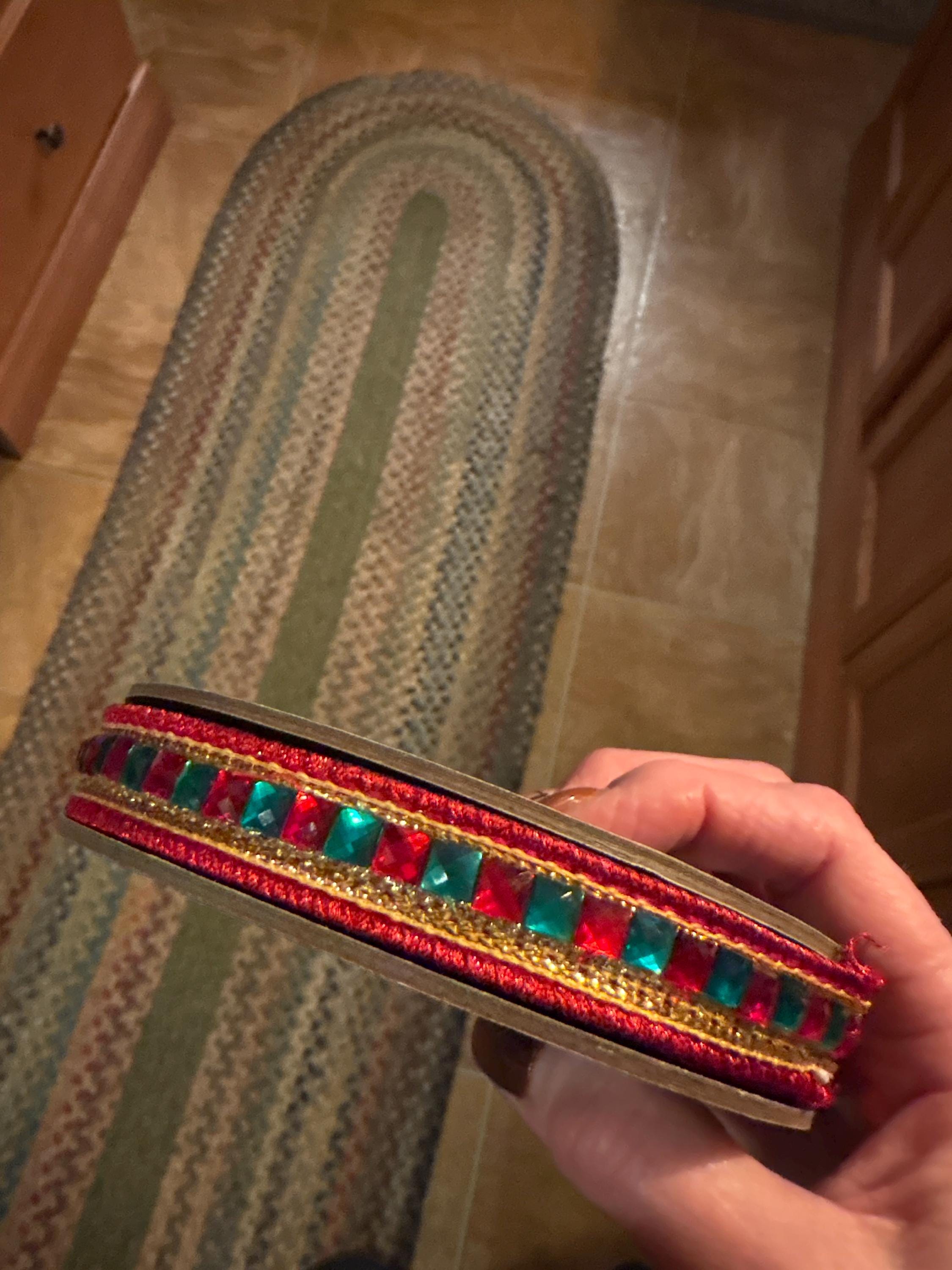 3/4" Red Green Gold Jeweled Ribbon, Farrisilk Ribbon, Jewelry Garland, Christmas Ribbon, Jeweled Ribbon, Christmas Ribbon, RK758-48