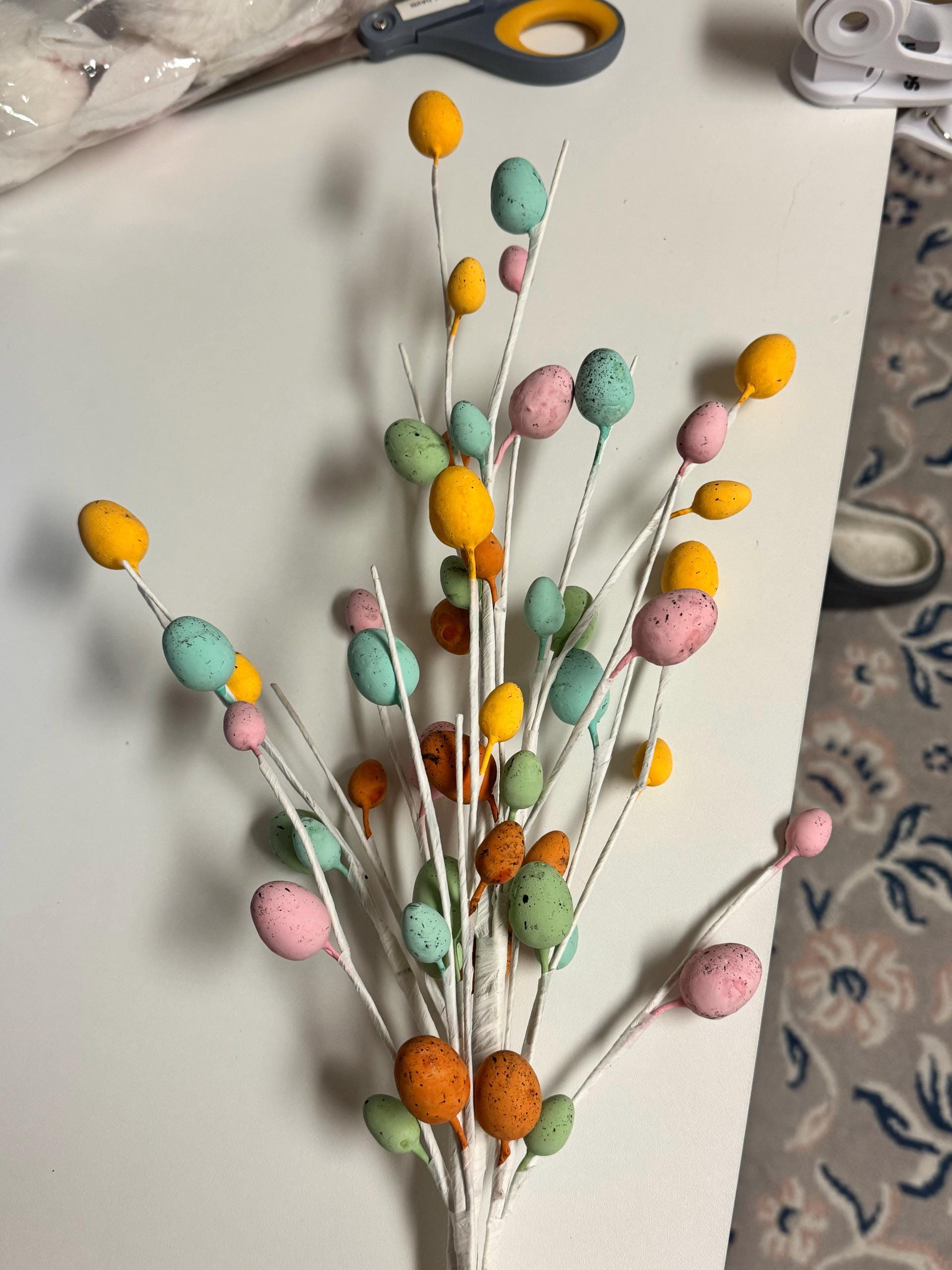 Whether you’re designing an Easter wreath, styling a tiered tray, or adding festive accents to your home, this egg pick brings soft color and playful elegance to any project. The wired stems allow for easy shaping and placement, making it a favorite for both DIY crafters and professional designers.