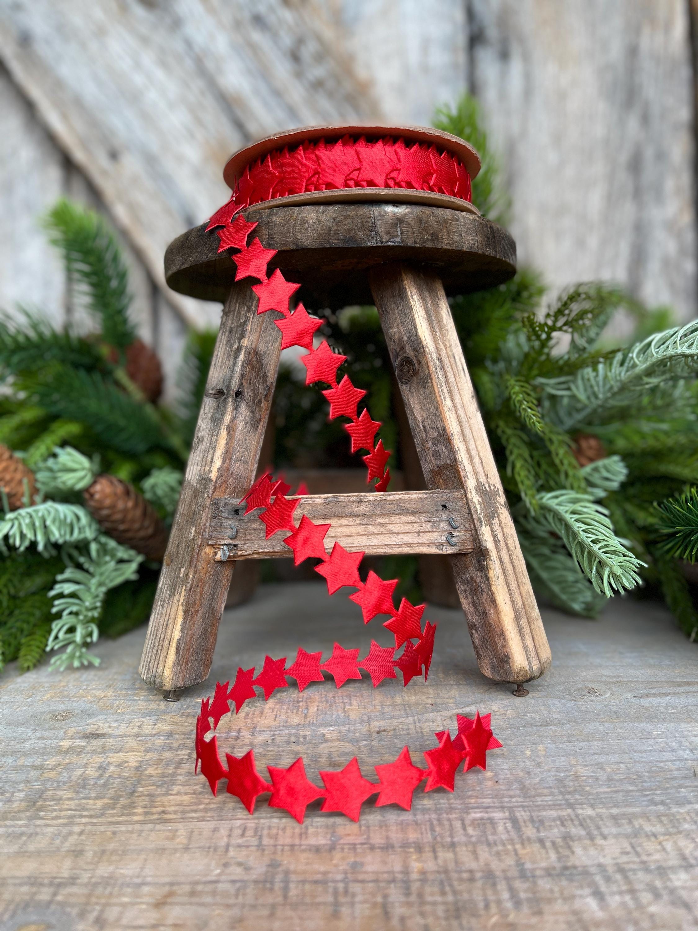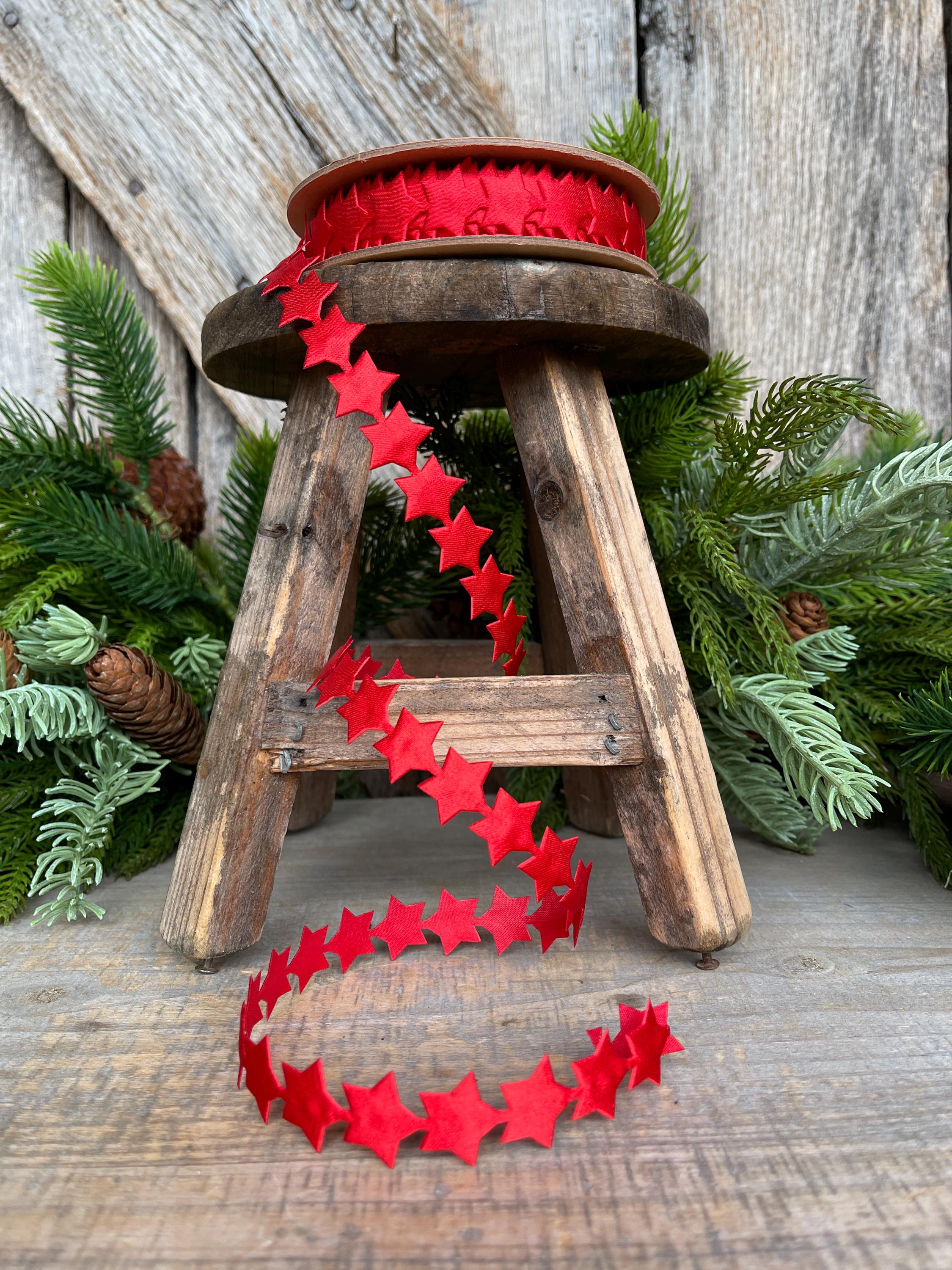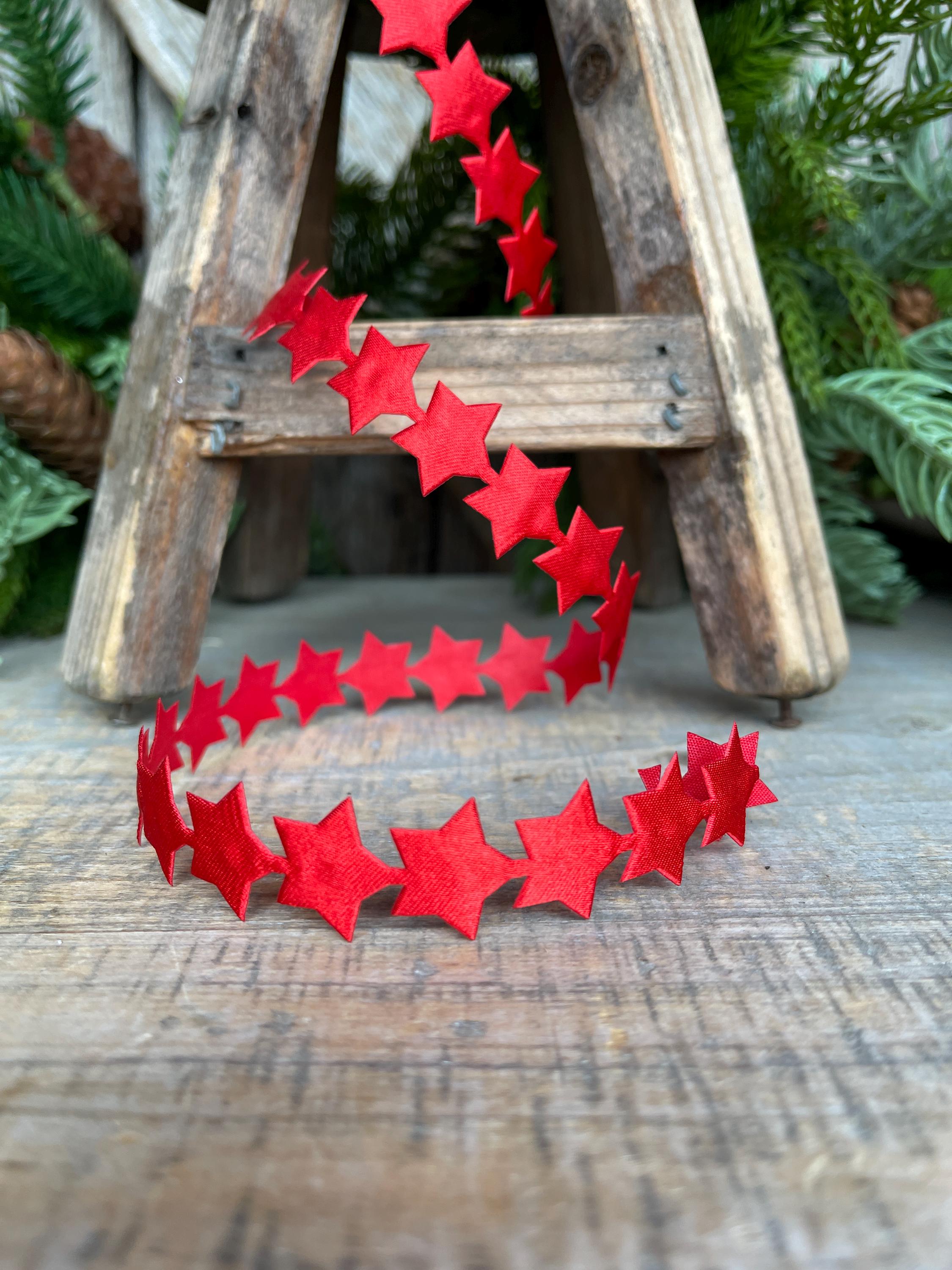 3/4" Red Star Ribbon Trim, Unwired Ribbon, Star Trim, Patriotic Trimming, 4th of July Decor, Ribbons and Trims, Red Star Trim