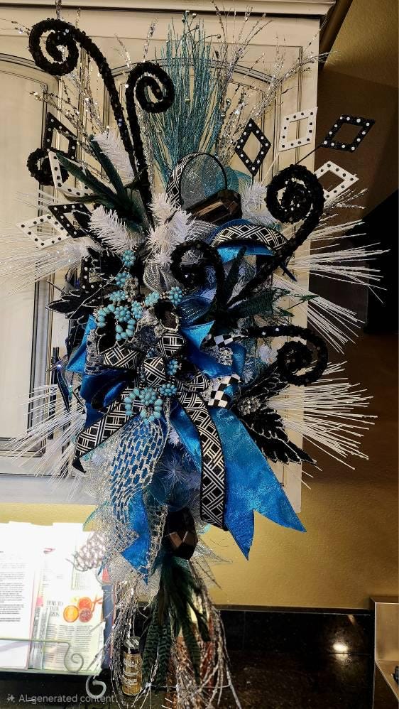 29" Black Sequin Curly Spray, Halloween Spray, Floral Spray, Curly Spray, Christmas Spray, 40350-BK