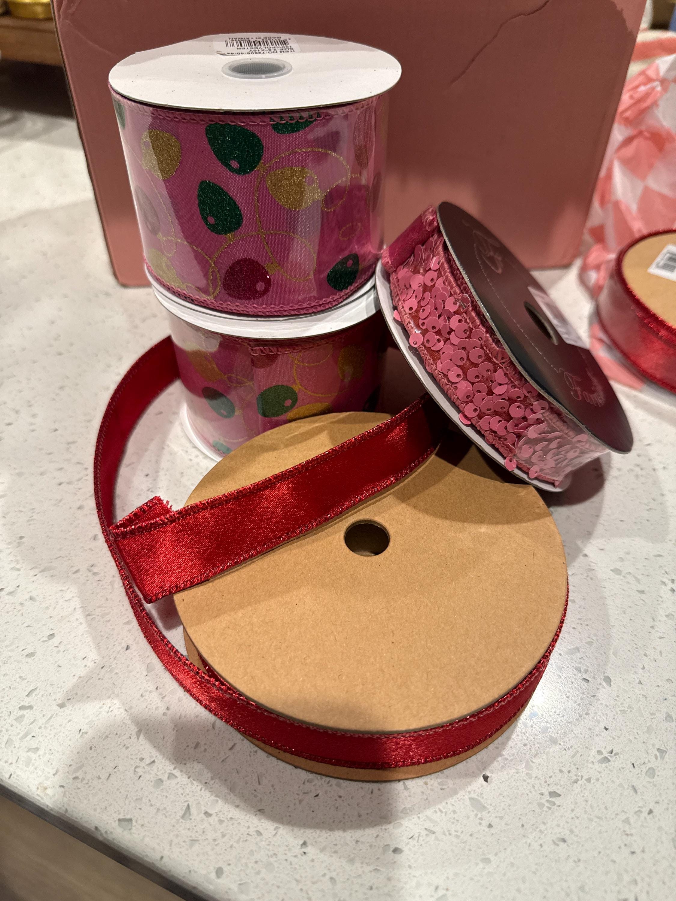2.5" Pink Christmas Ribbon, Christmas Lights Ribbon, Bubblegum Pink Ribbon, vintage christmas lights, Christmas tree ribbon