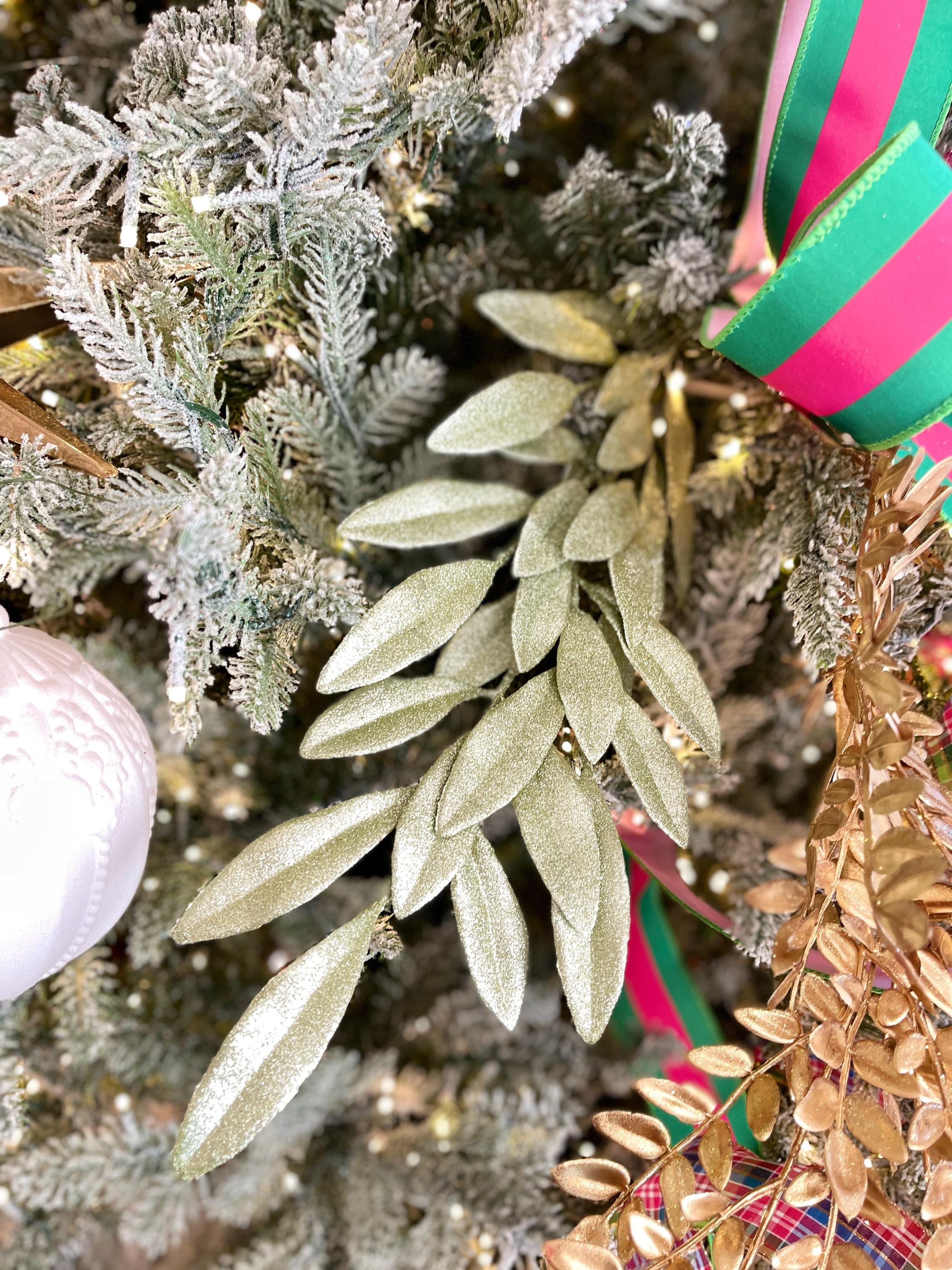 27" Mint Green Laurel Leaf Spray, Mint Sparkle Leaf Spray, Light Green Christmas Picks Stems, Christmas Tree Picks, 86483MINT
