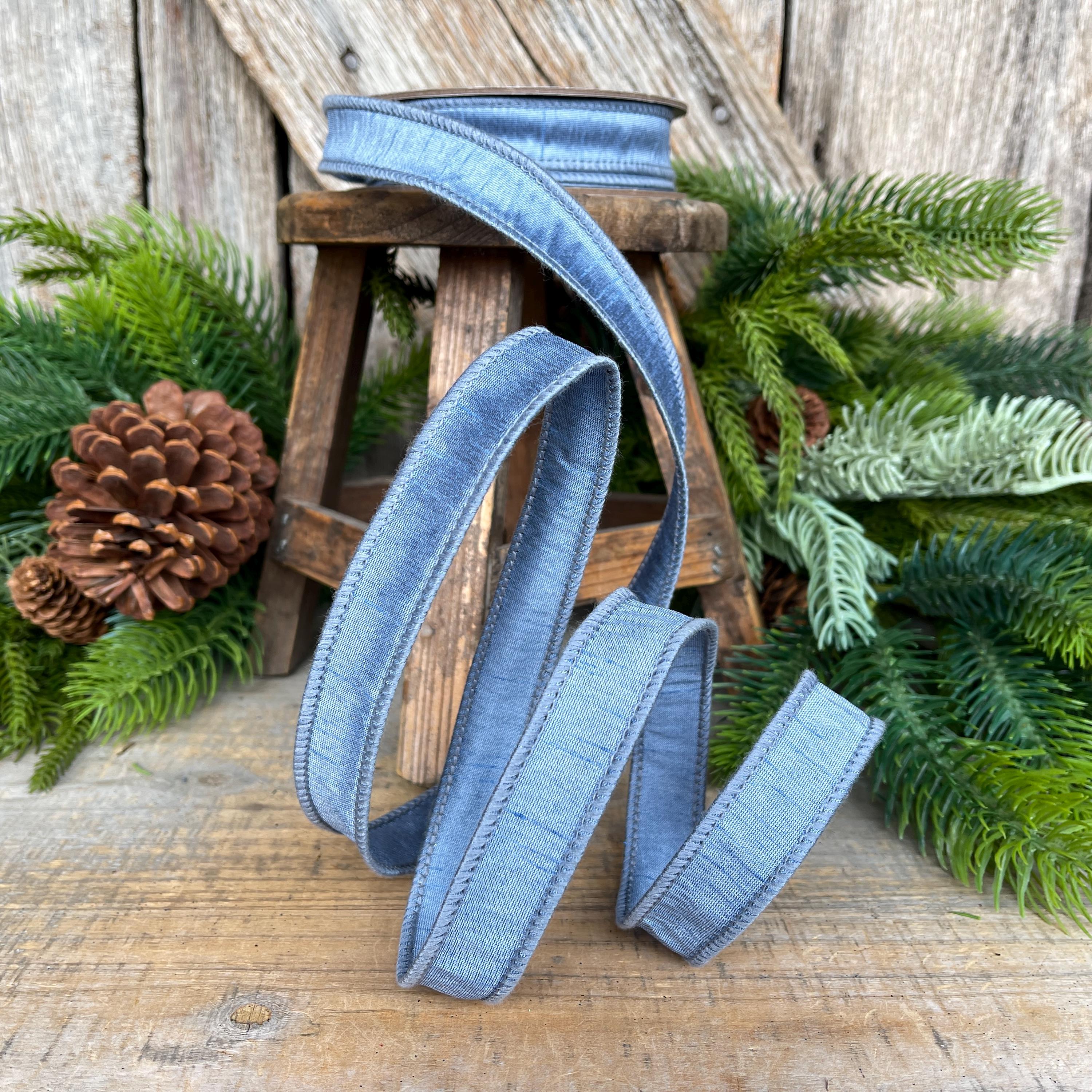 1" French Blue Dupioni Ribbon, Wired Ribbon, Blue Ribbon, Christmas Ribbon, Ribbon for Bows, Blue Wired Ribbon, Steel Blue