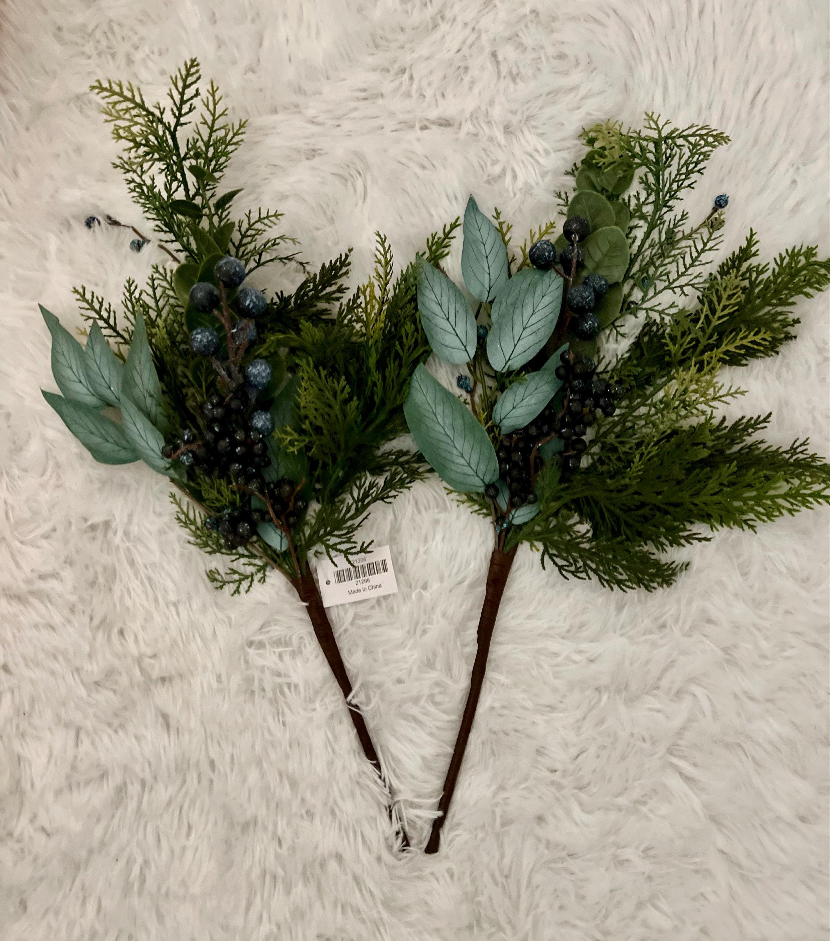 20" Blueberry Greenery Bush, Winter Blueberry Picks & Stems, Artifical Blueberry Floral Stem