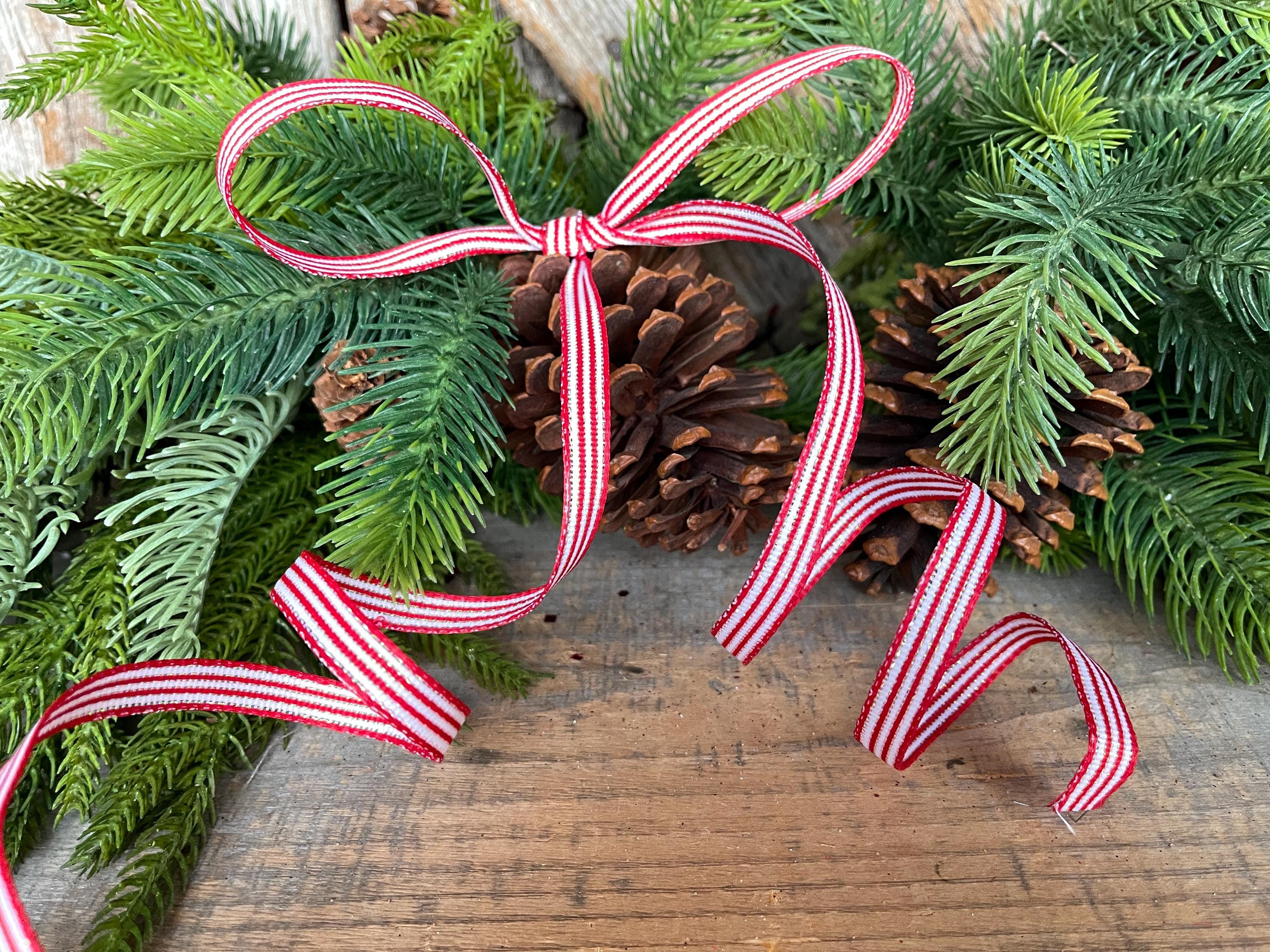 3/8" Red White Stripe Ribbon, Wired Ribbon, Gift Wrap Ribbon, Ribbon for Bows