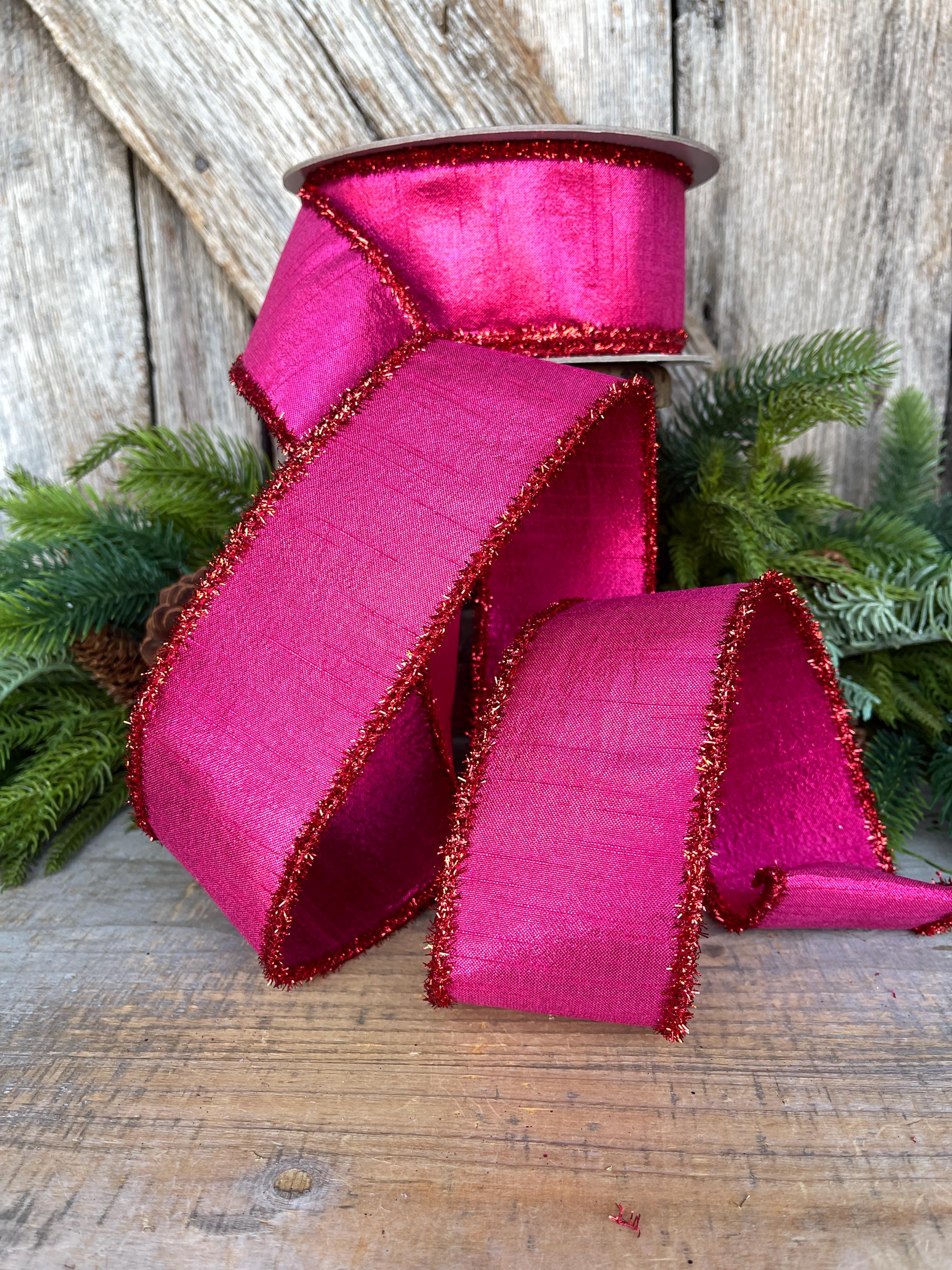 2.5" Hot Pink Ribbon, Hot Pink & Red Ribbon, Christmas Tree Ribbon, Farrisilk Ribbon, RK791-33