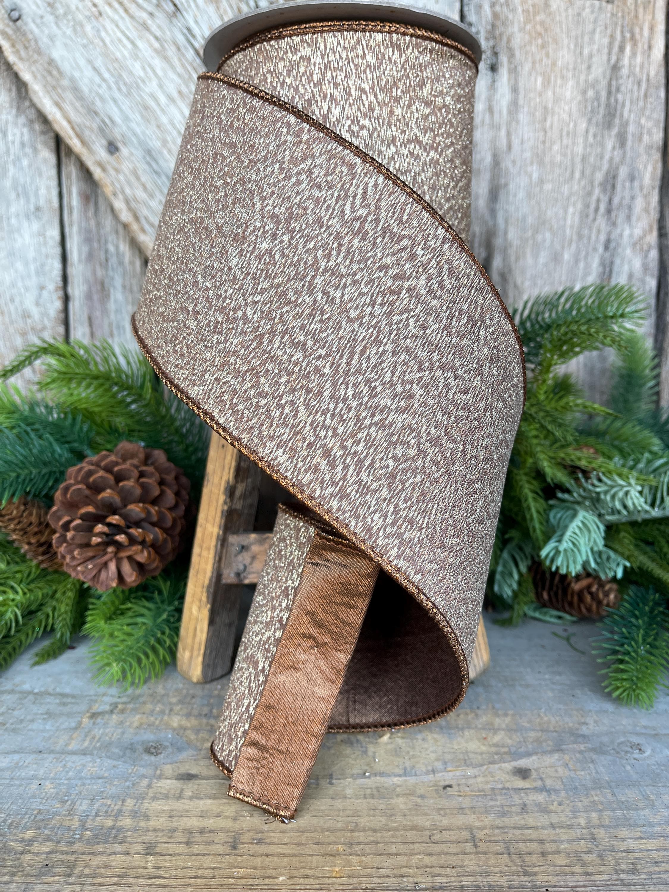 4” Brown Ribbon, Cappuccino Colored ribbon, Stardust ribbon, Christmas Ribbon, Woodsy Ribbon, RK802-29