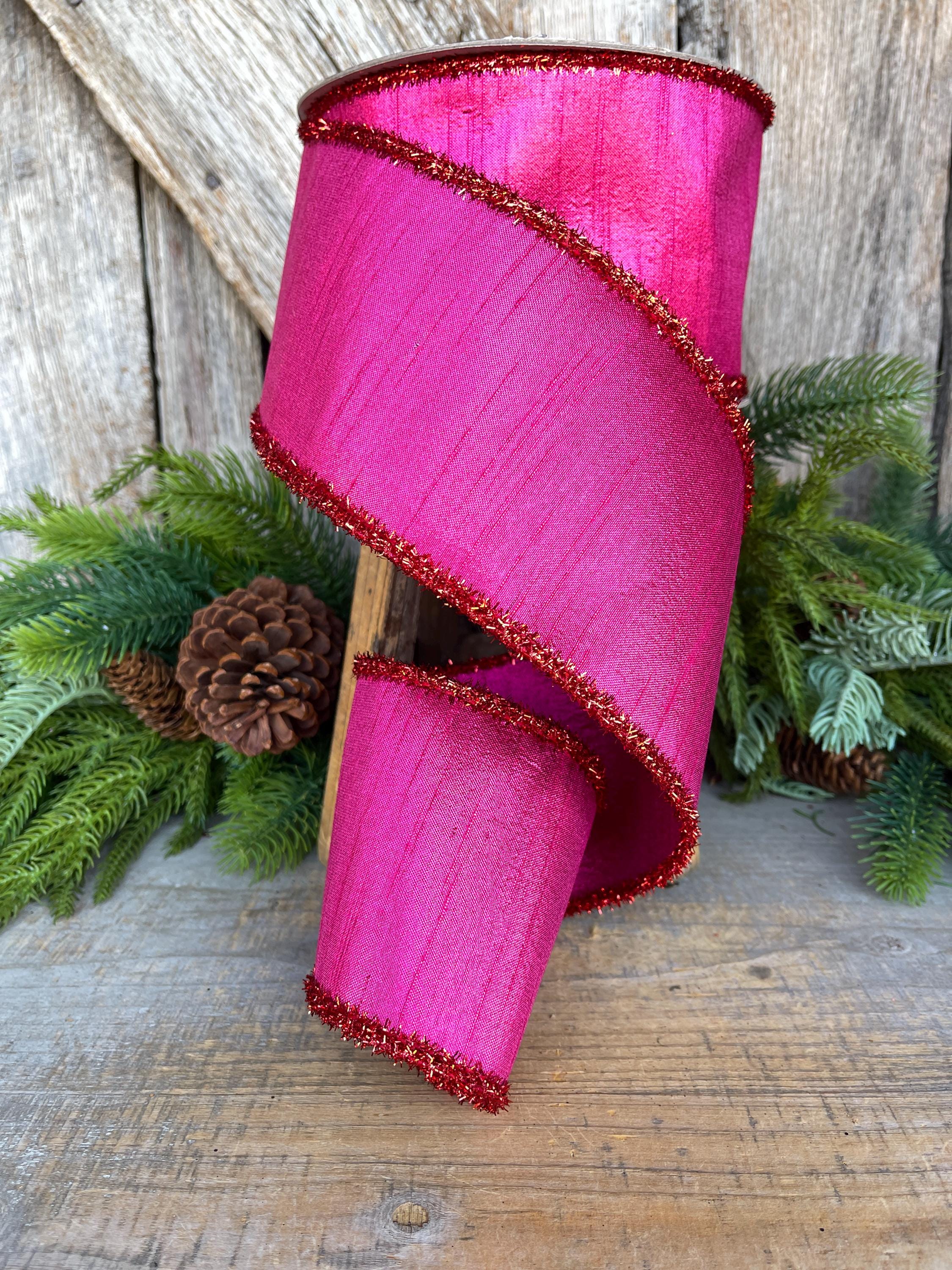 4" Hot Pink Ribbon, Hot Pink & Red Ribbon, Christmas Tree Ribbon, Farrisilk Ribbon, RK792-33