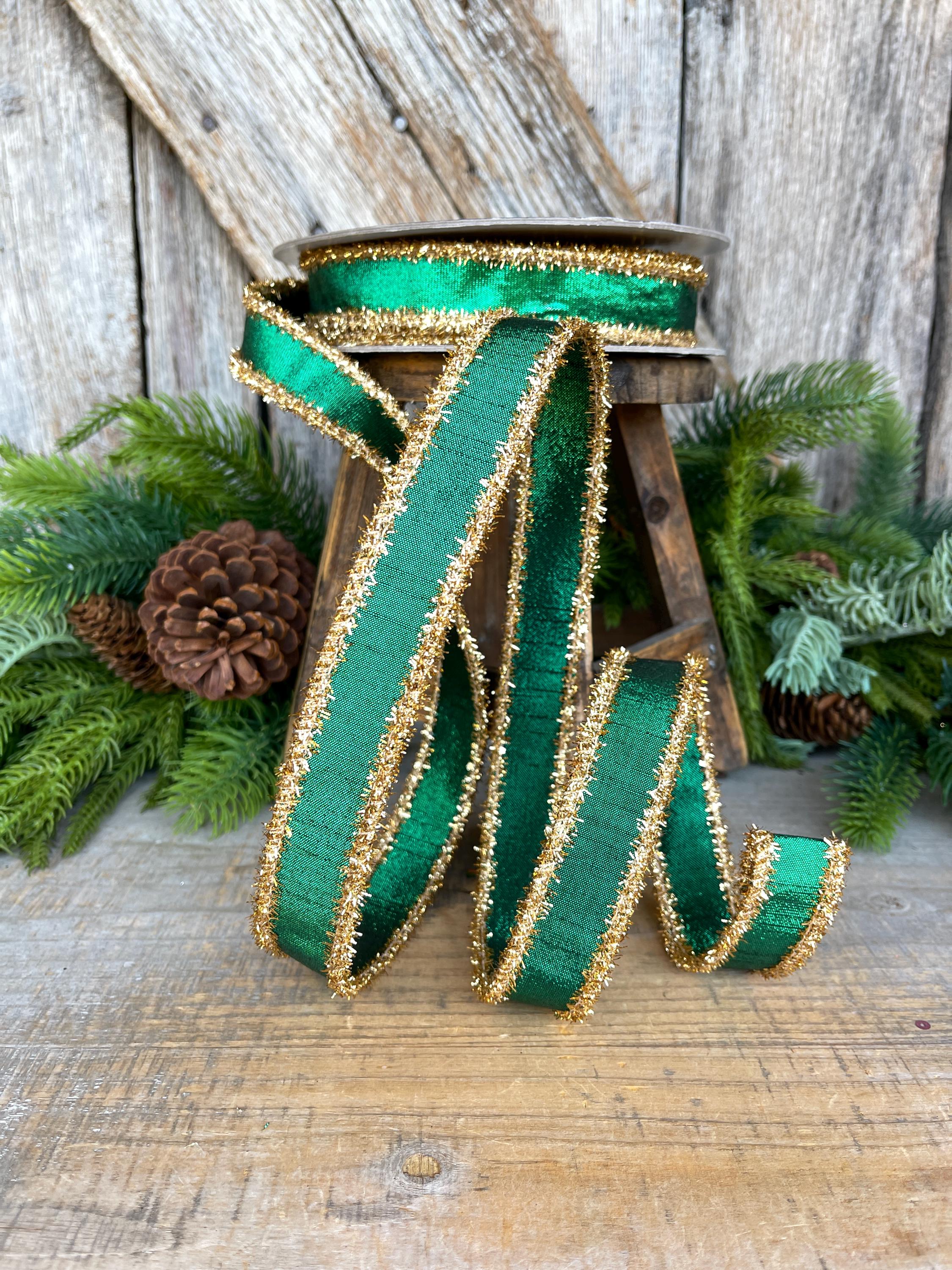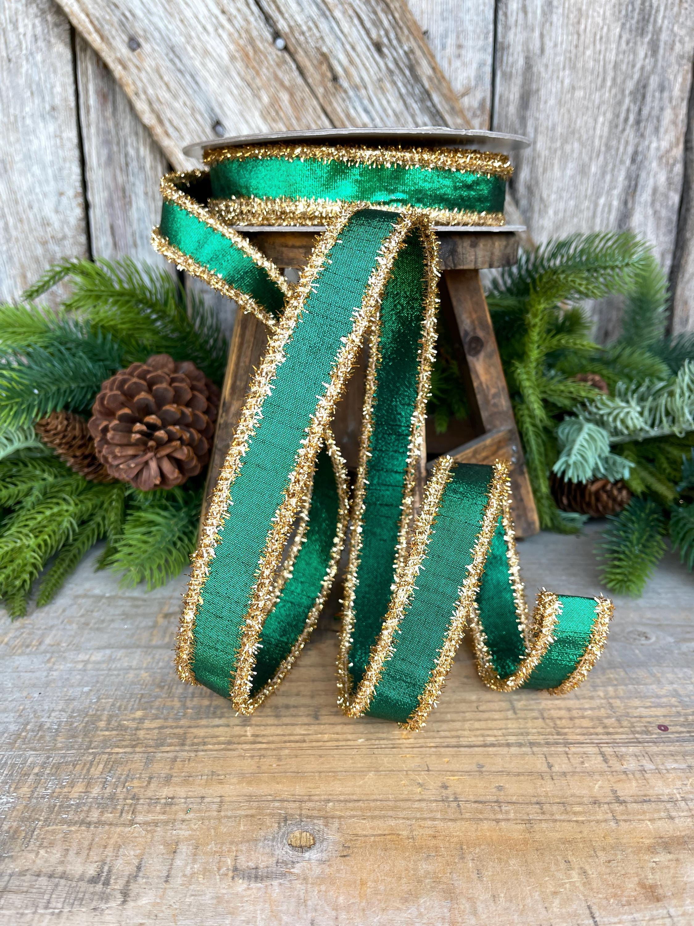 1" Emerald Green & Gold Tinsel Ribbon, Christmas Ribbon, Farrisilk ribbon, 1" x 10 yards