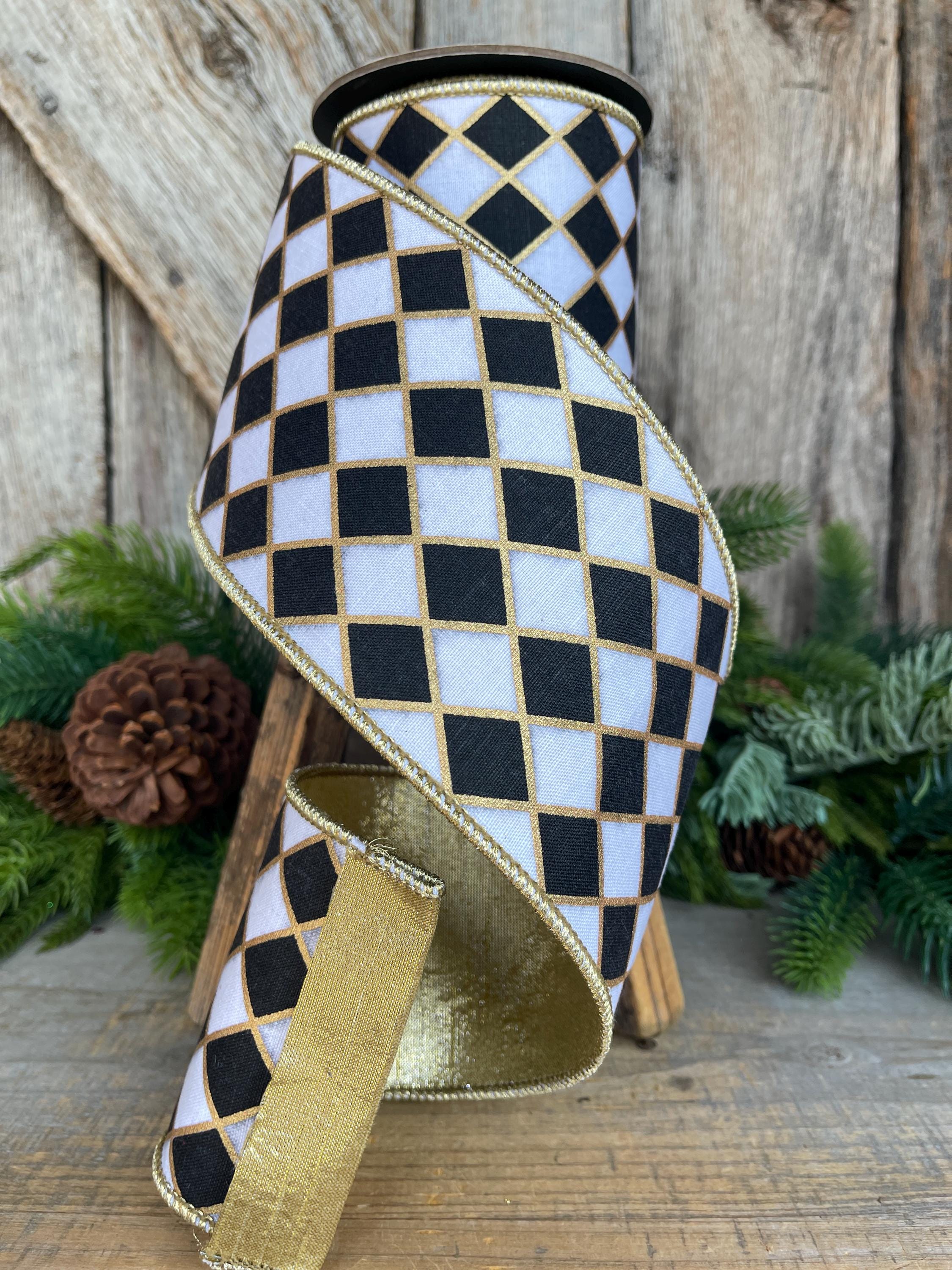 4" Black and White Retro Harlequin Ribbon, Farrisilk Ribbon
