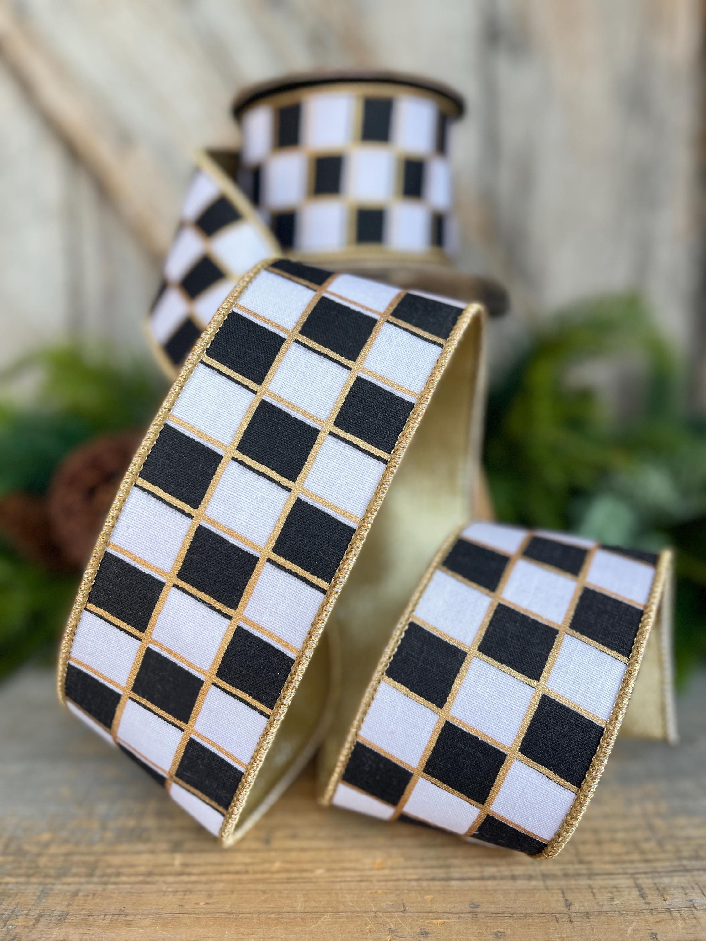2.5" Black and White Check Ribbon, Christmas Ribbon