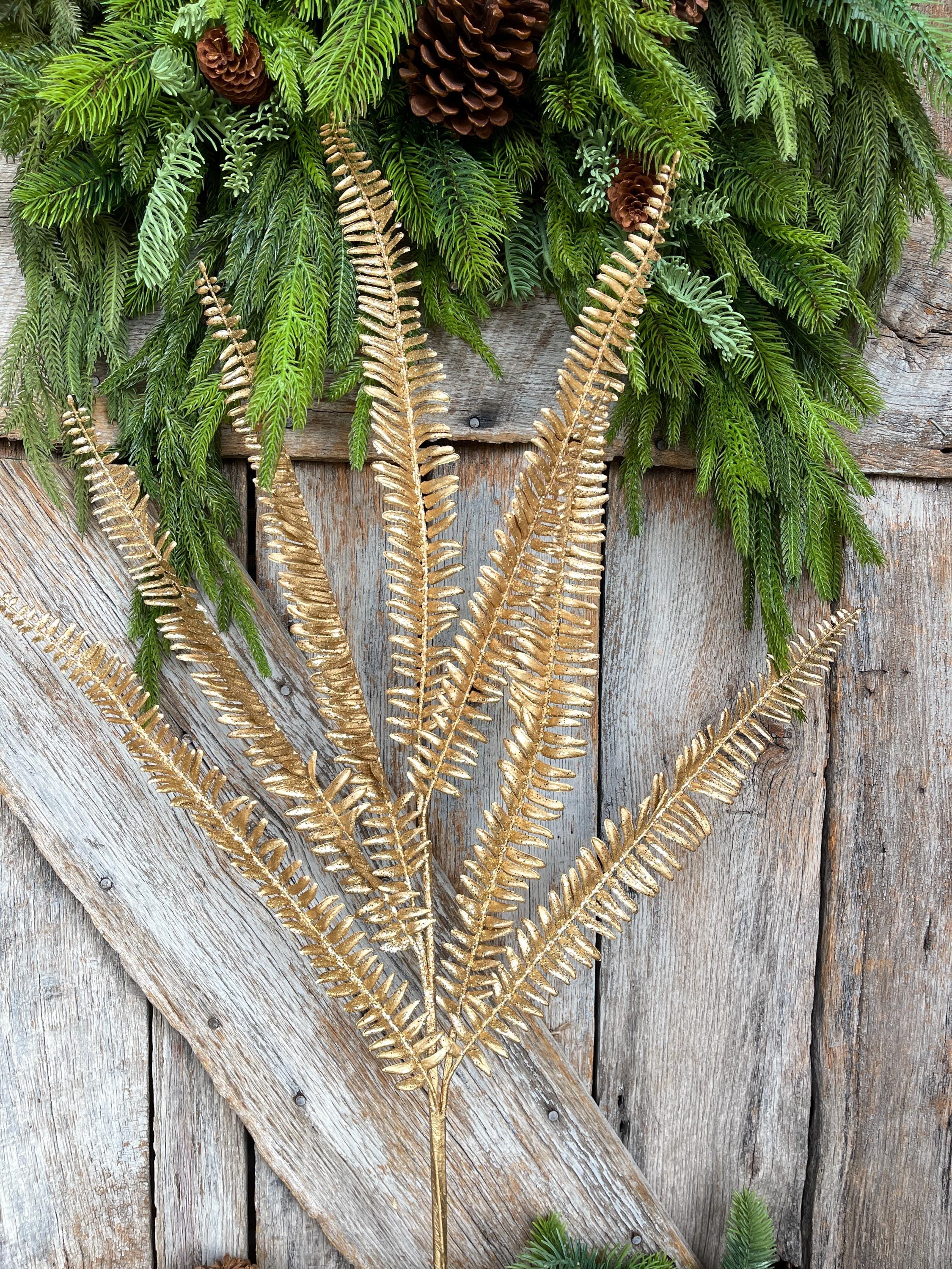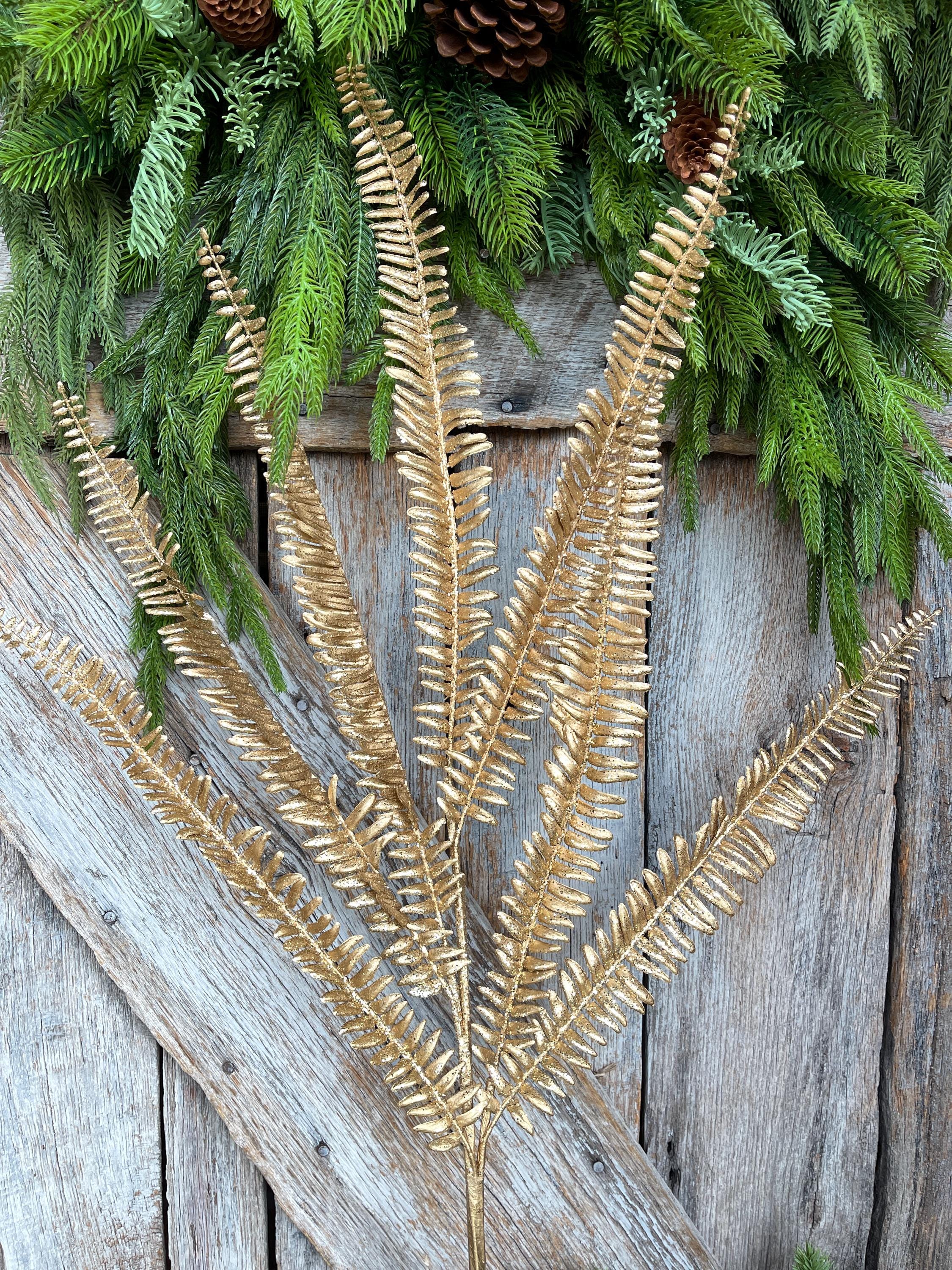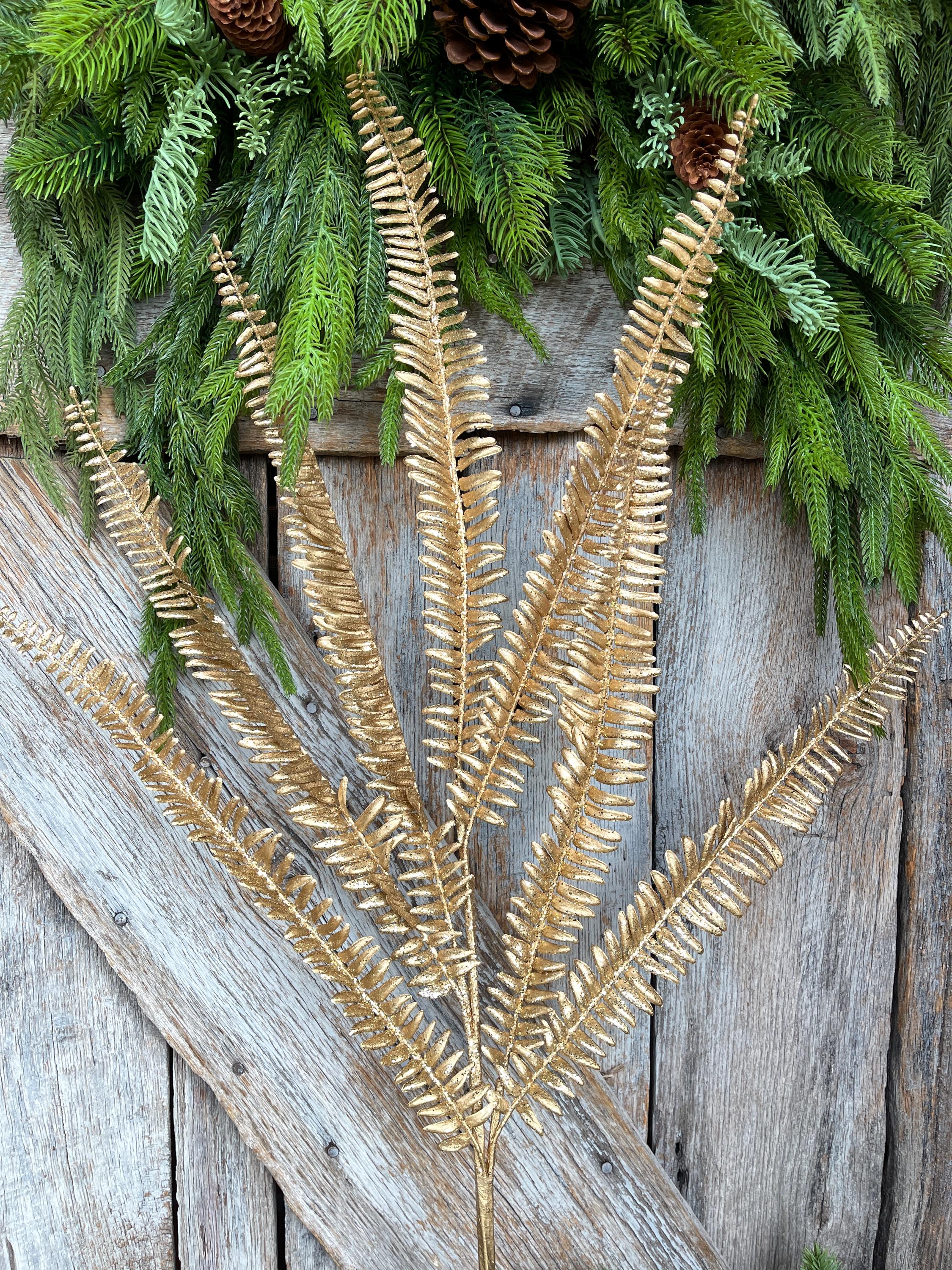 GoldFern Spray, Gold Christmas Tree Spray - 40" Gold Leaf Floral