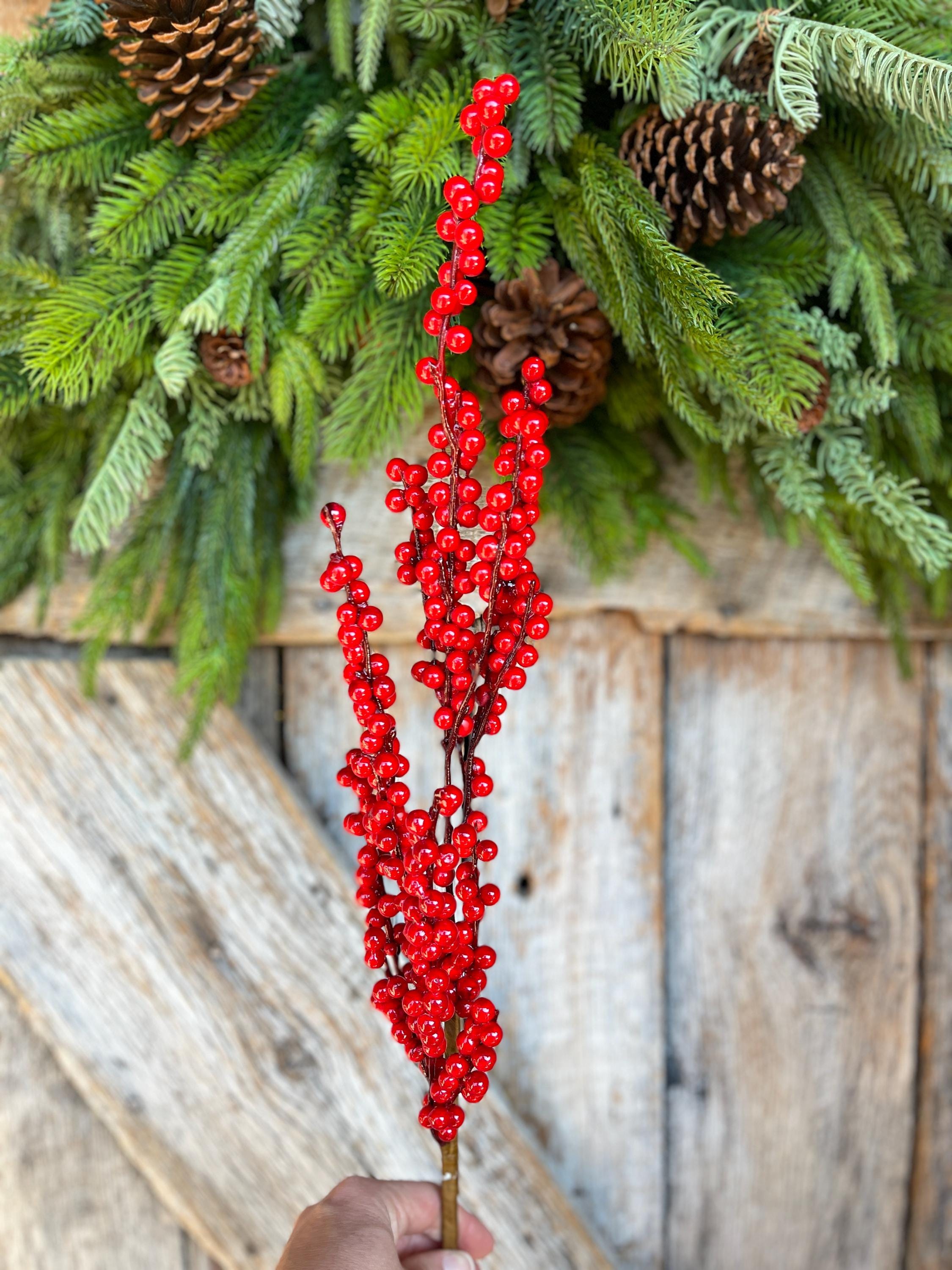 24" Bright Red Berry Spray, Christmas Berries Stem, Christmas Tree Berries