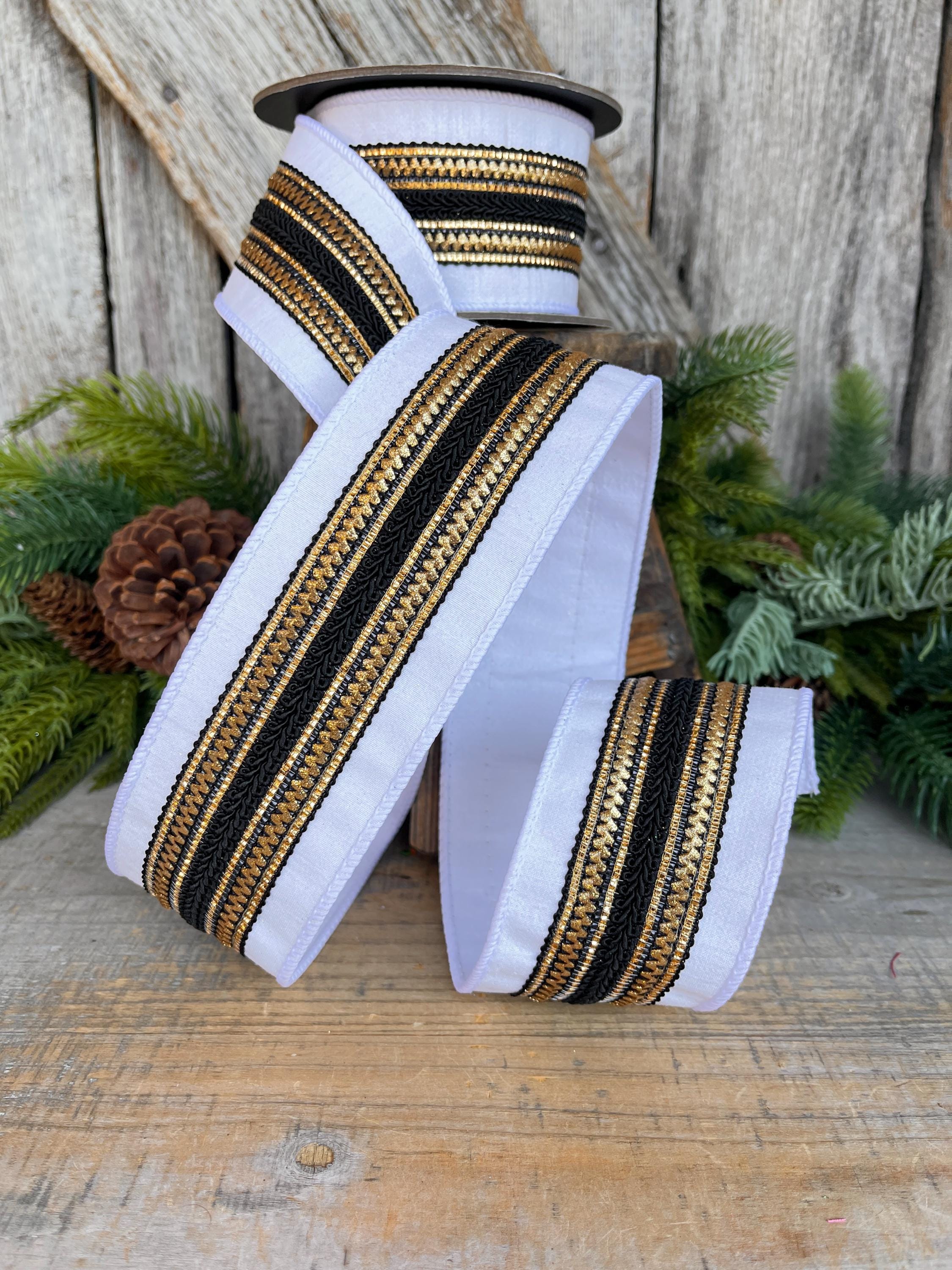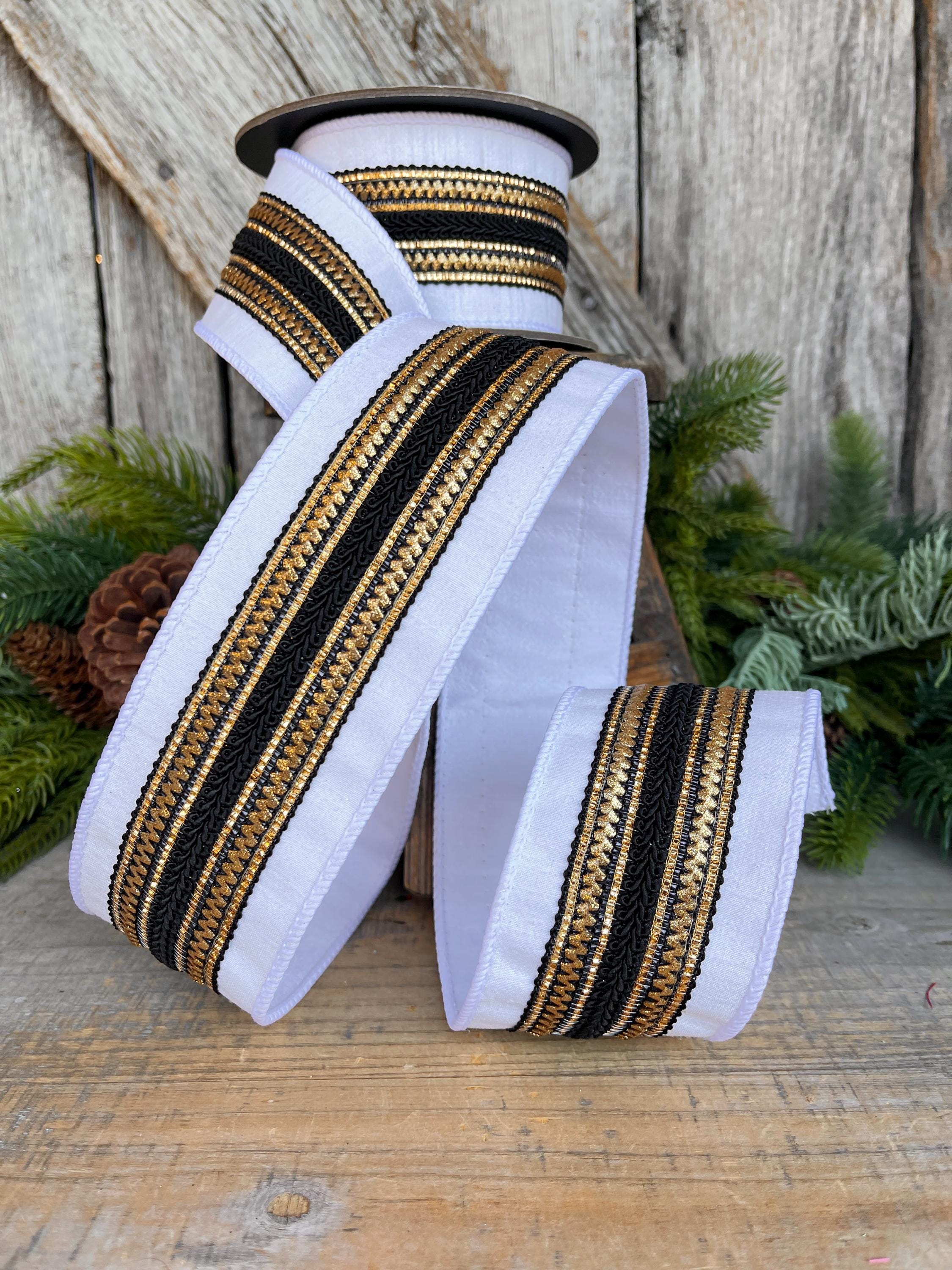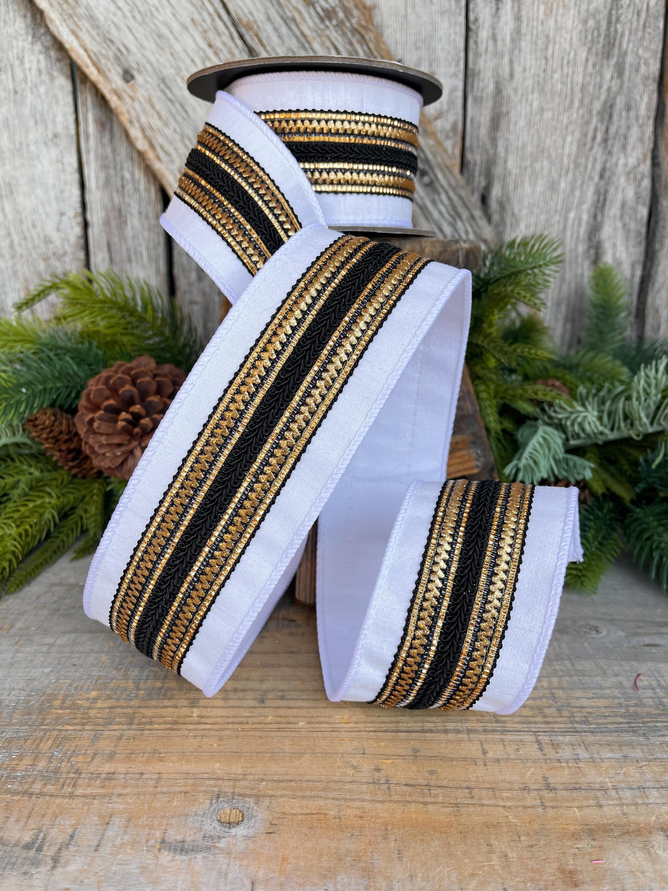 2.5" White Black Gold Ribbon, Christmas Ribbon, Designer Ribbon
