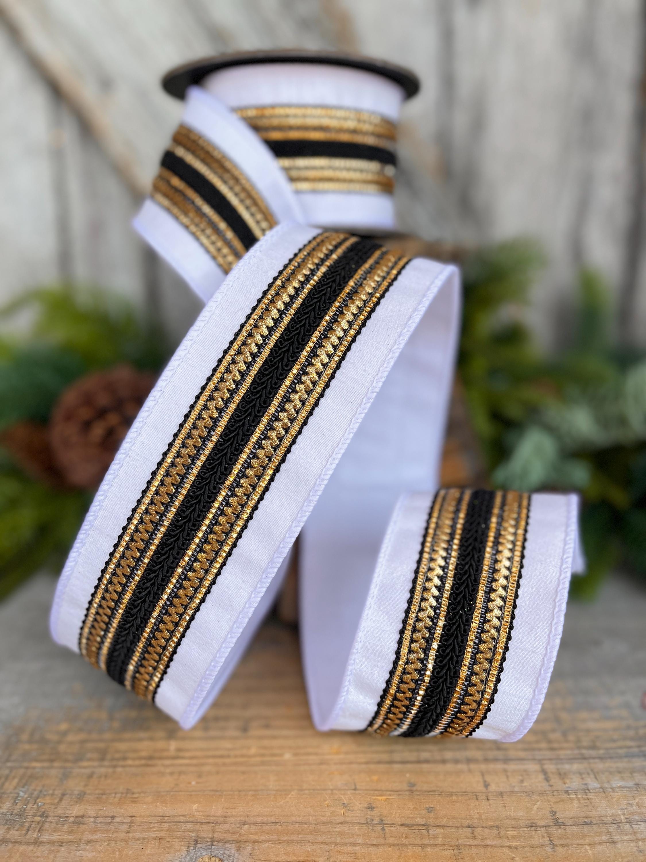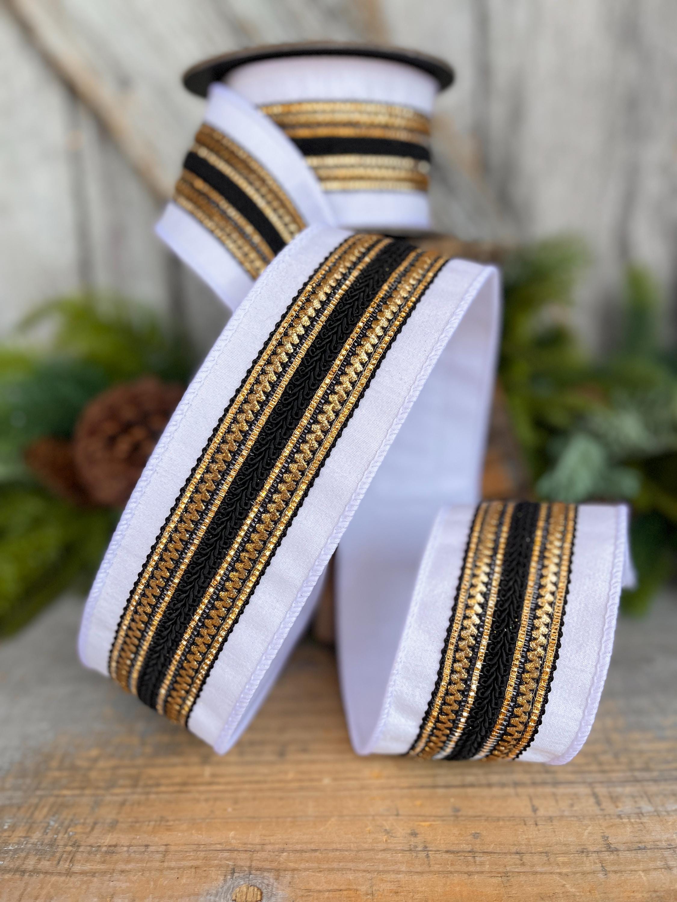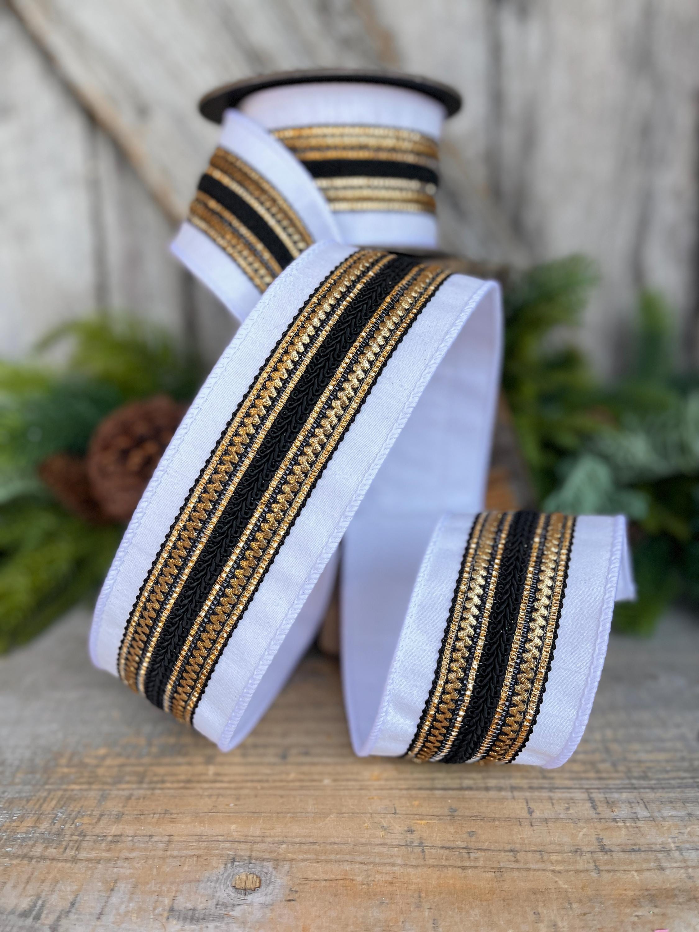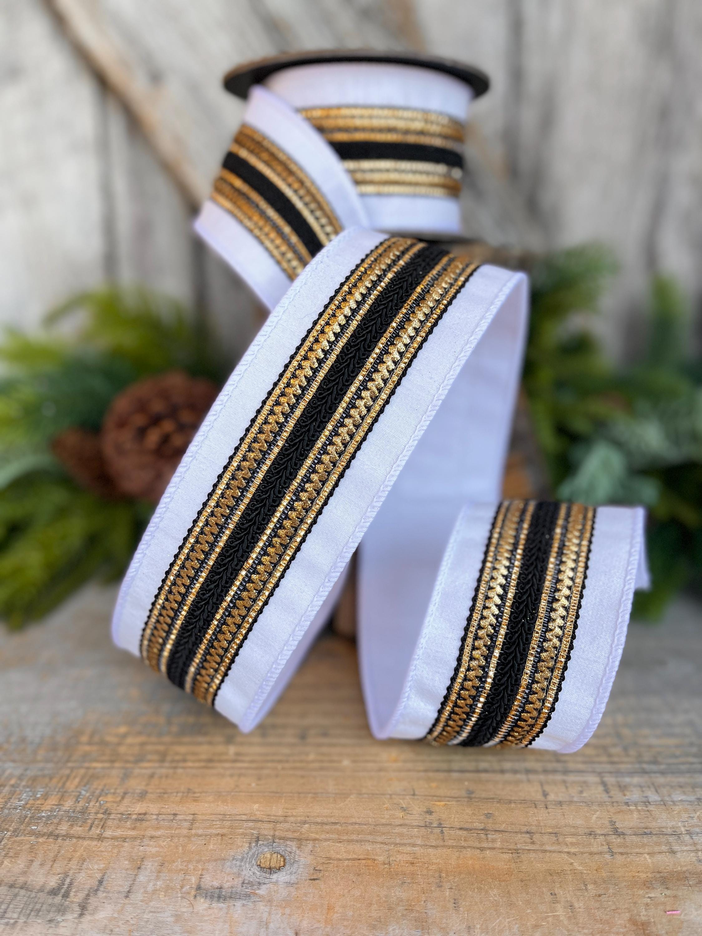 2.5" White Black Gold Ribbon, Christmas Ribbon, Designer Ribbon