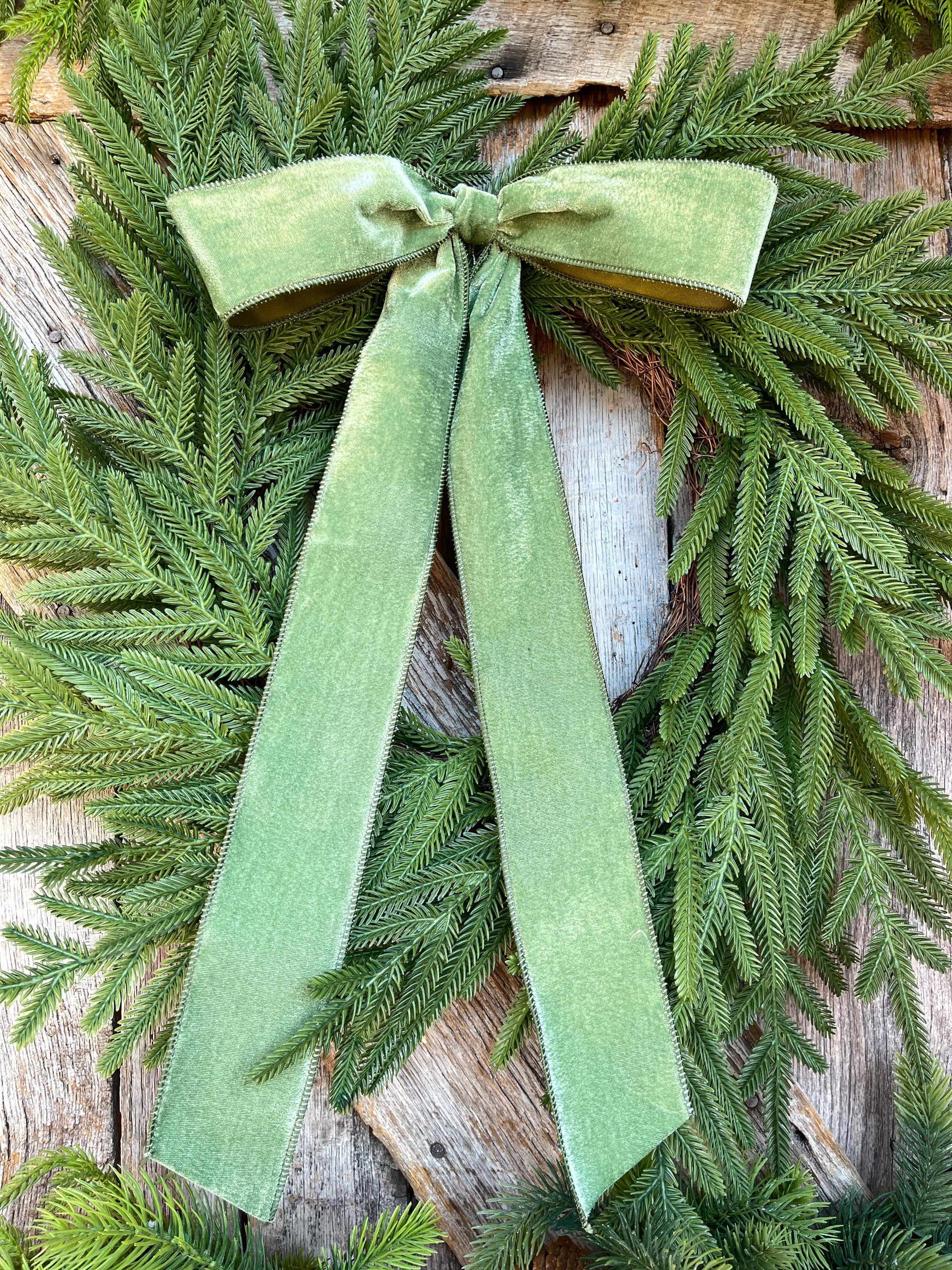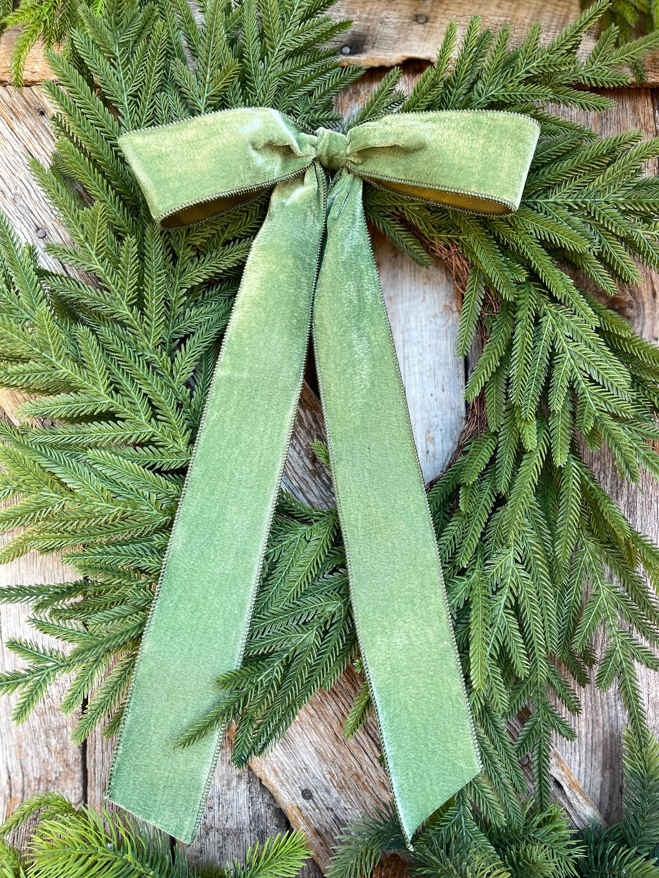 18" Olive Green Velvet Bow, Wreath Bow, Christmas Bow, (bow Only)